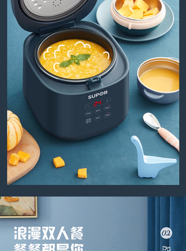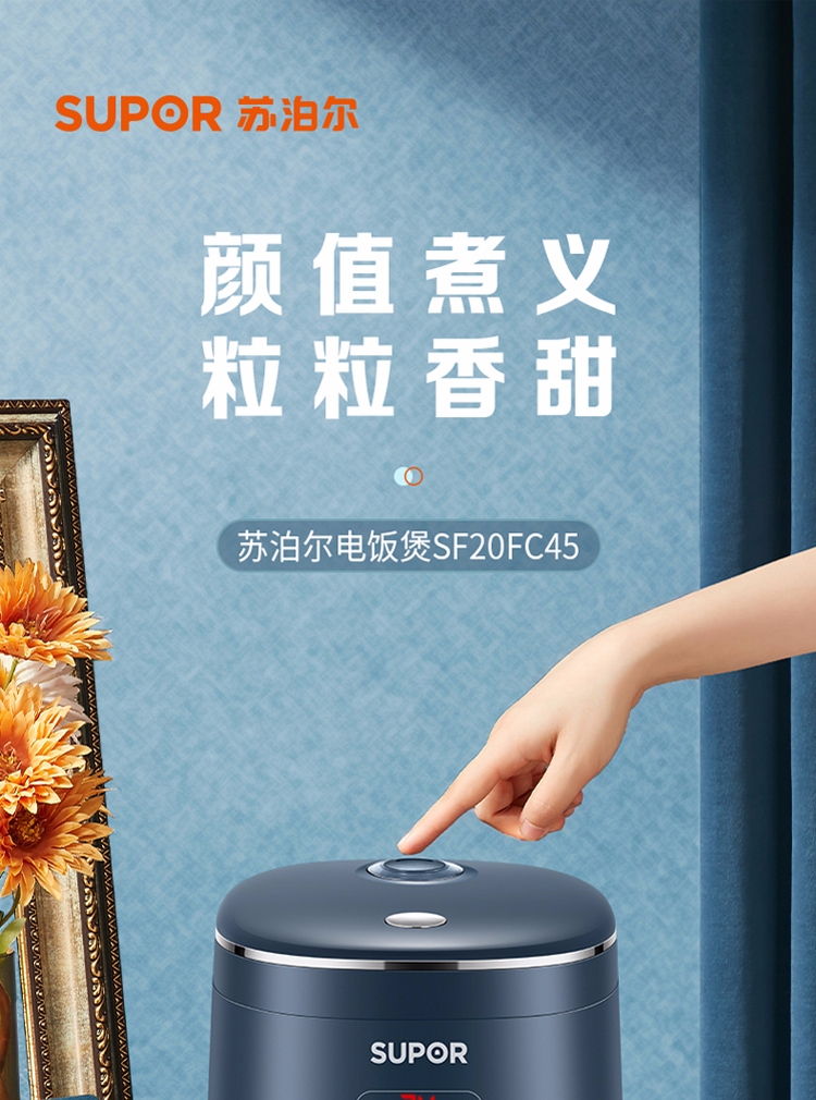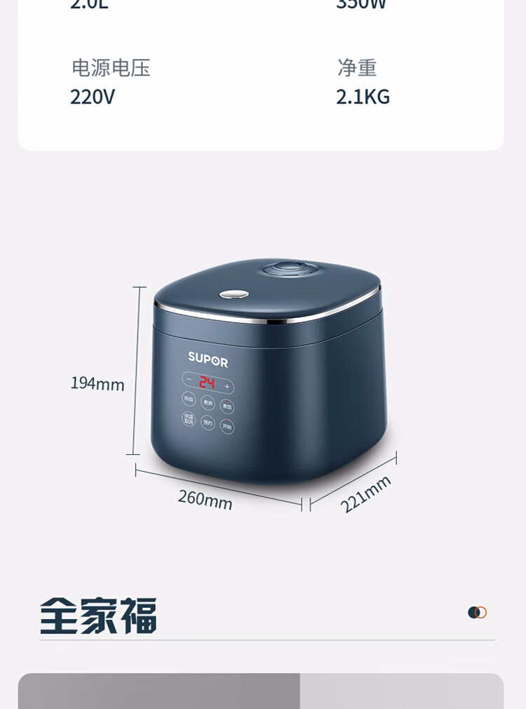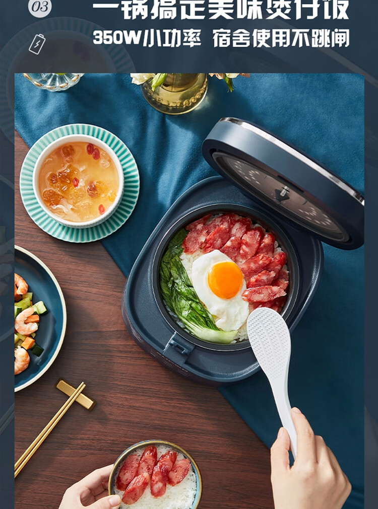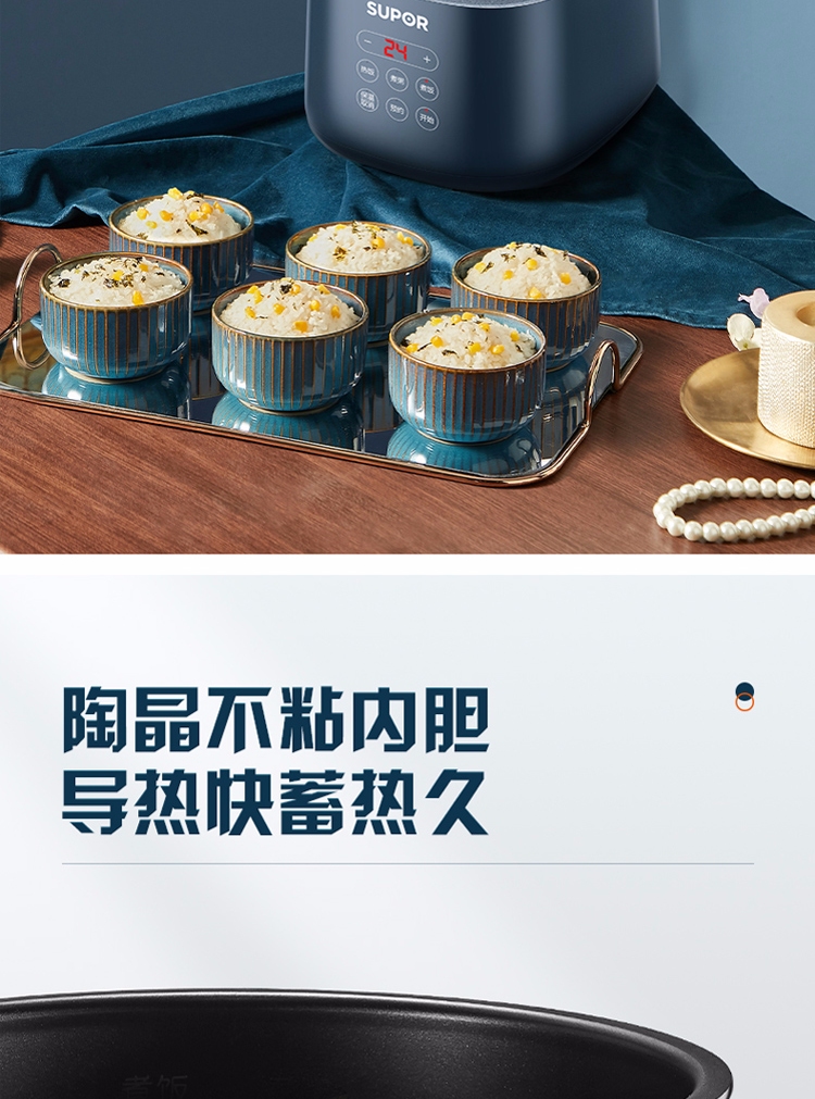 苏泊尔(SUPOR)2L智能迷你型玲珑小电饭锅智能预约小型便携1-3人电饭煲 SF20FC45深海蓝