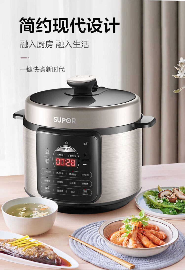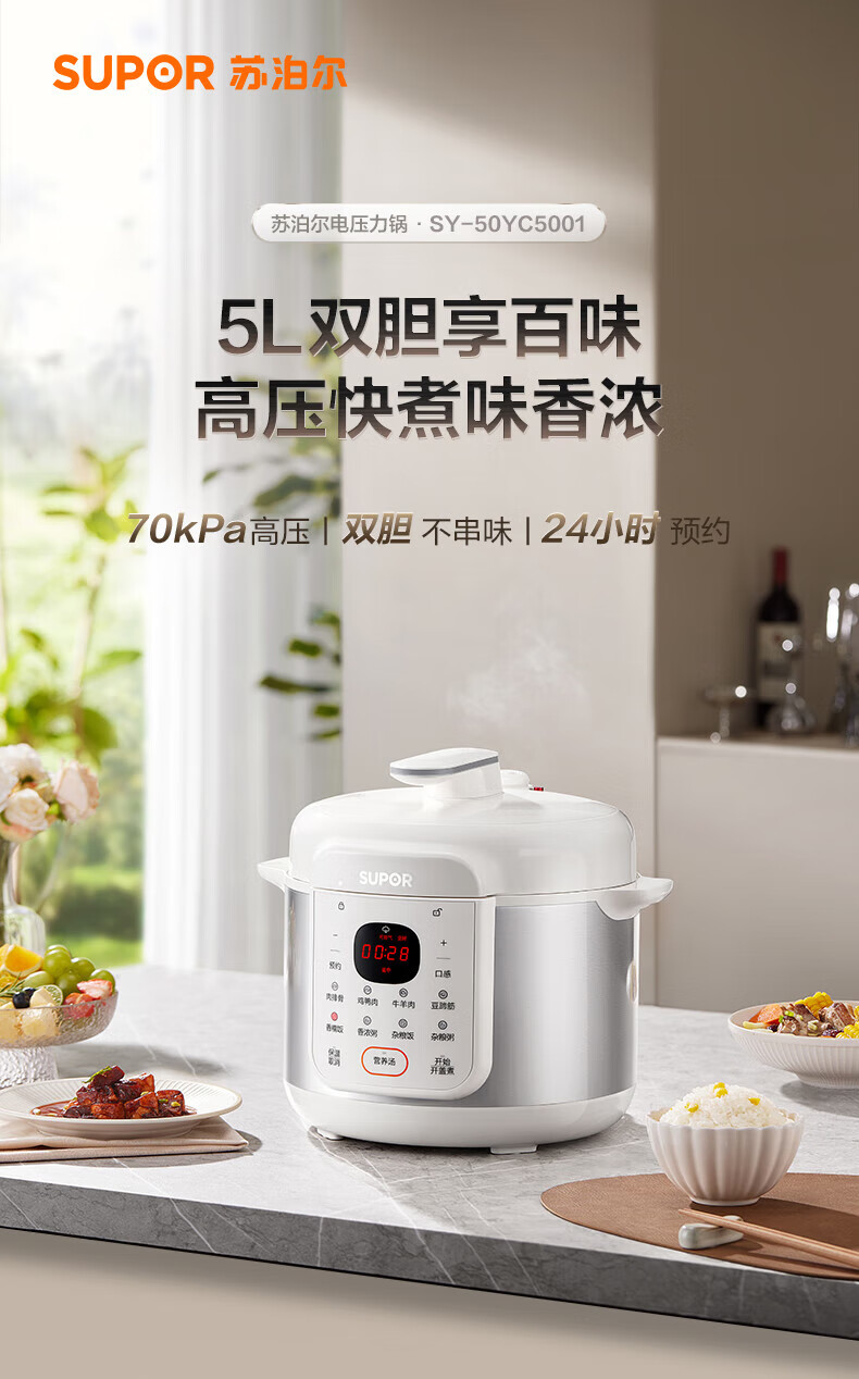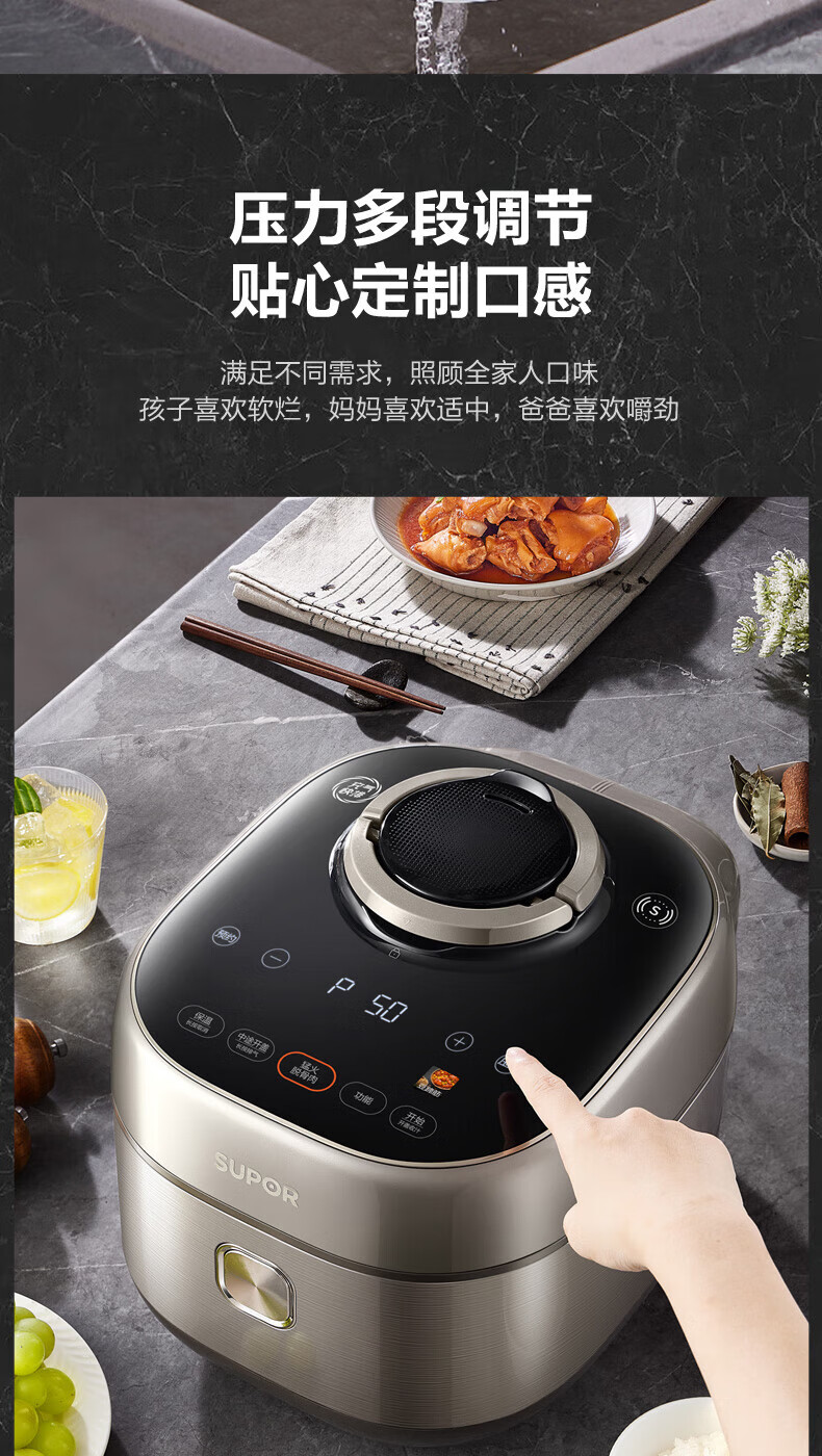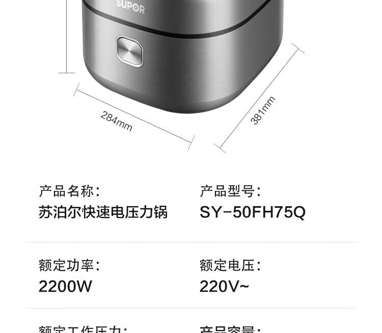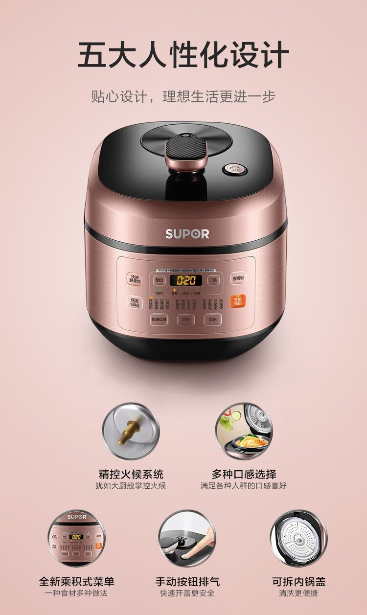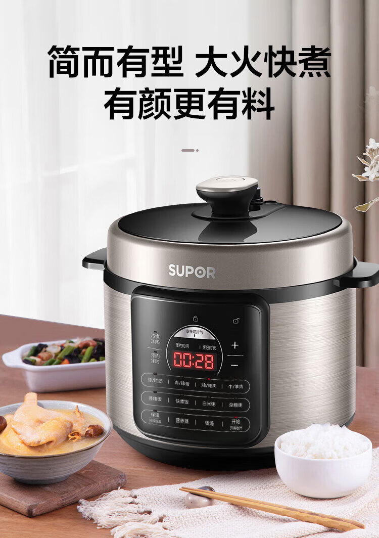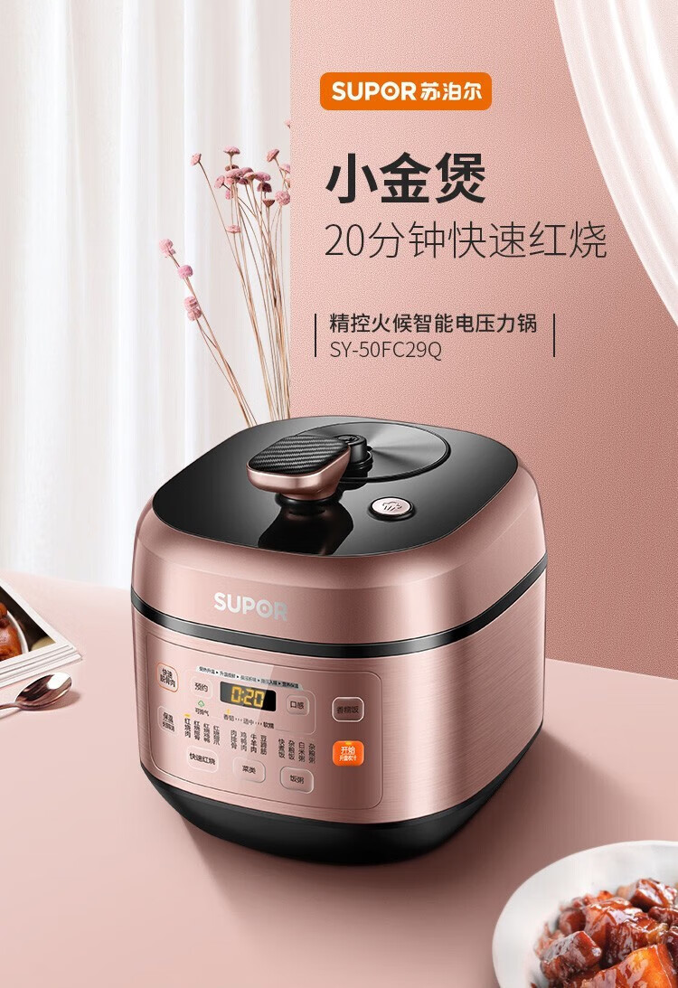 苏泊尔(SUPOR)电压力锅精控火候美味烹饪家用全自动智能预约压力锅快速脱骨迷你1-3-8人电饭煲煲汤易清洁 SY-50FH65 5L