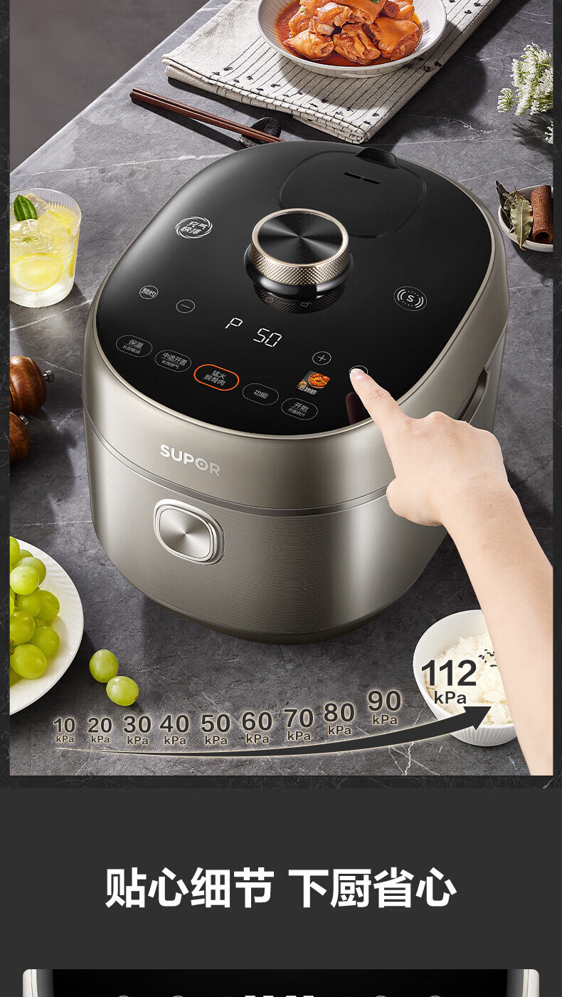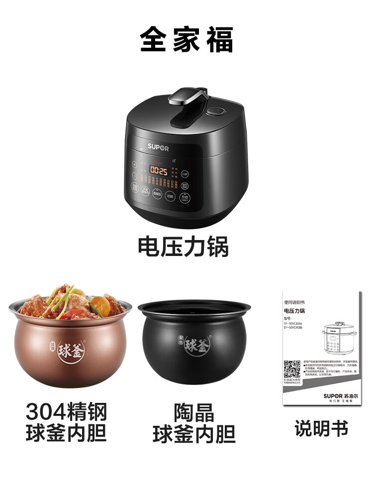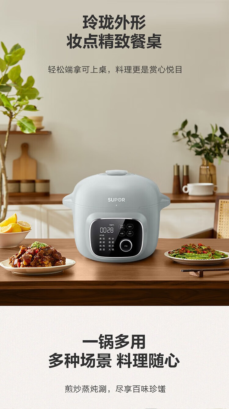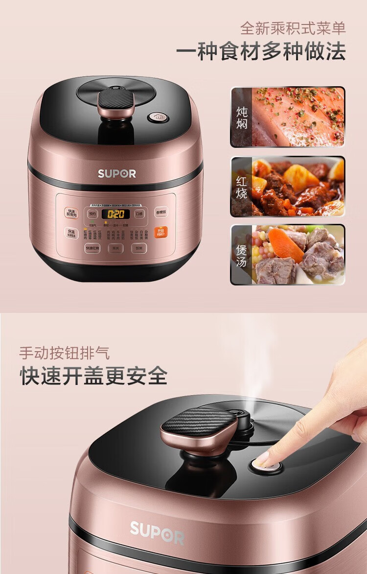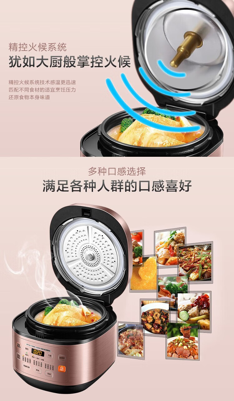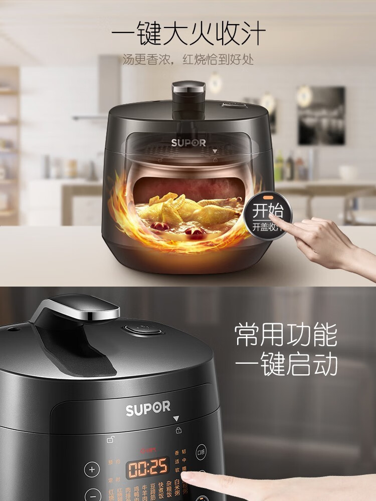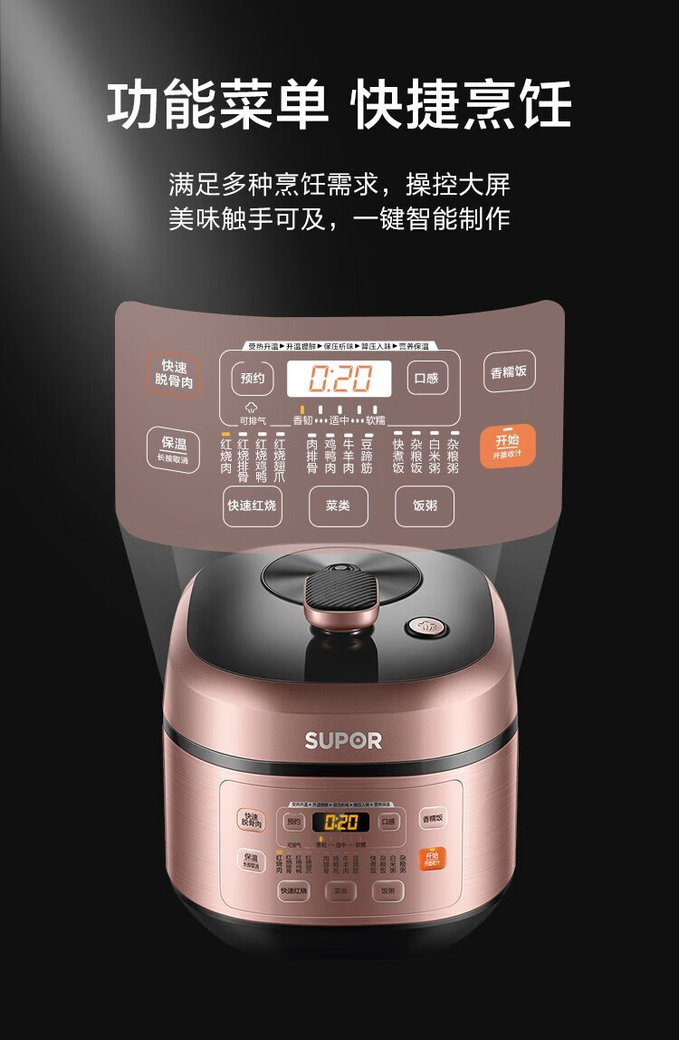 苏泊尔(SUPOR)电压力锅精控火候美味烹饪家用全自动智能预约压力锅快速脱骨迷你1-3-8人电饭煲煲汤易清洁 SY-50FH65 5L