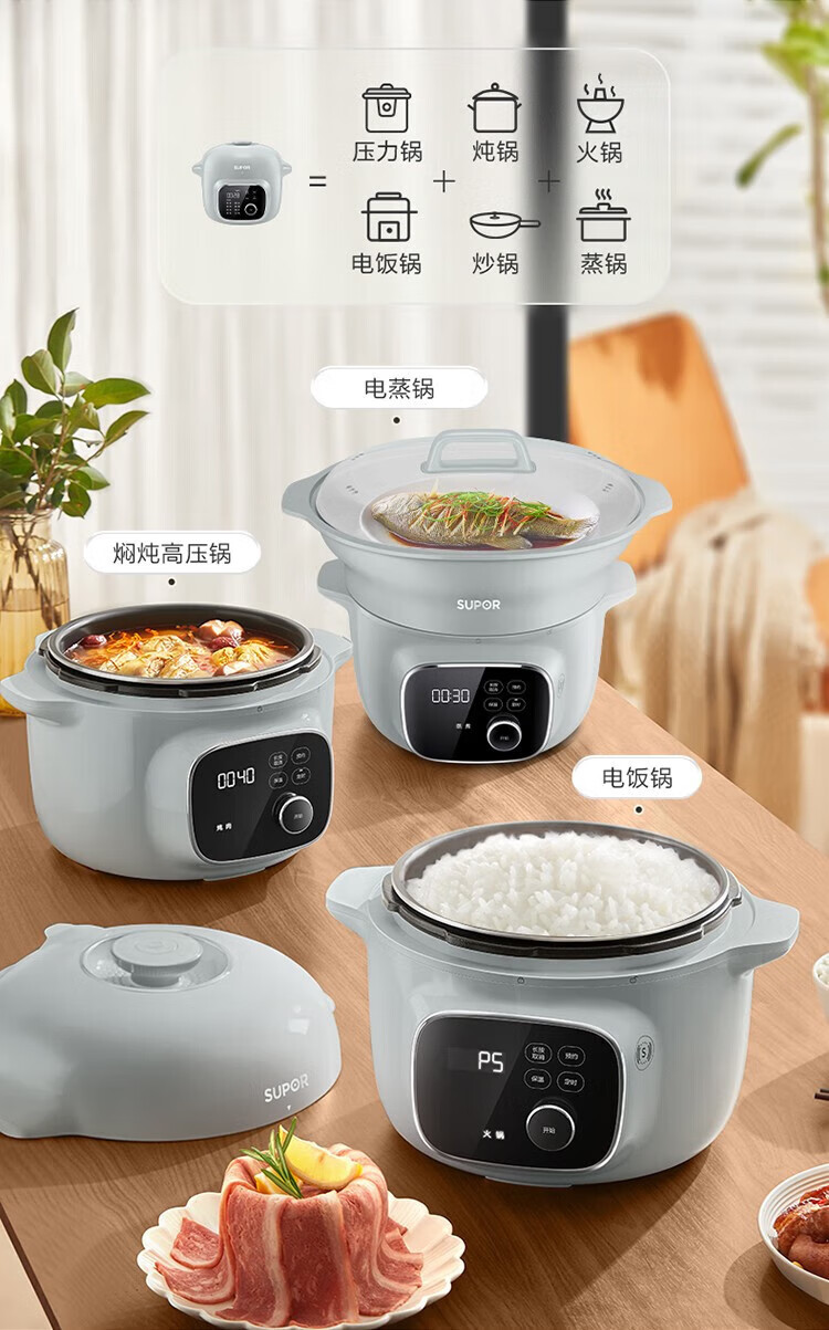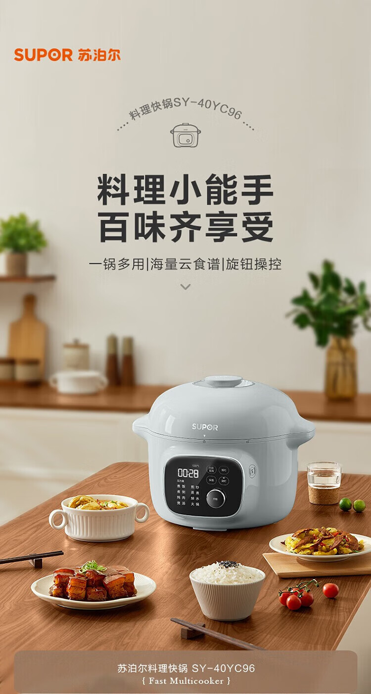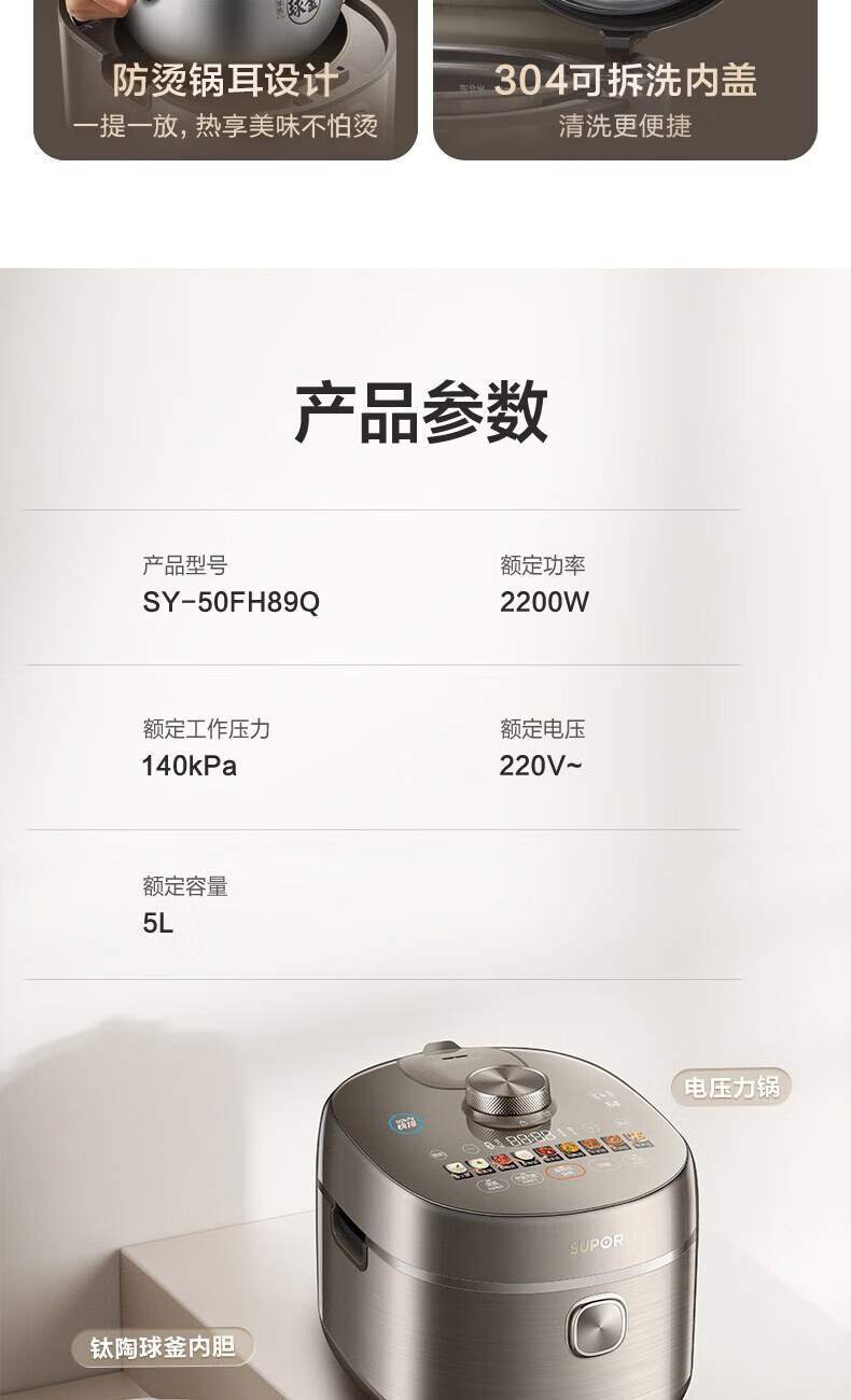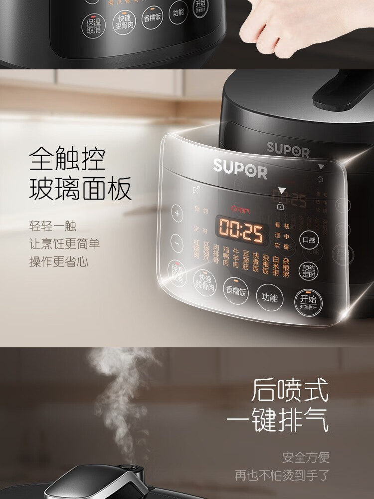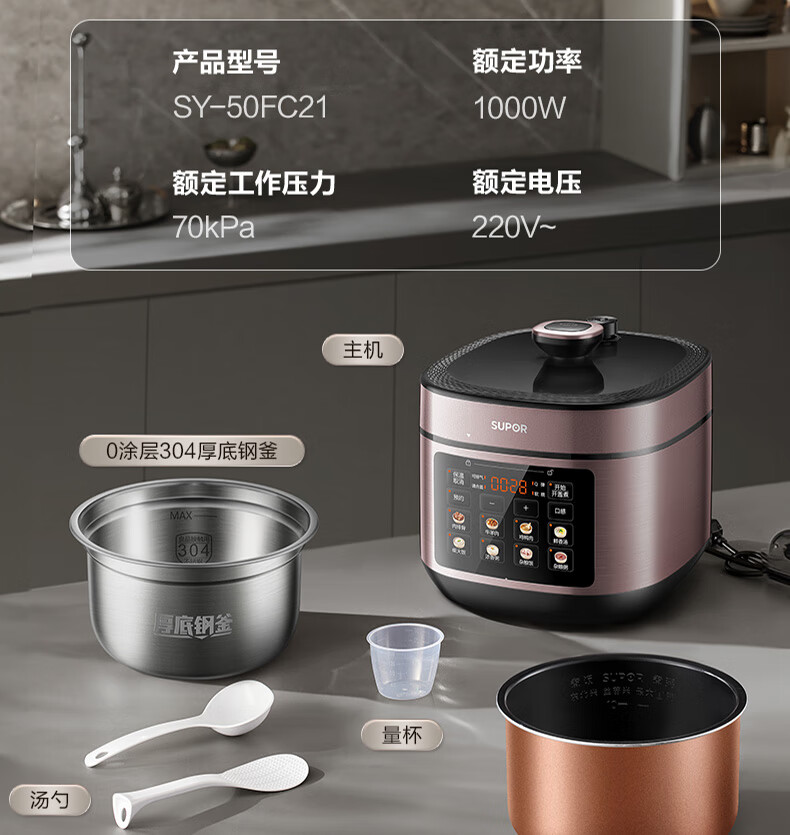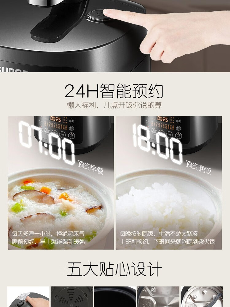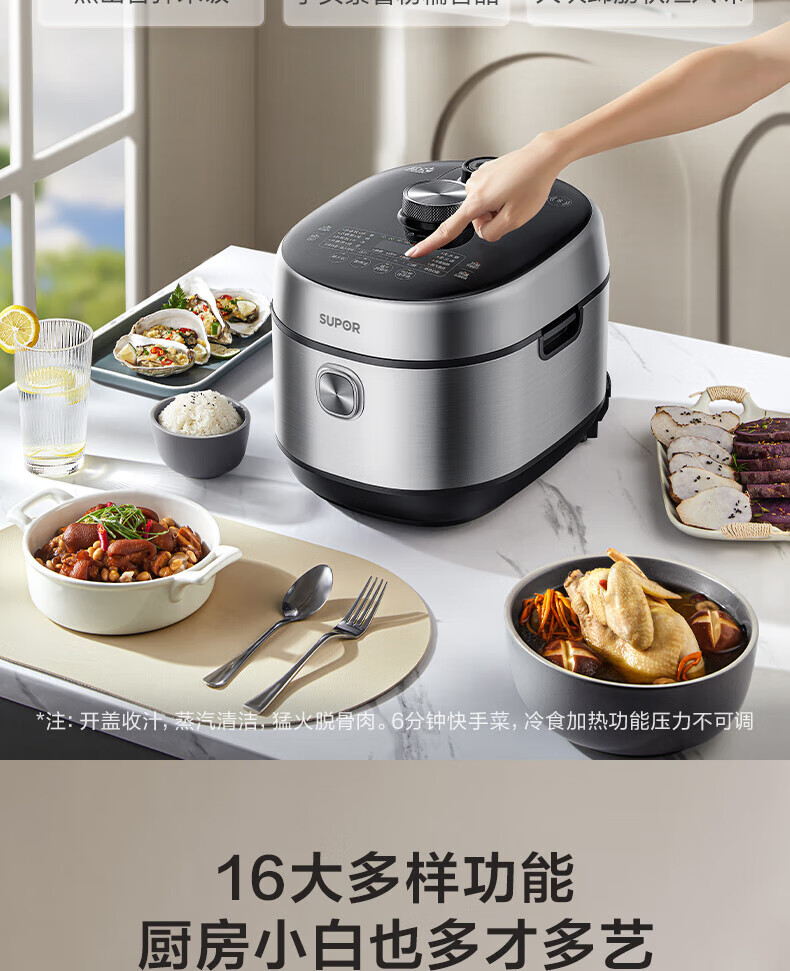 苏泊尔(SUPOR)电压力锅精控火候美味烹饪家用全自动智能预约压力锅快速脱骨迷你1-3-8人电饭煲煲汤易清洁 SY-50FH65 5L