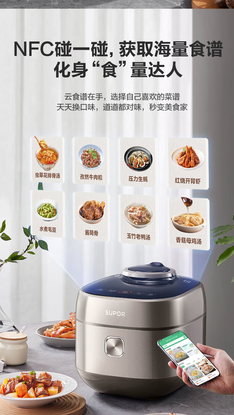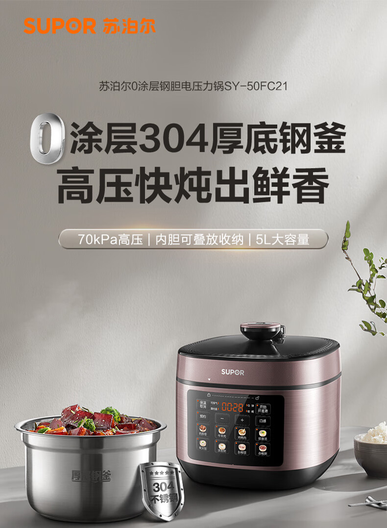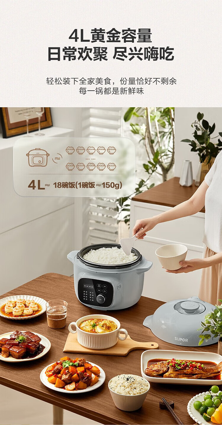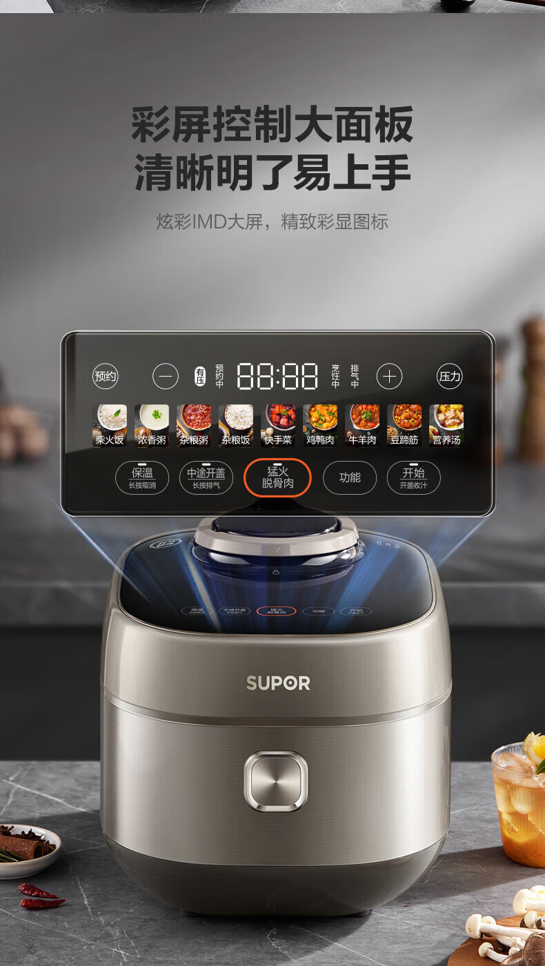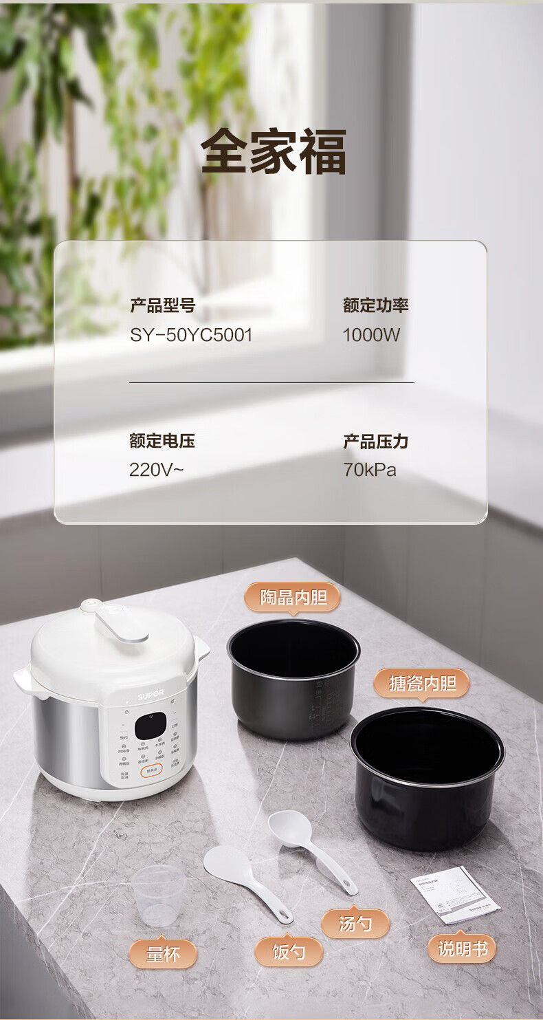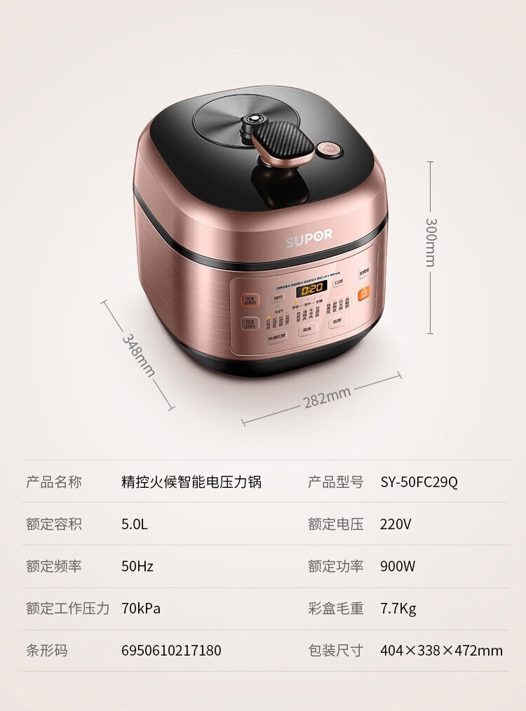 苏泊尔(SUPOR)电压力锅精控火候美味烹饪家用全自动智能预约压力锅快速脱骨迷你1-3-8人电饭煲煲汤易清洁 SY-50FH65 5L