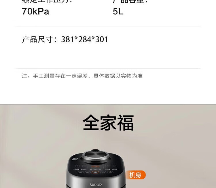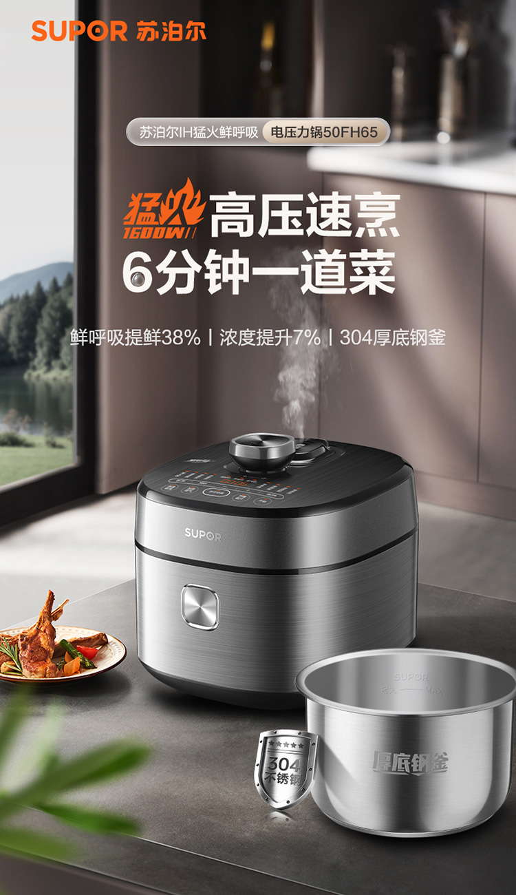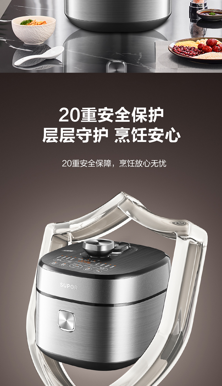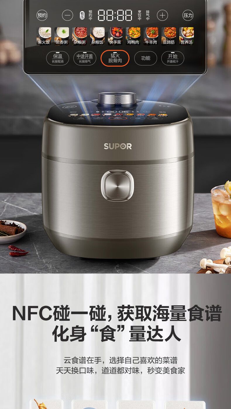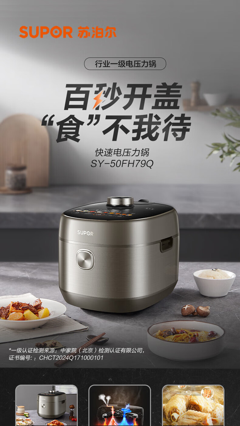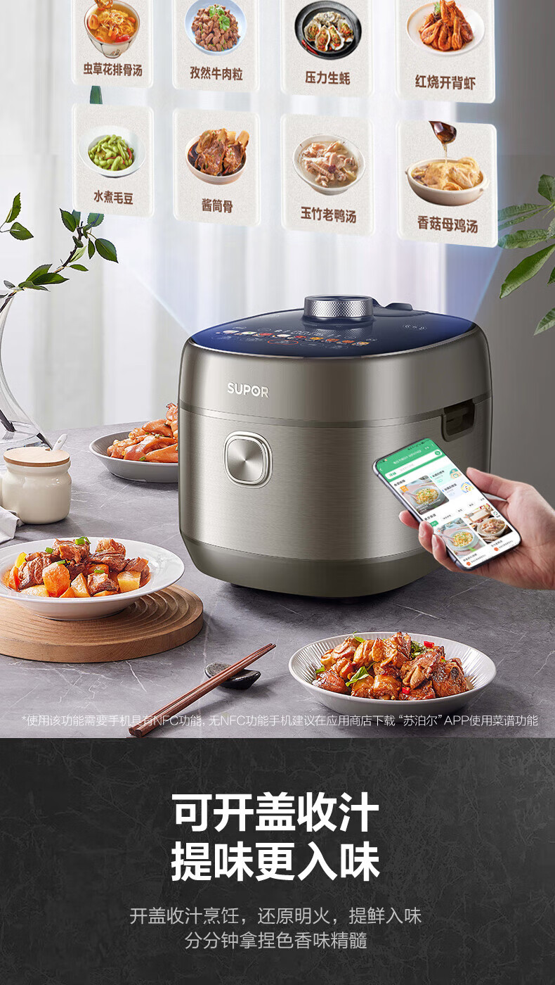 苏泊尔(SUPOR)电压力锅精控火候美味烹饪家用全自动智能预约压力锅快速脱骨迷你1-3-8人电饭煲煲汤易清洁 SY-50FH65 5L