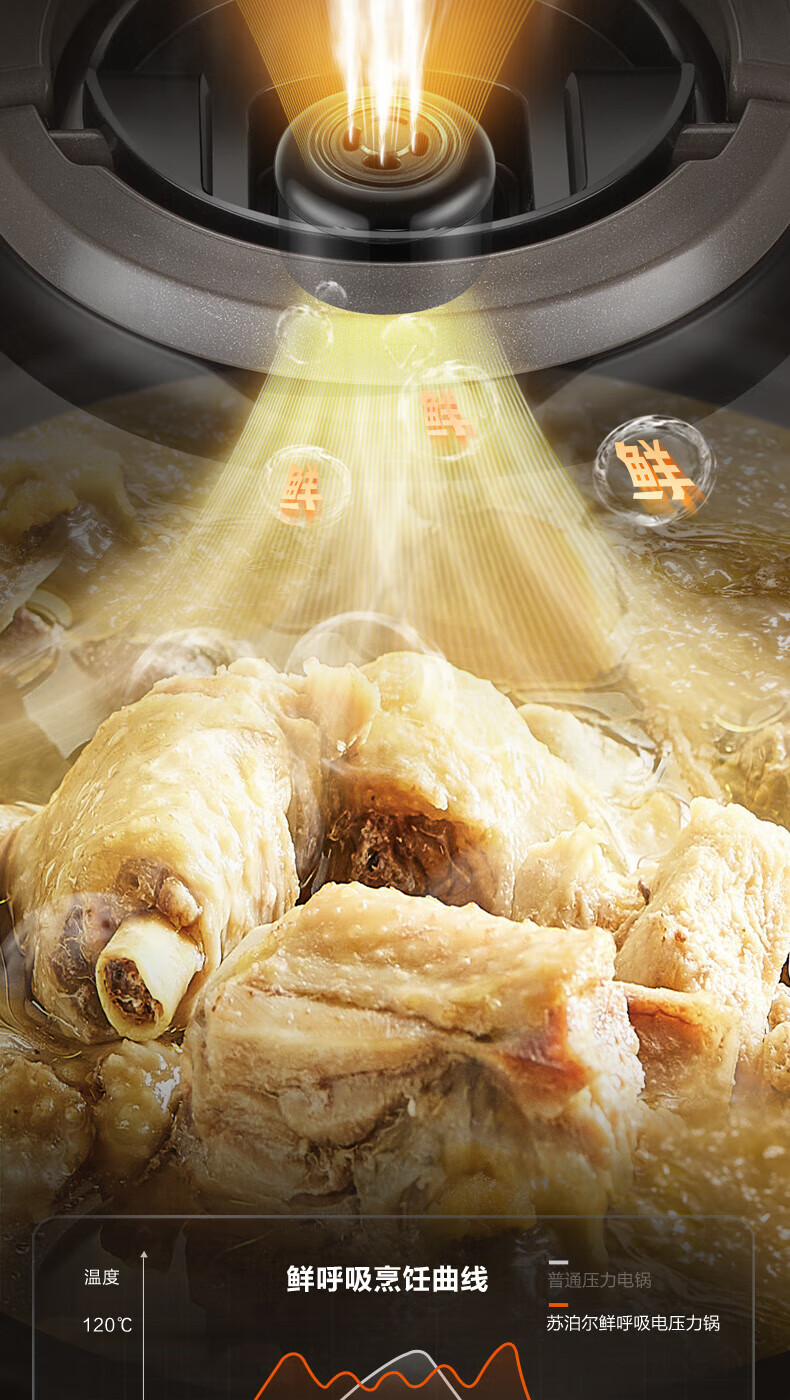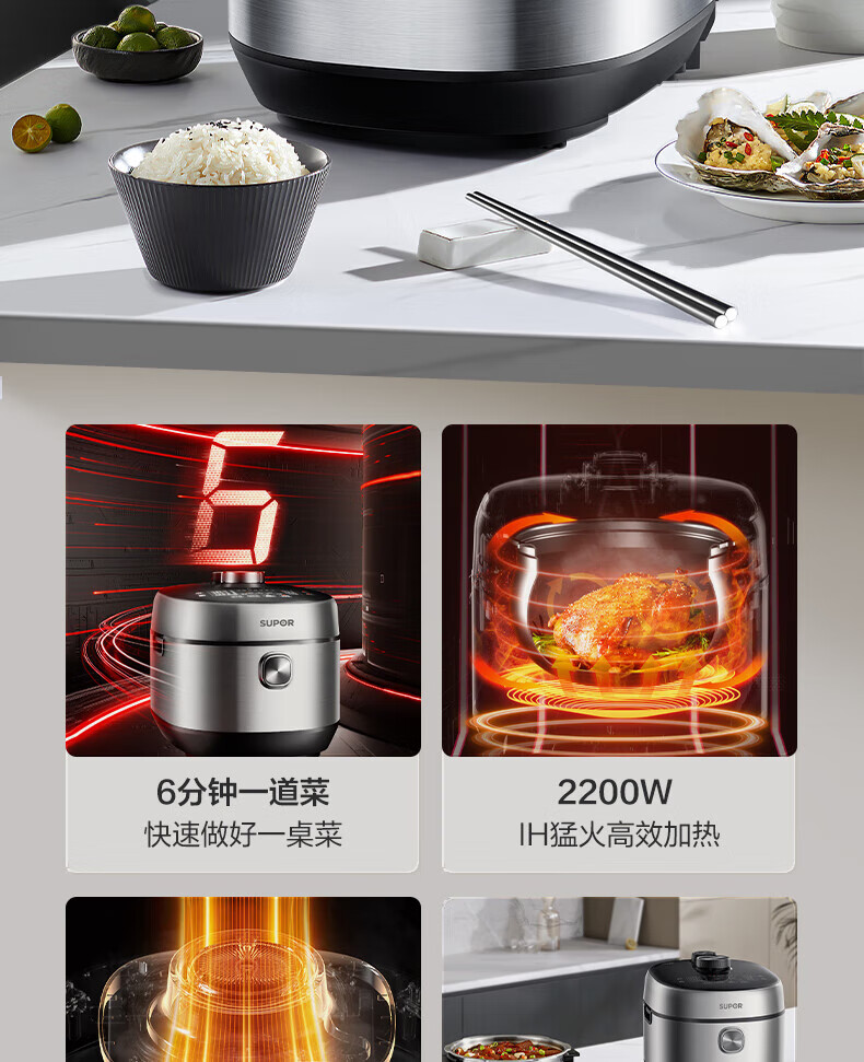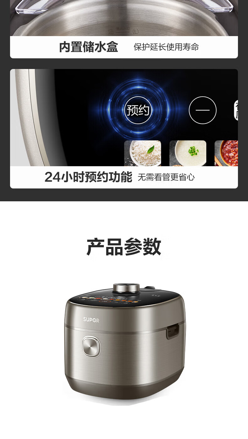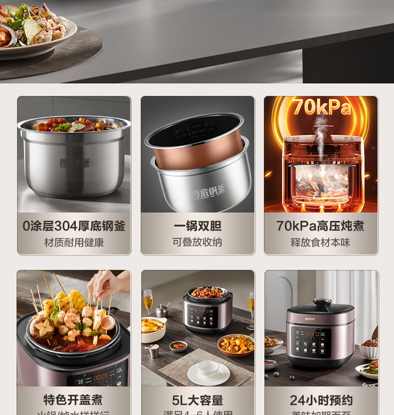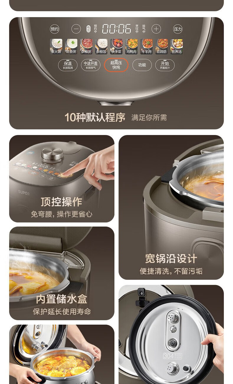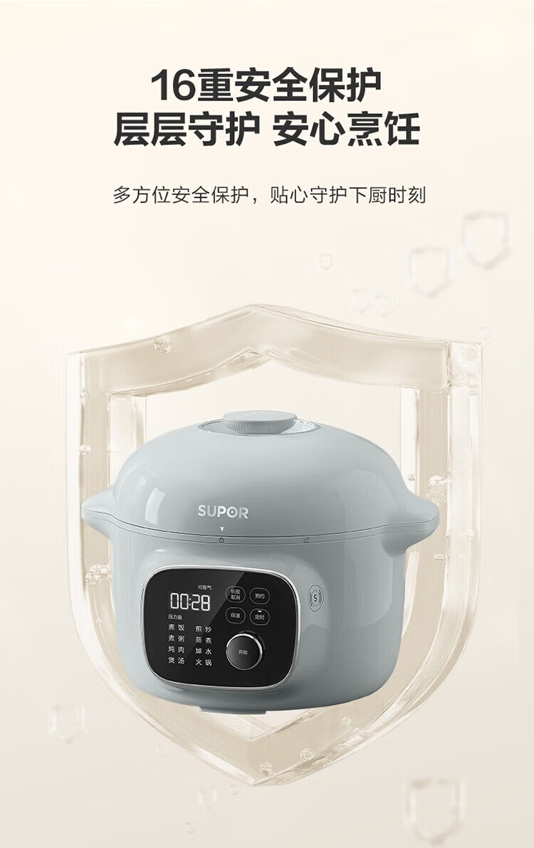 苏泊尔(SUPOR)电压力锅精控火候美味烹饪家用全自动智能预约压力锅快速脱骨迷你1-3-8人电饭煲煲汤易清洁 SY-50FH65 5L