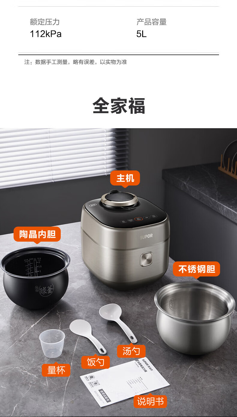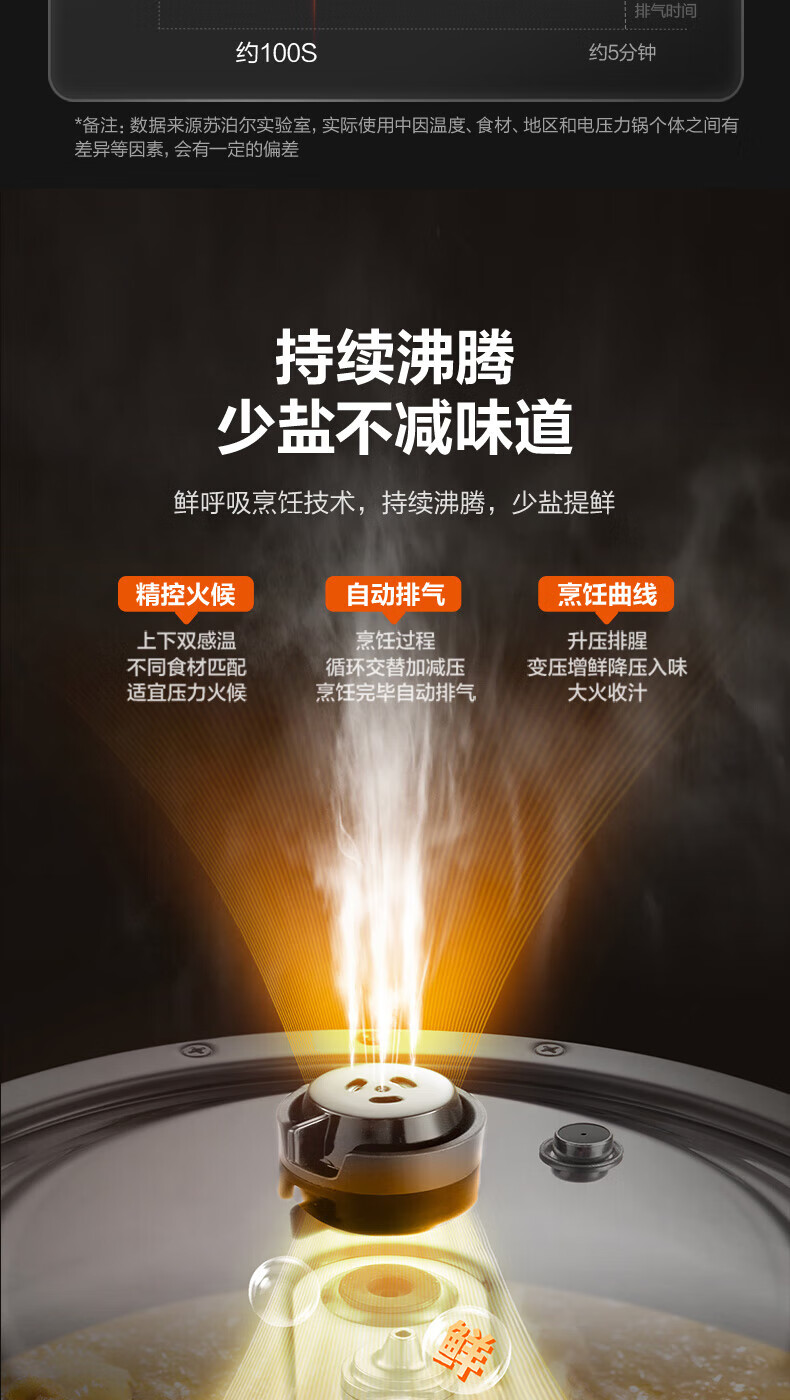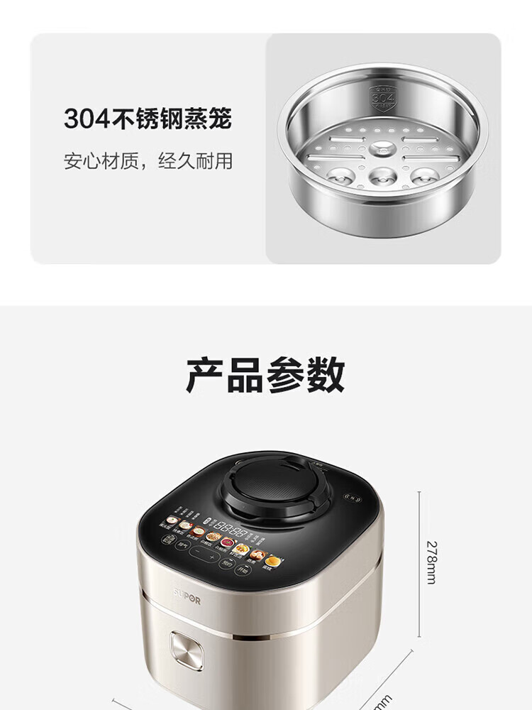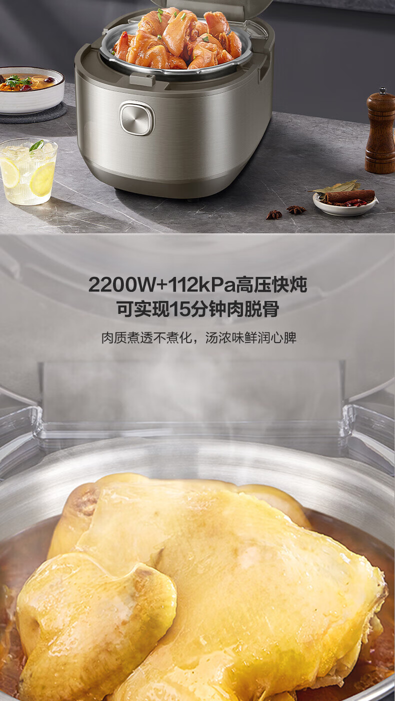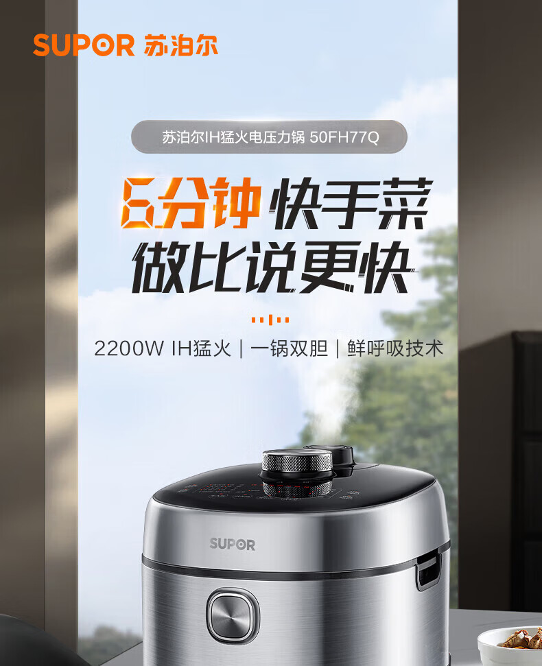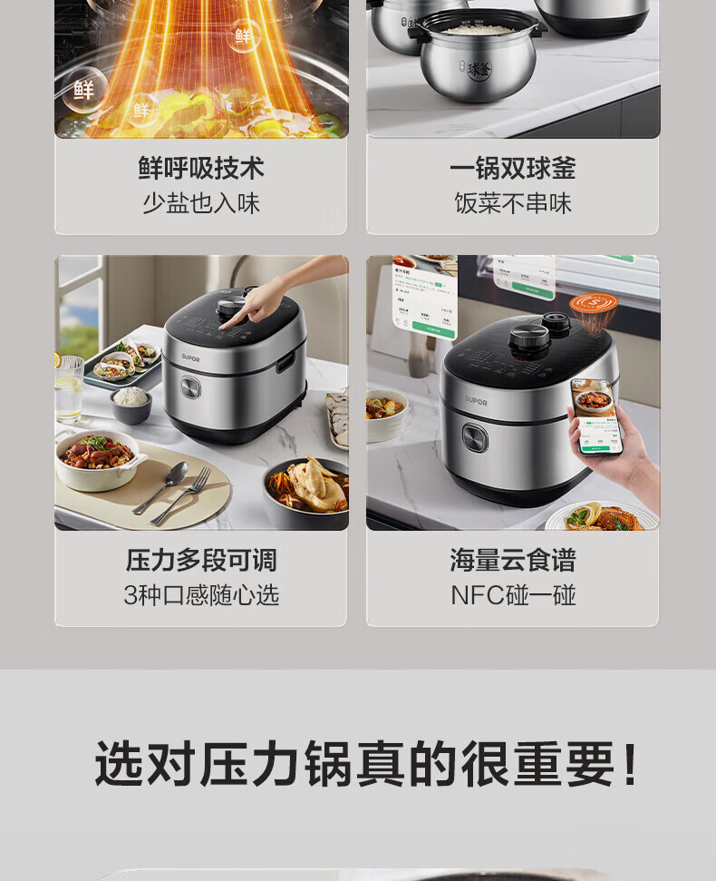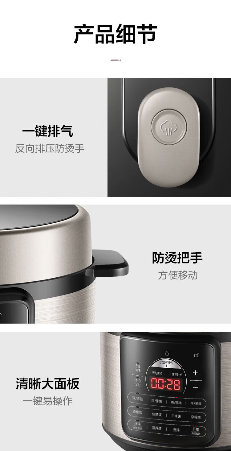苏泊尔(SUPOR)电压力锅精控火候美味烹饪家用全自动智能预约压力锅快速脱骨迷你1-3-8人电饭煲煲汤易清洁 SY-50FH65 5L