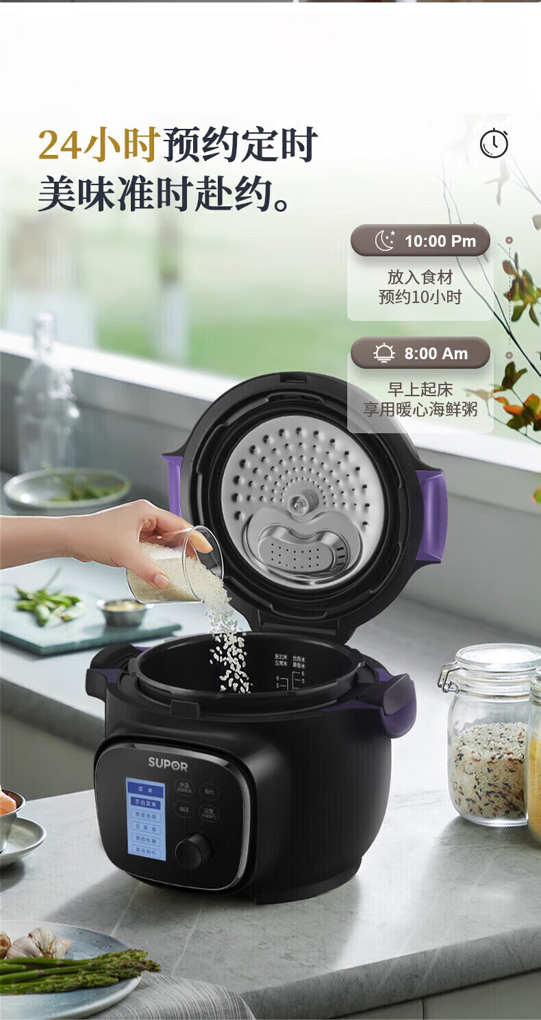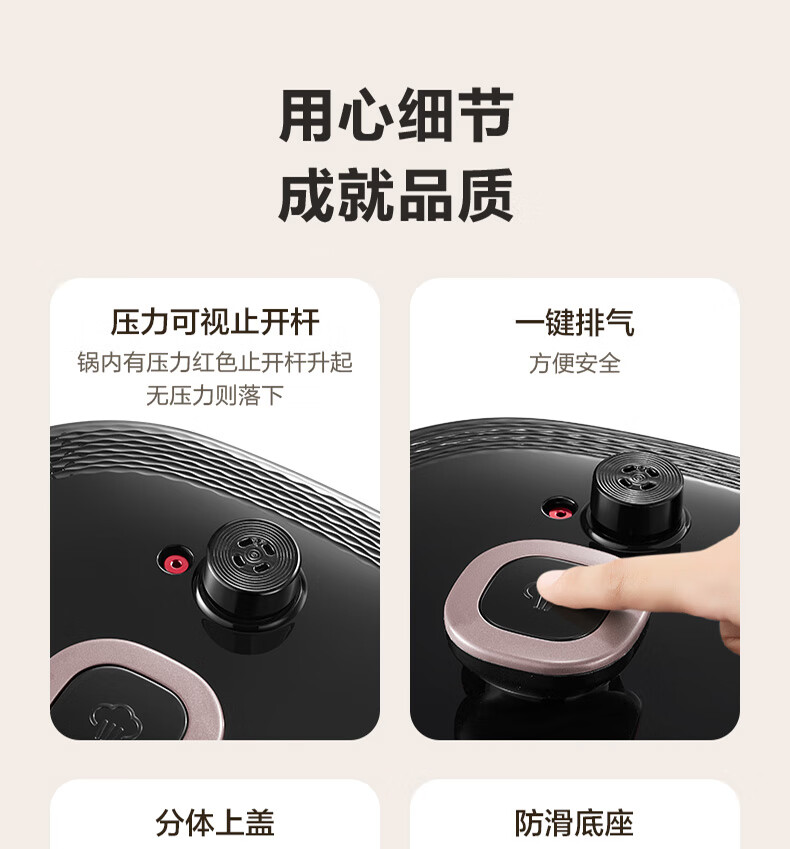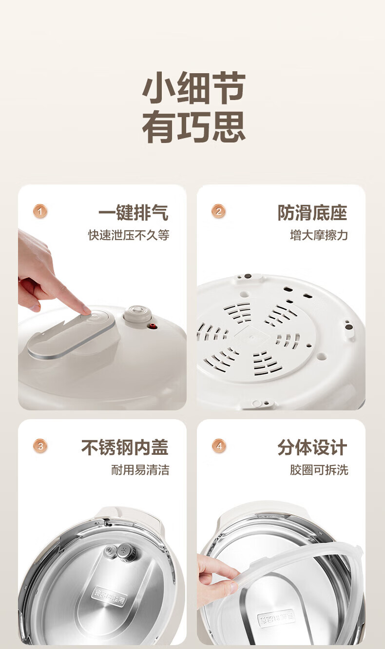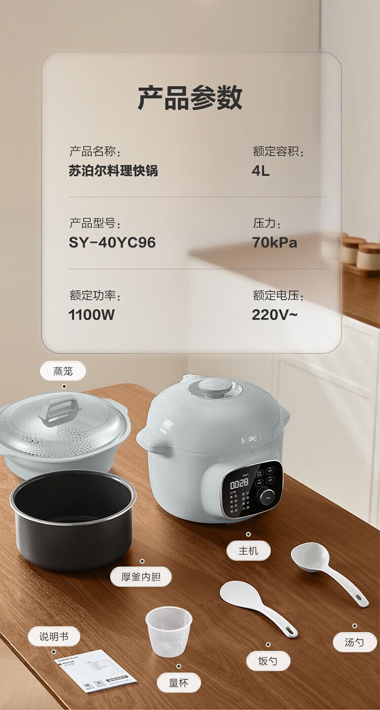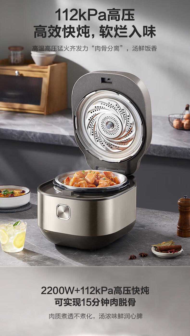 苏泊尔(SUPOR)电压力锅精控火候美味烹饪家用全自动智能预约压力锅快速脱骨迷你1-3-8人电饭煲煲汤易清洁 SY-50FH65 5L
