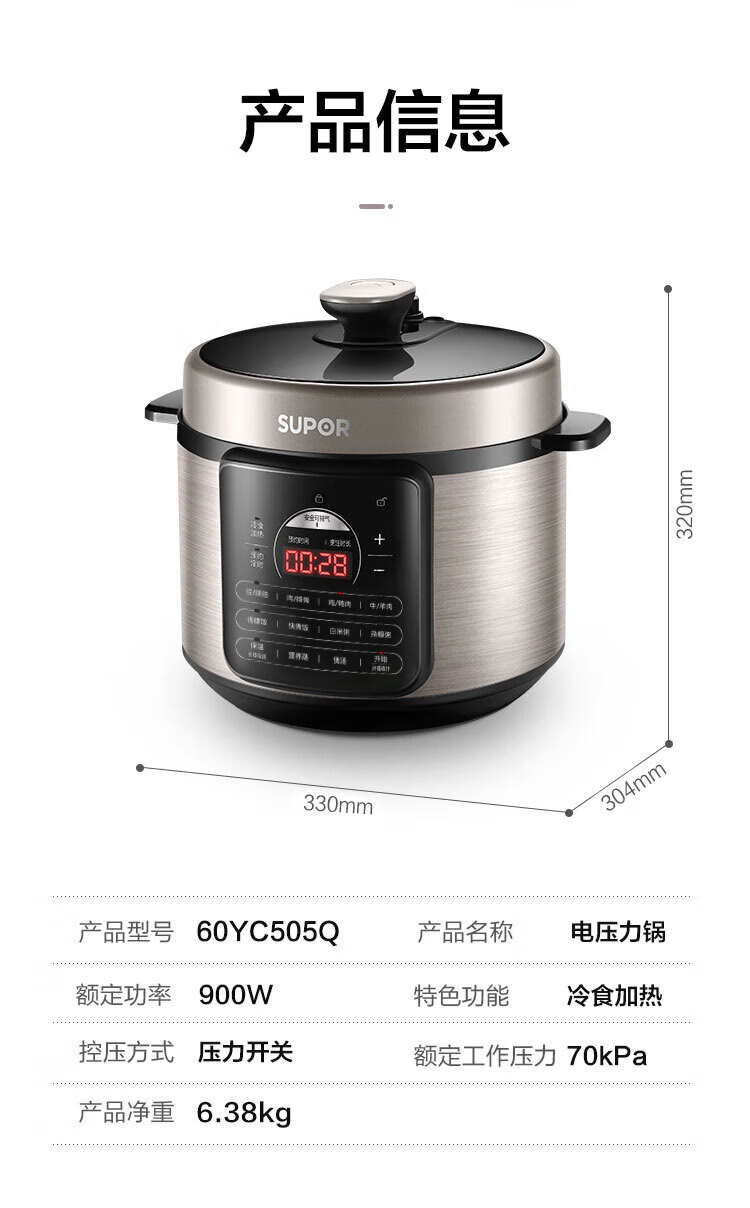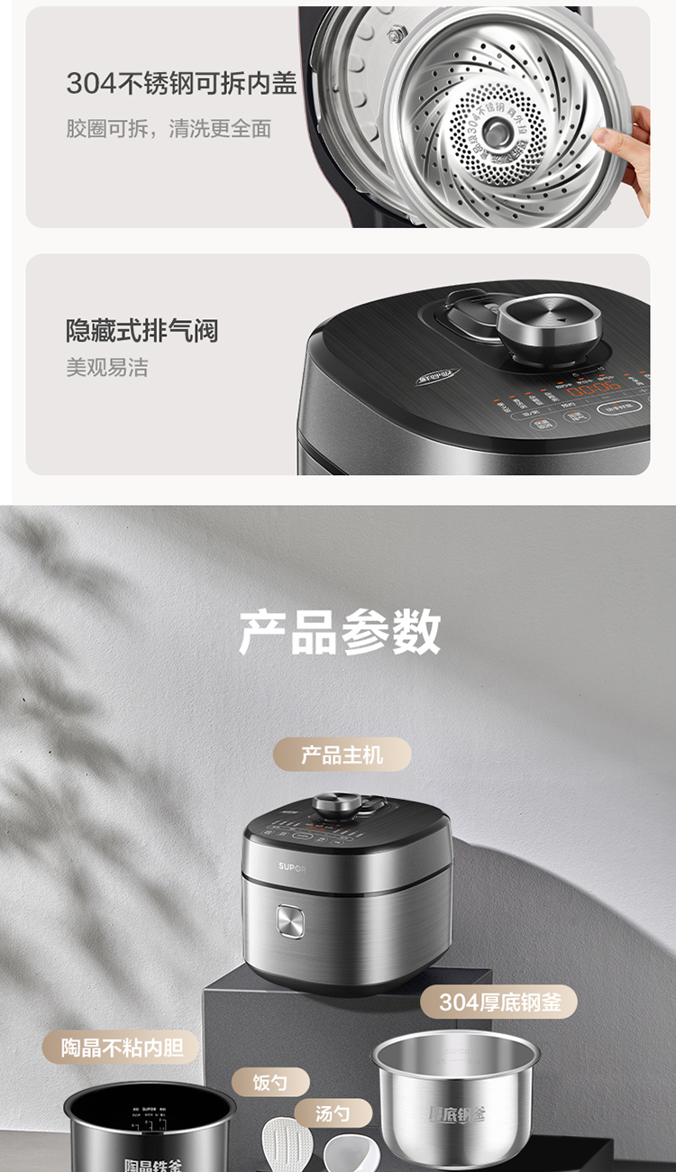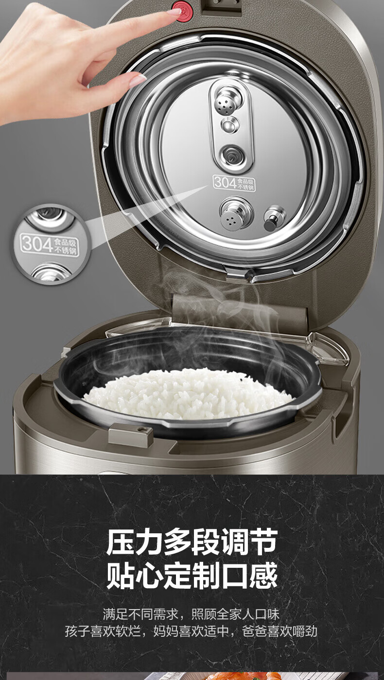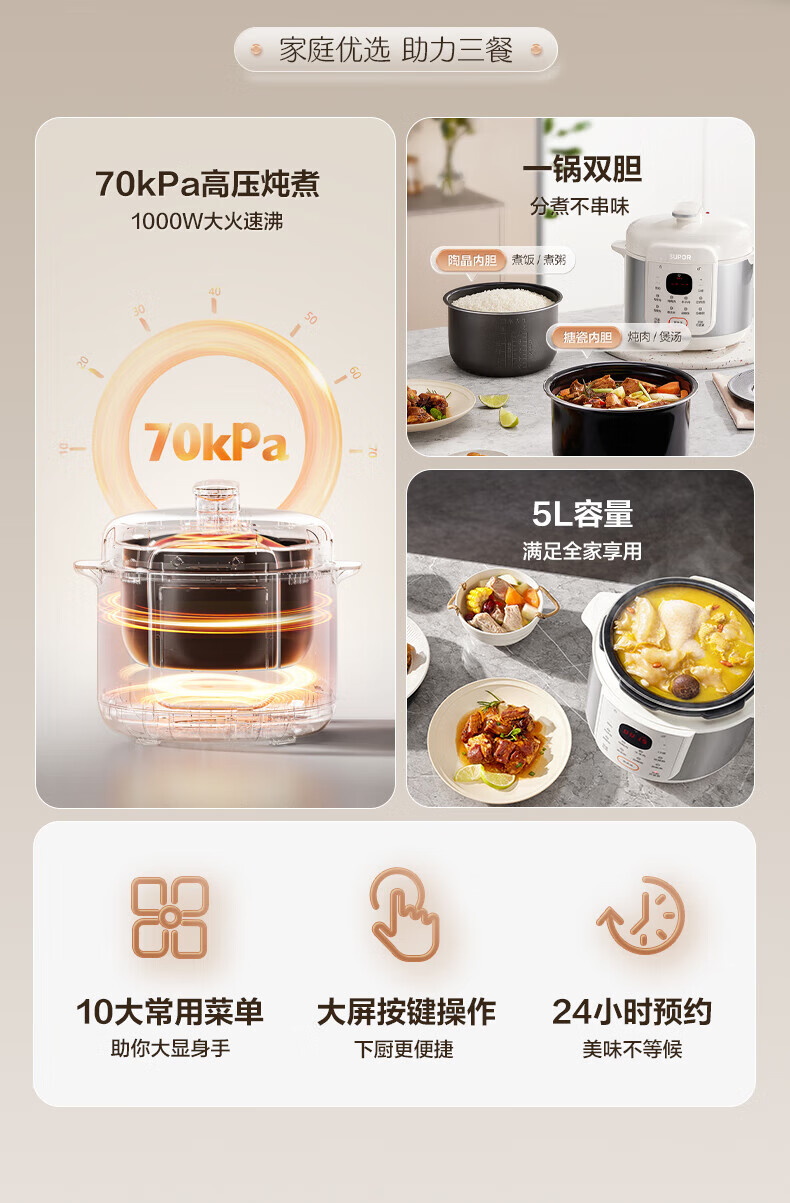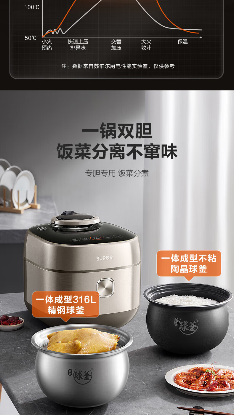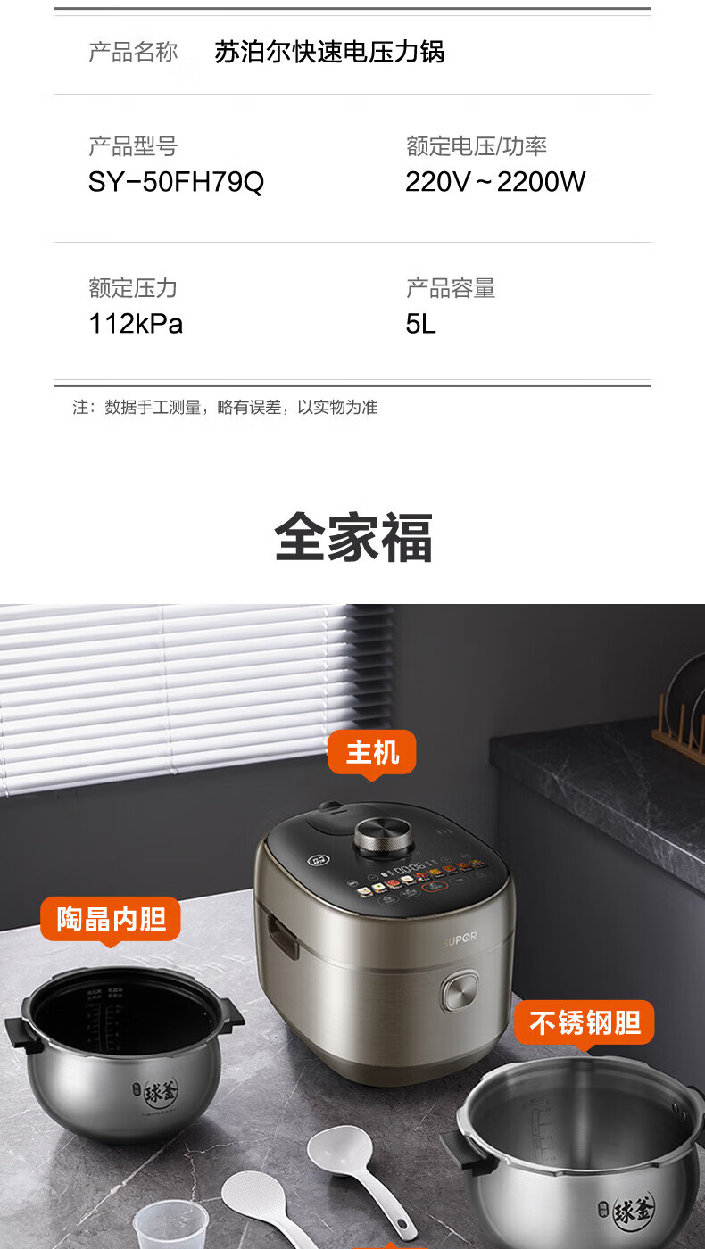 苏泊尔(SUPOR)电压力锅精控火候美味烹饪家用全自动智能预约压力锅快速脱骨迷你1-3-8人电饭煲煲汤易清洁 SY-50FH65 5L