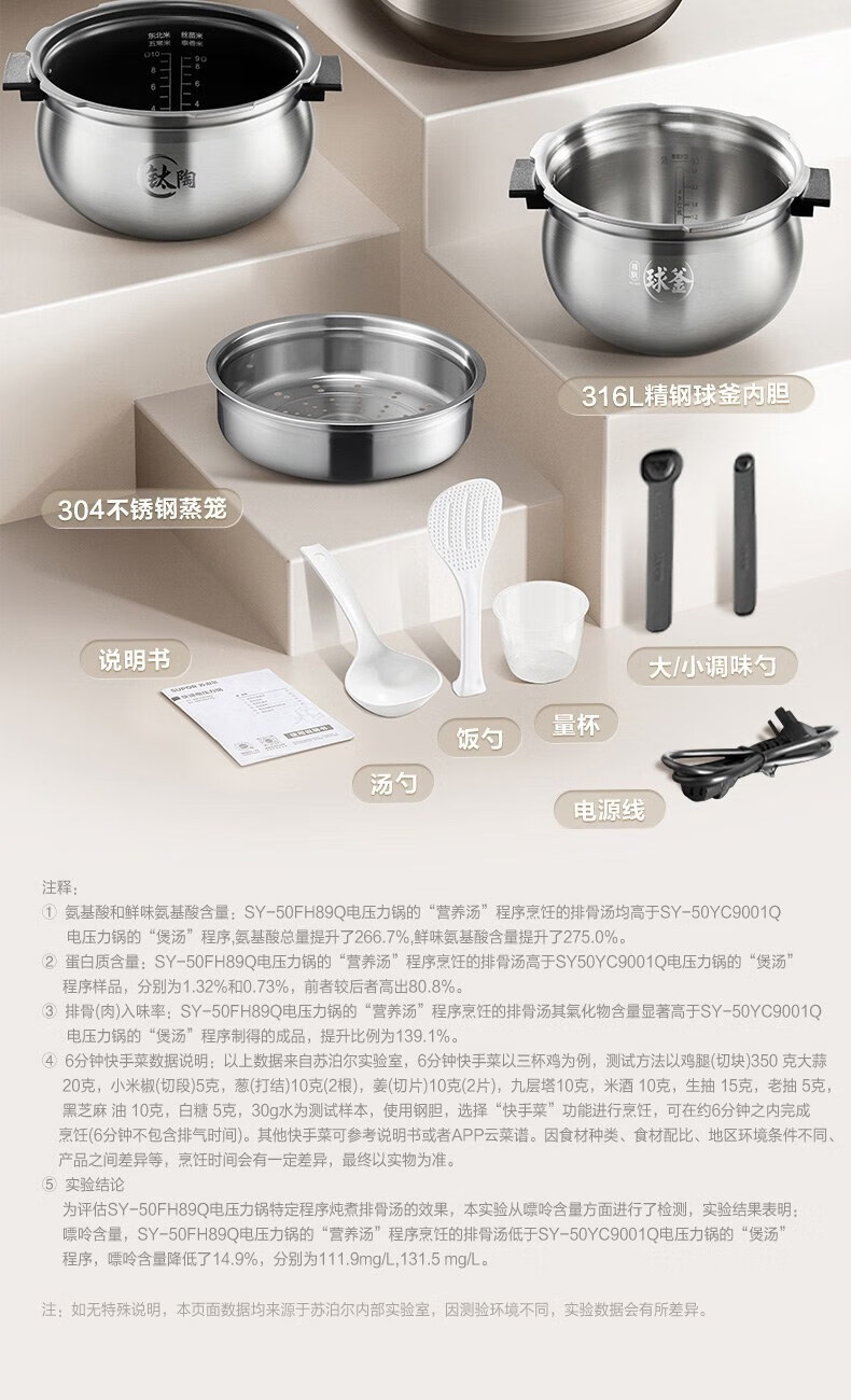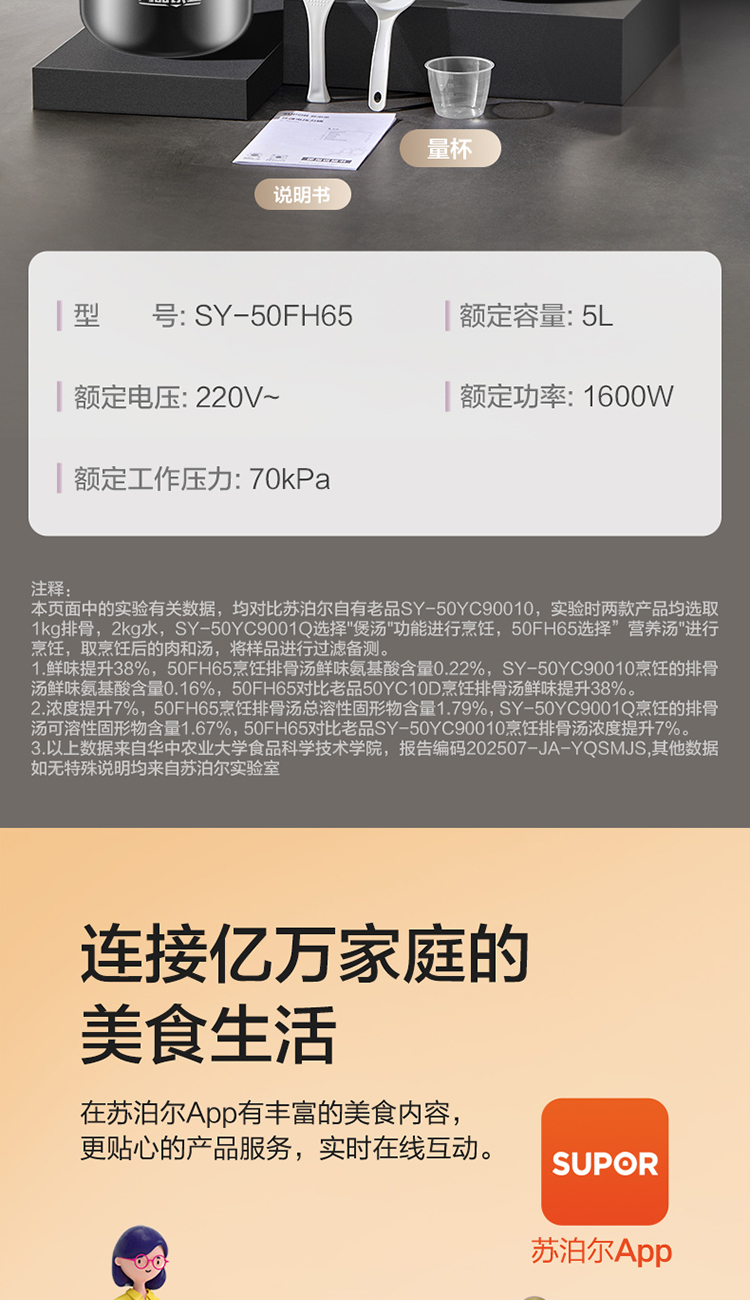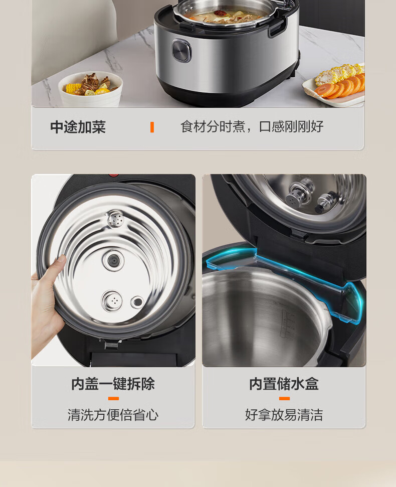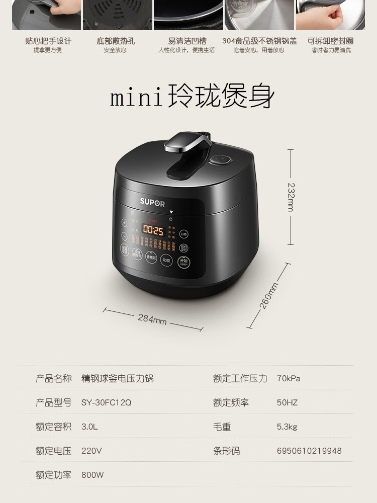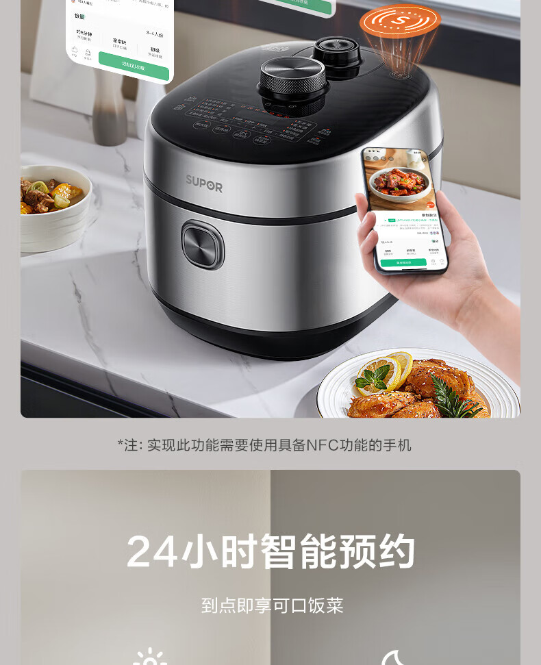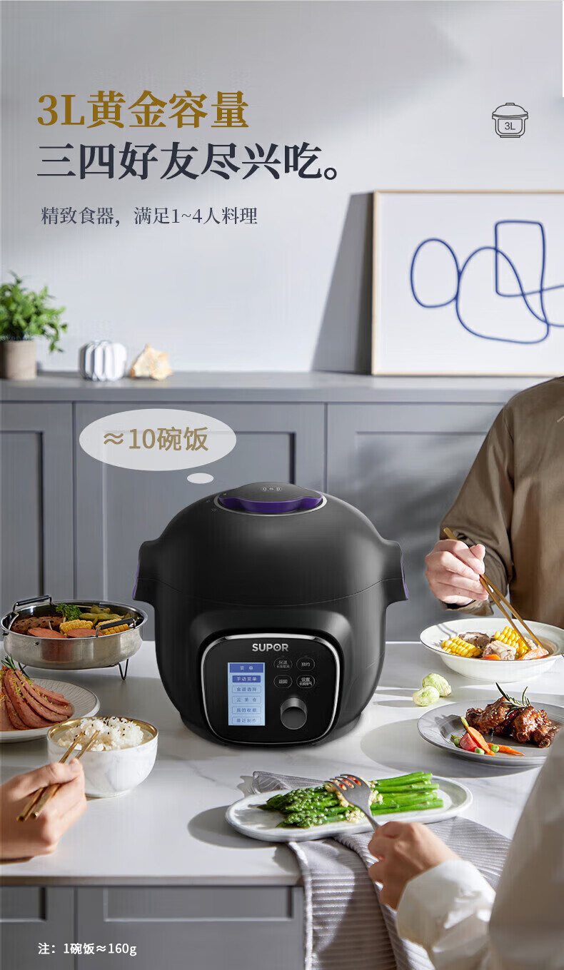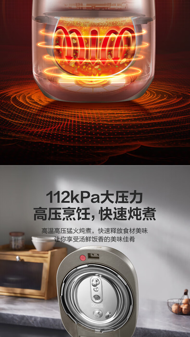 苏泊尔(SUPOR)电压力锅精控火候美味烹饪家用全自动智能预约压力锅快速脱骨迷你1-3-8人电饭煲煲汤易清洁 SY-50FH65 5L
