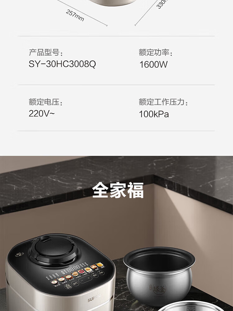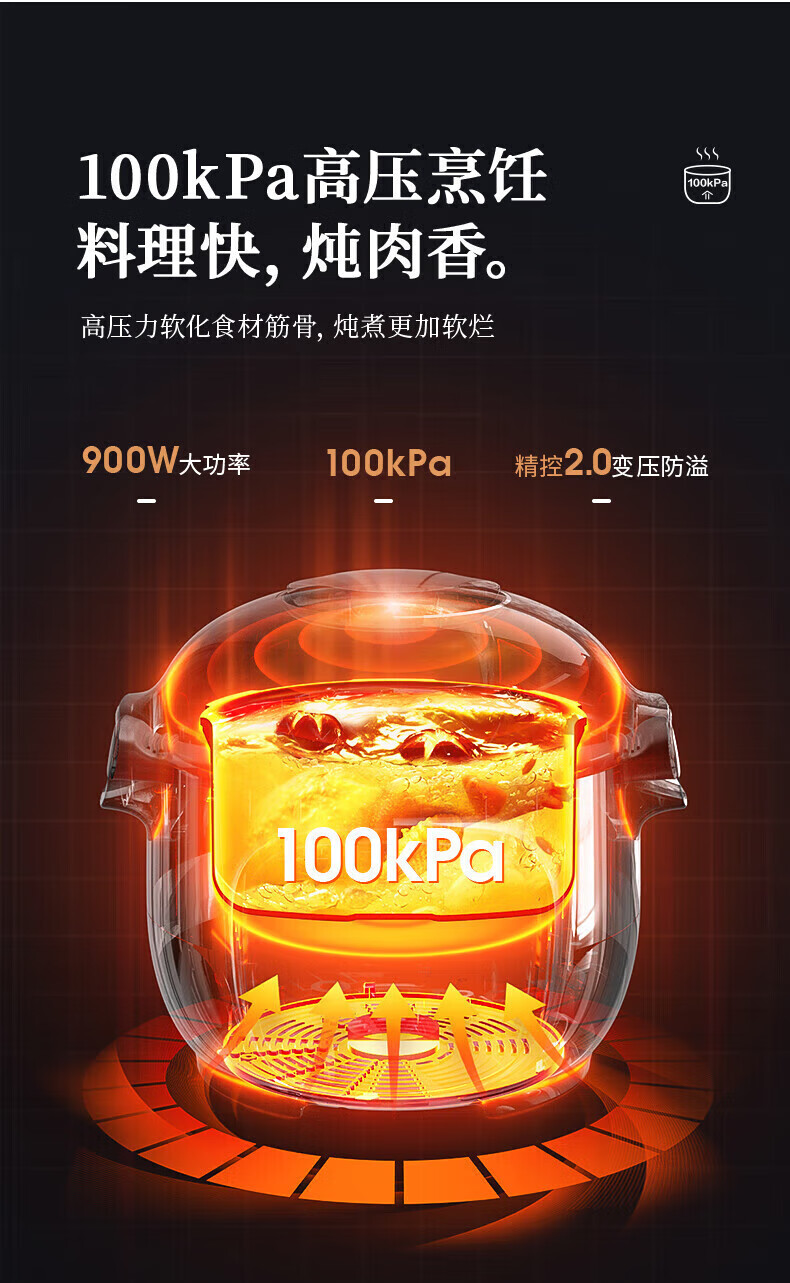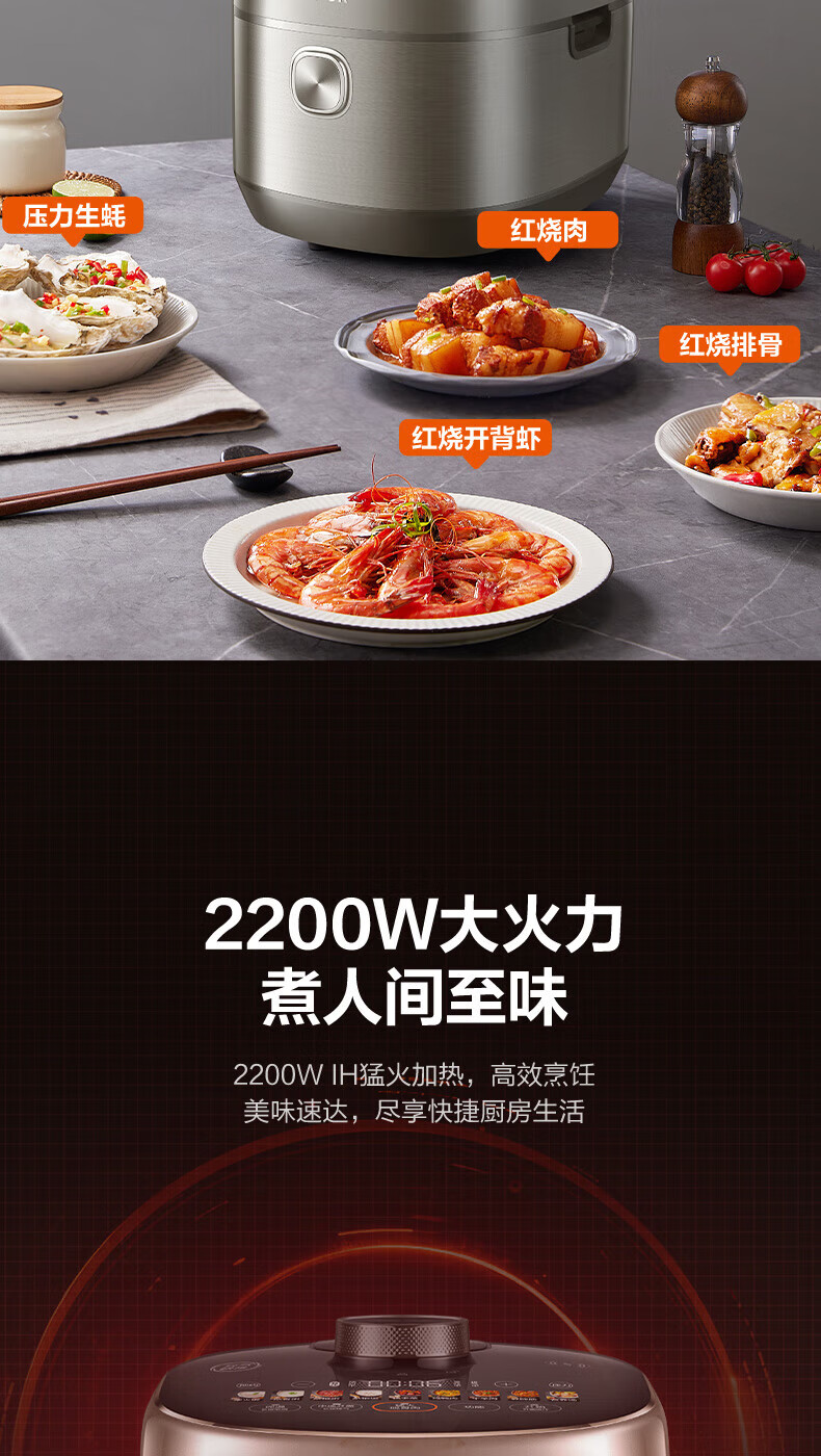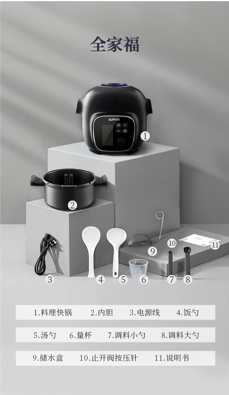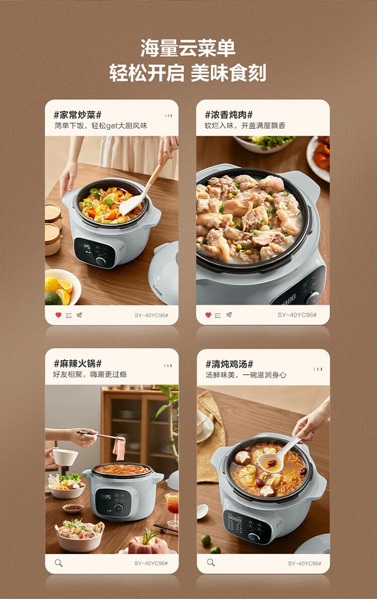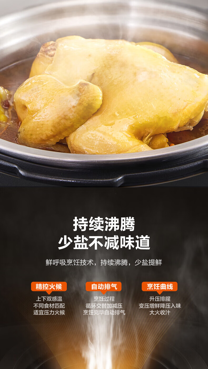 苏泊尔(SUPOR)电压力锅精控火候美味烹饪家用全自动智能预约压力锅快速脱骨迷你1-3-8人电饭煲煲汤易清洁 SY-50FH65 5L