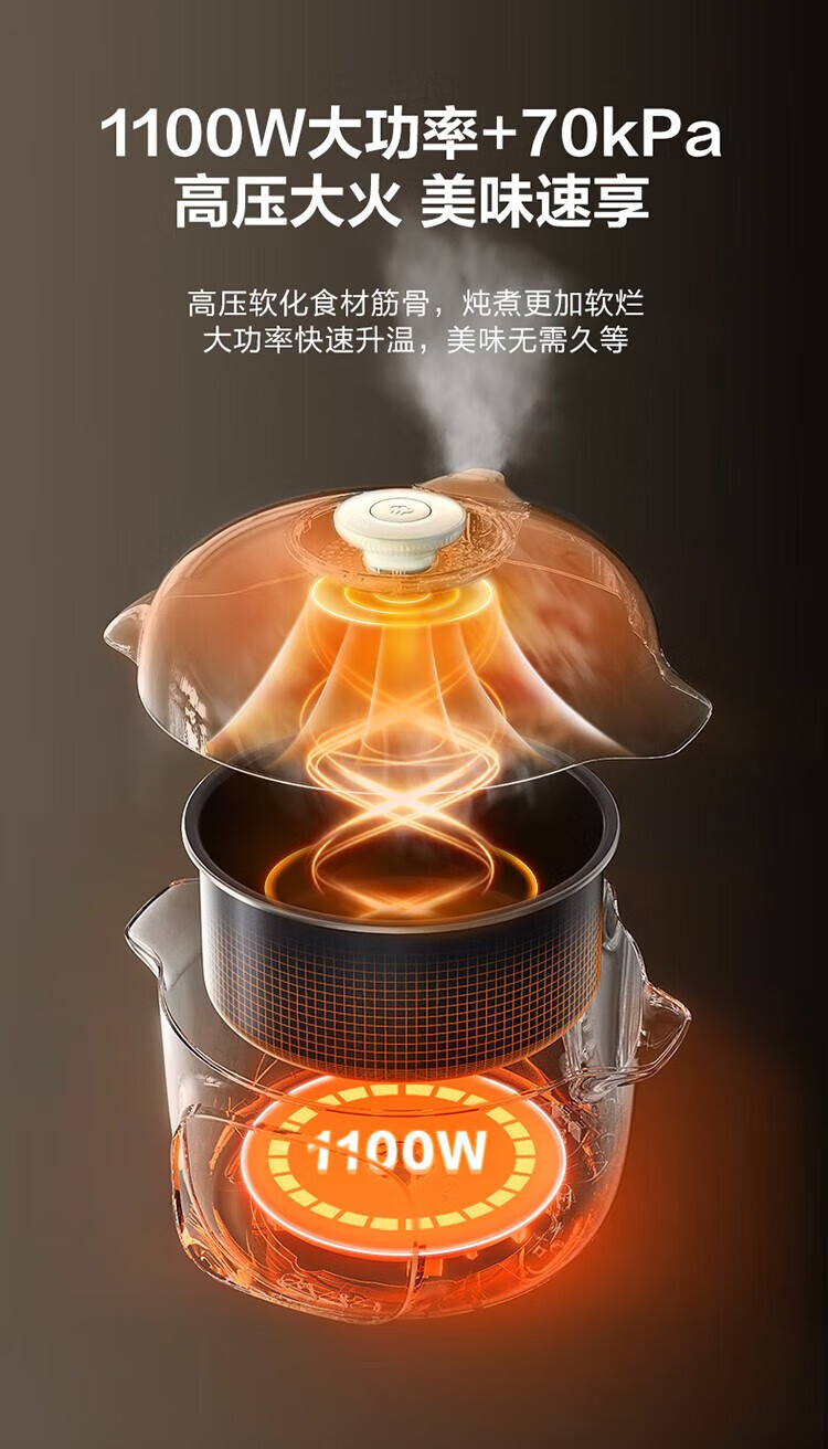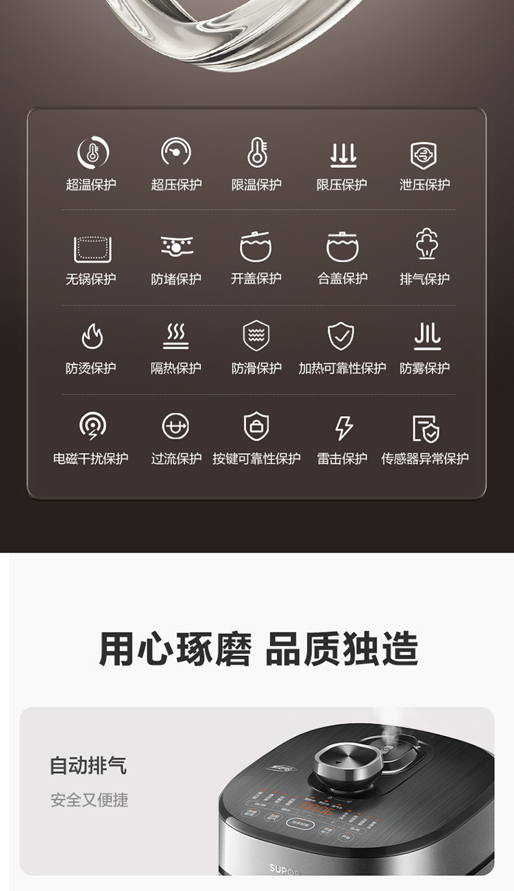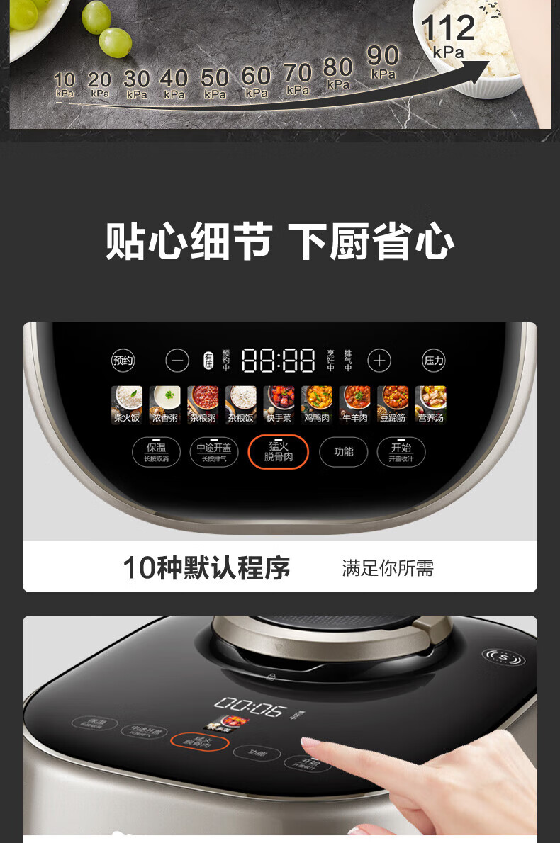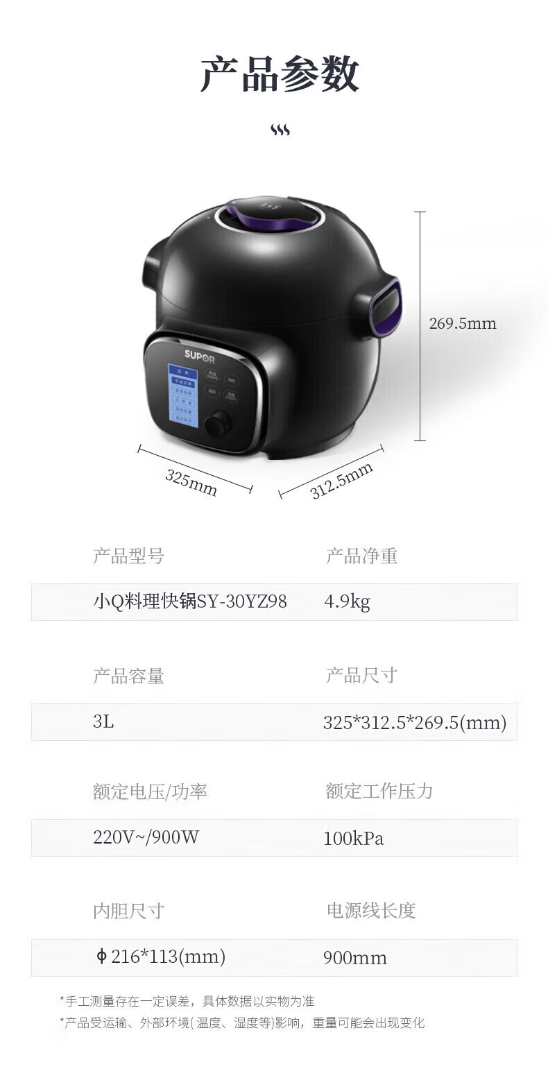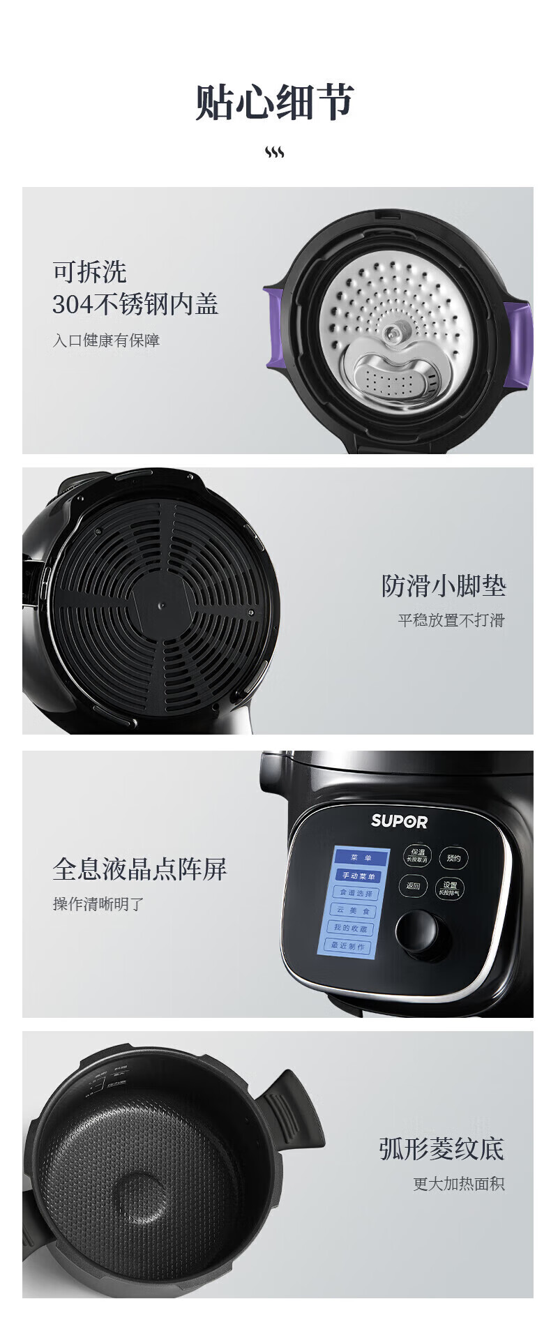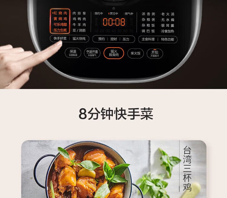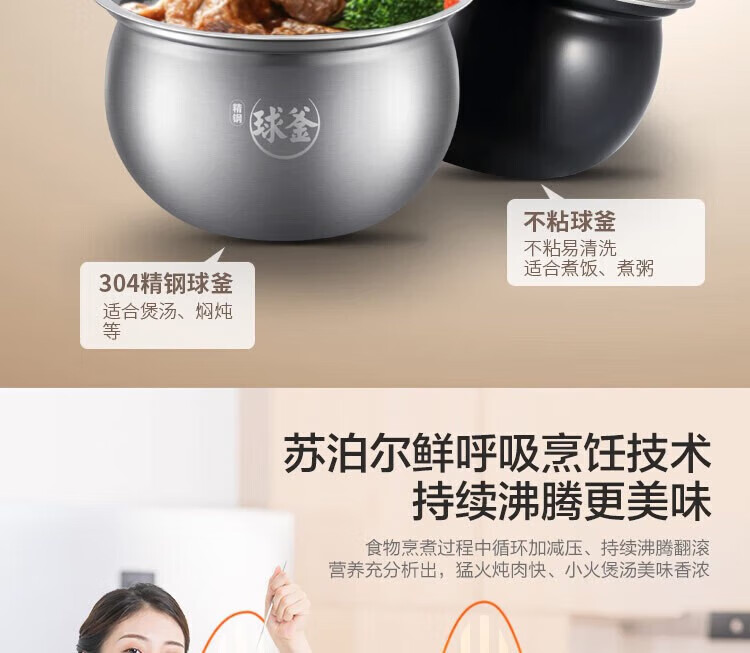 苏泊尔(SUPOR)电压力锅精控火候美味烹饪家用全自动智能预约压力锅快速脱骨迷你1-3-8人电饭煲煲汤易清洁 SY-50FH65 5L