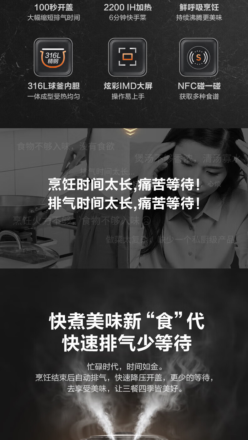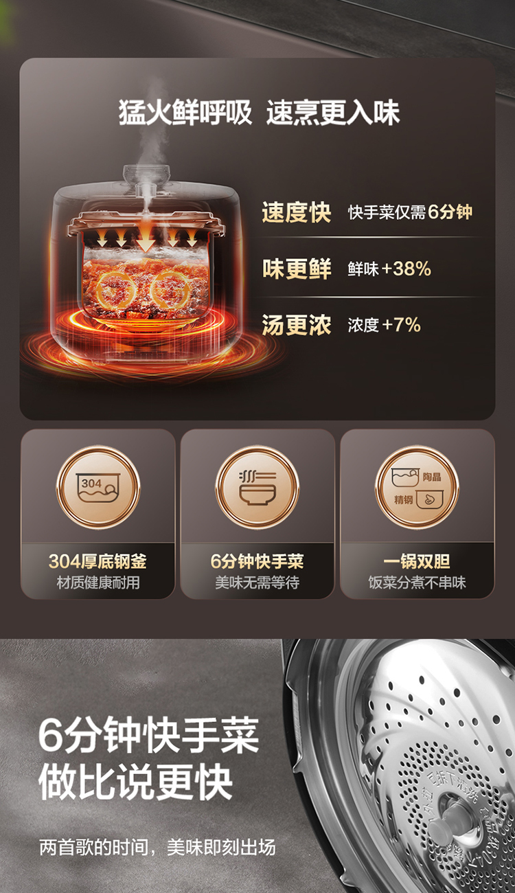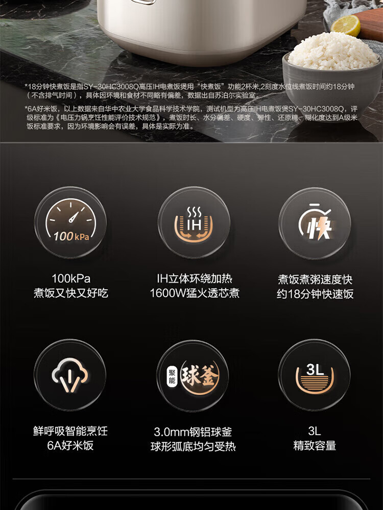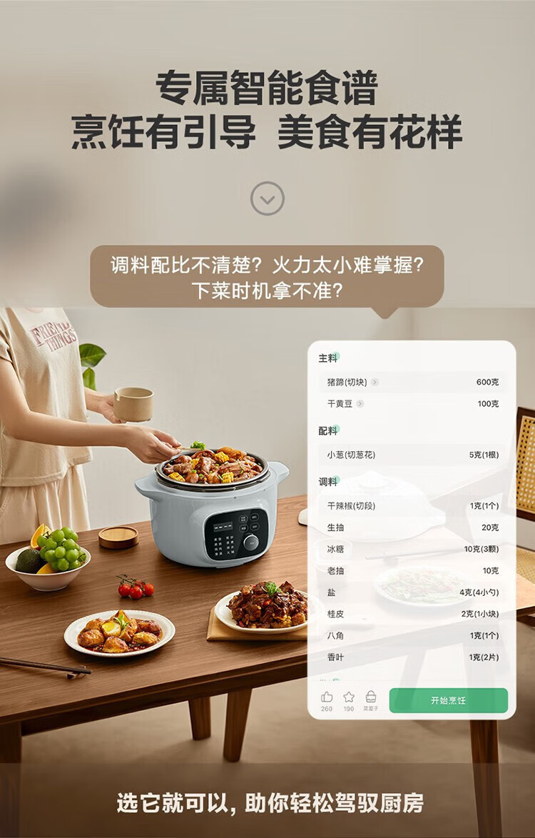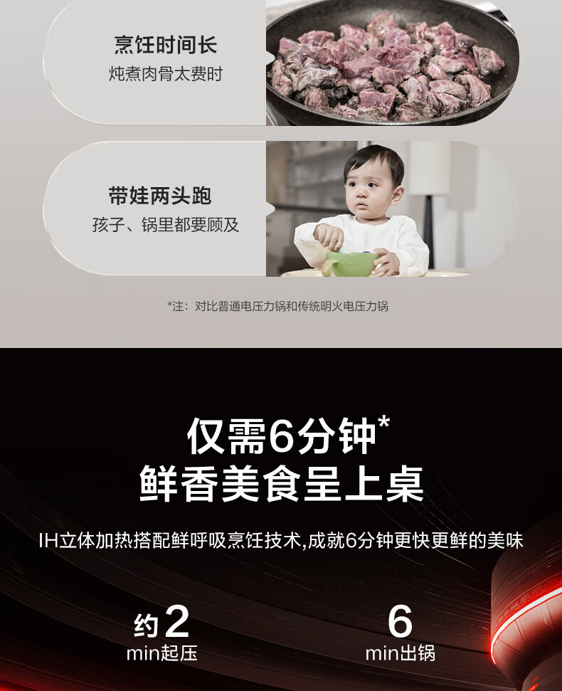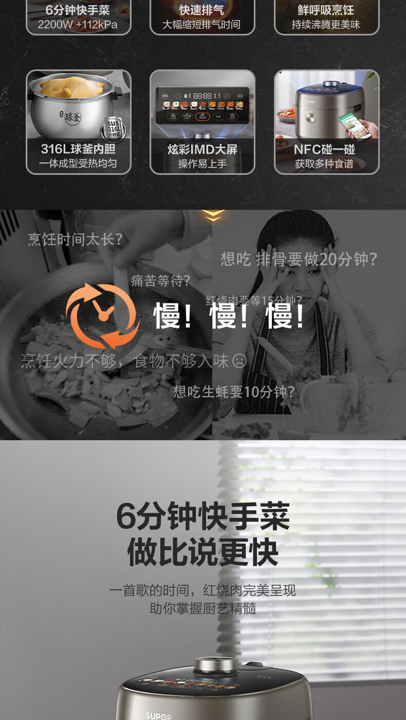苏泊尔(SUPOR)电压力锅精控火候美味烹饪家用全自动智能预约压力锅快速脱骨迷你1-3-8人电饭煲煲汤易清洁 SY-50FH65 5L