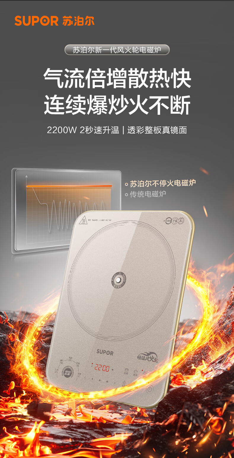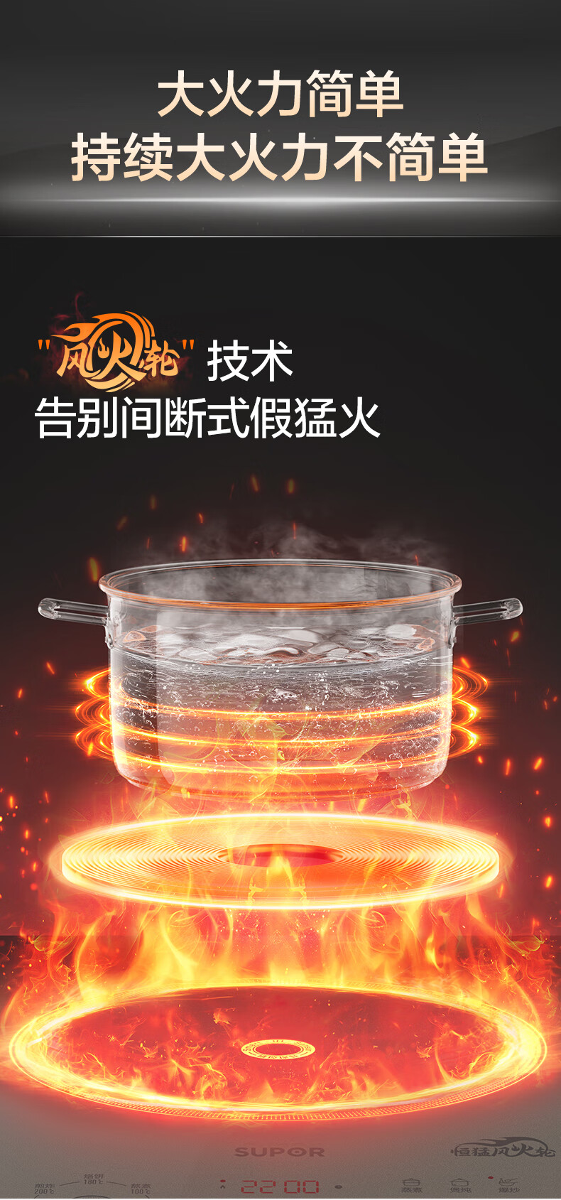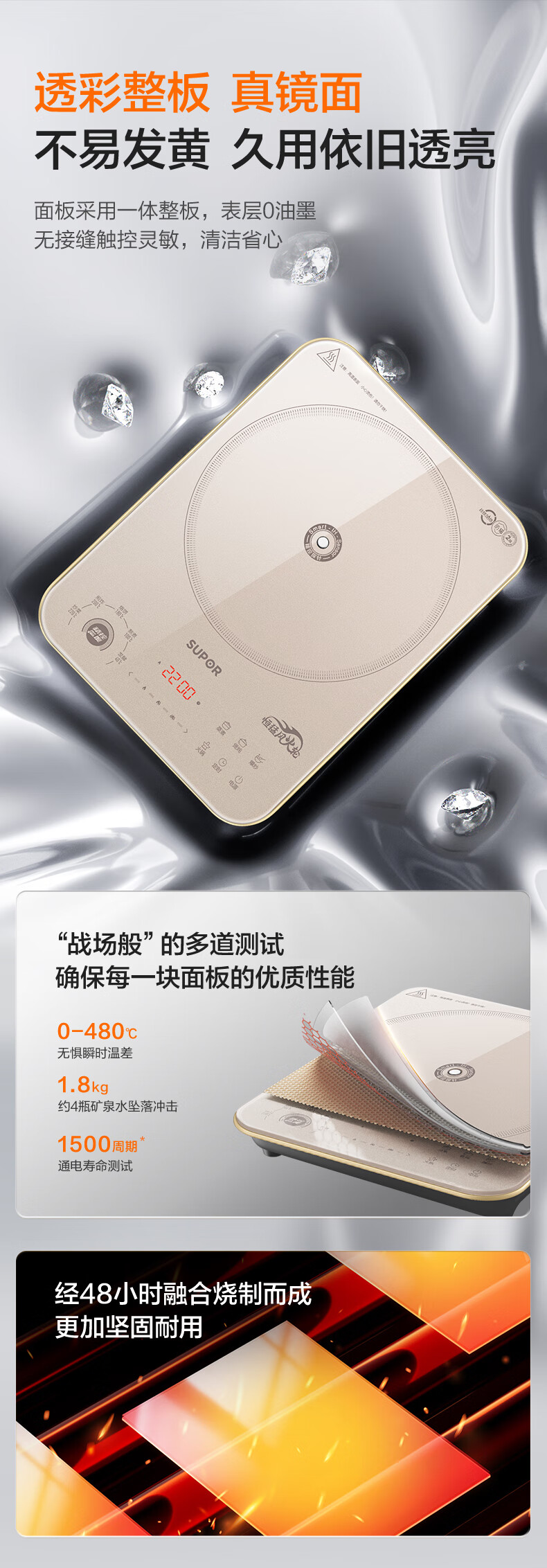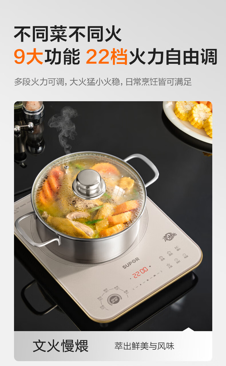 苏泊尔(SUPOR)电磁炉电磁灶2200W超薄浅钛金套装带锅电磁炉 C22-IA10
