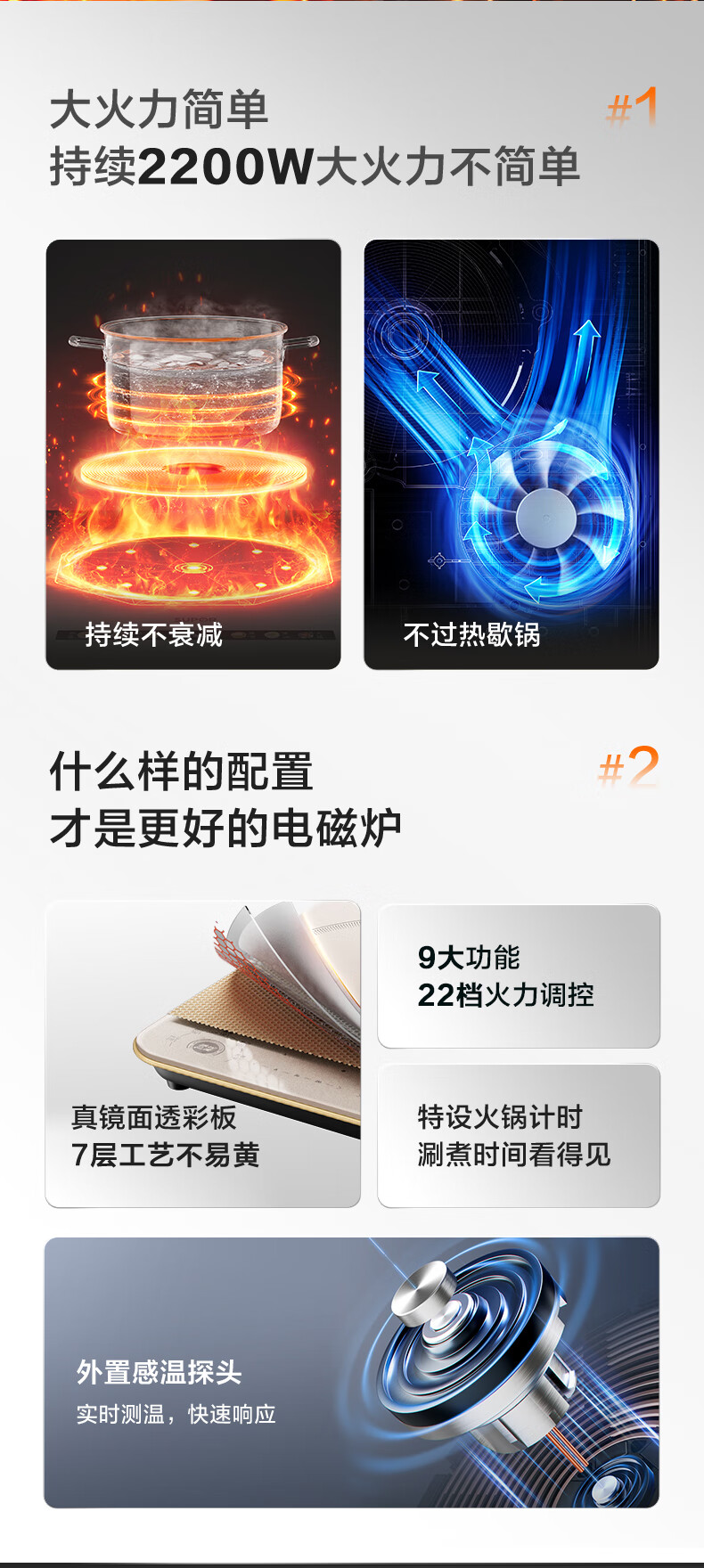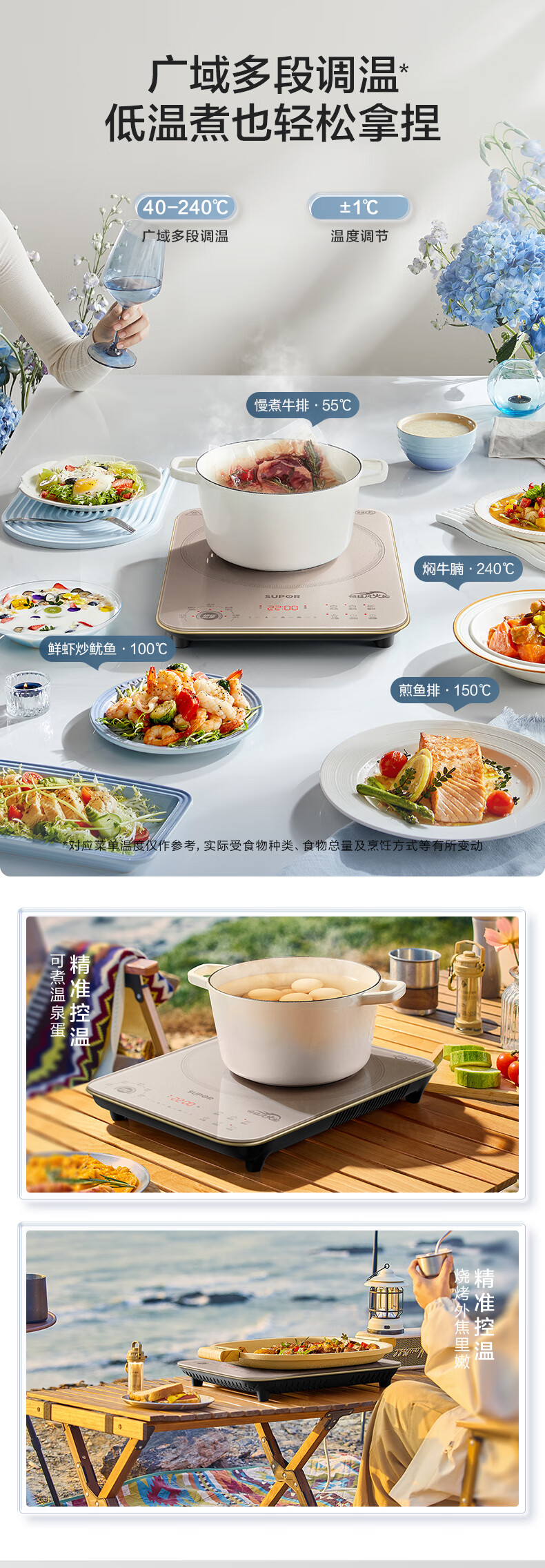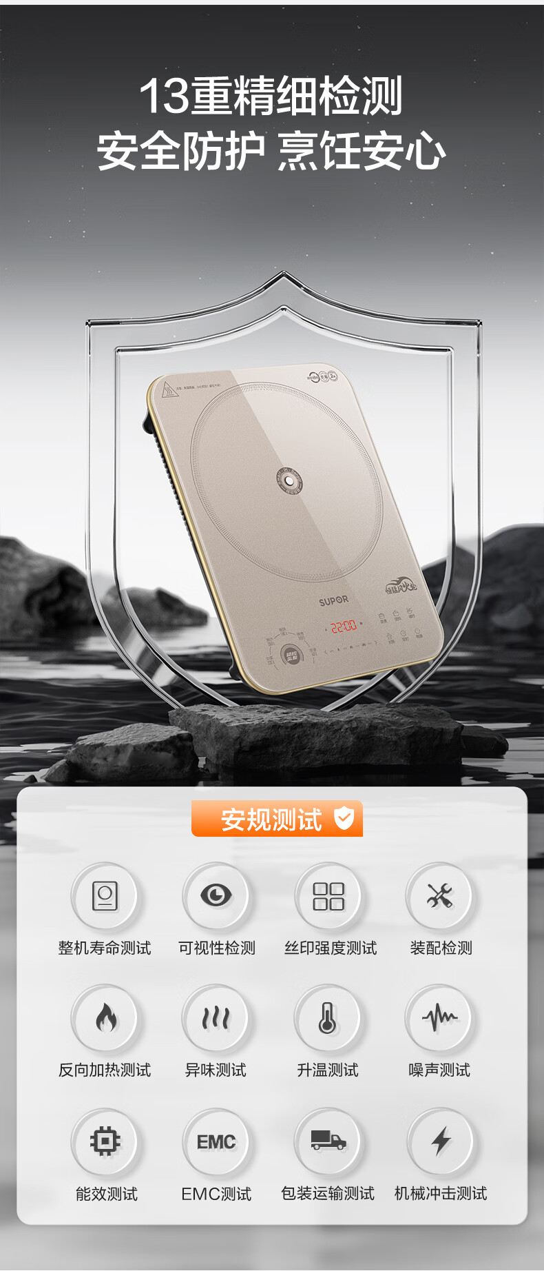 苏泊尔(SUPOR)电磁炉电磁灶2200W超薄浅钛金套装带锅电磁炉 C22-IA10