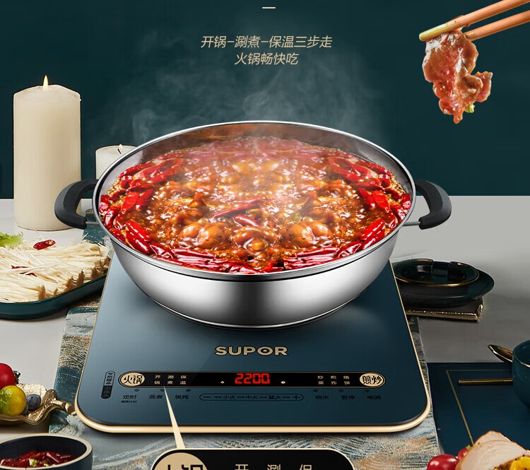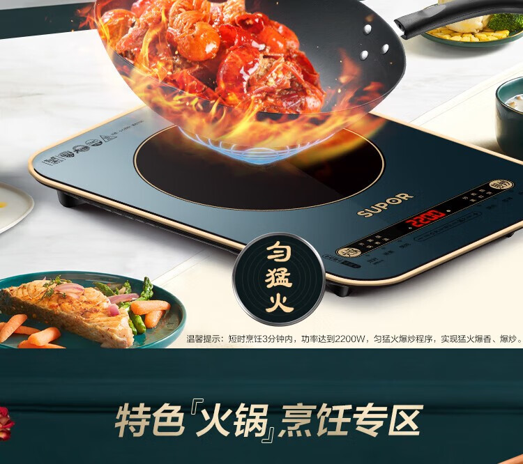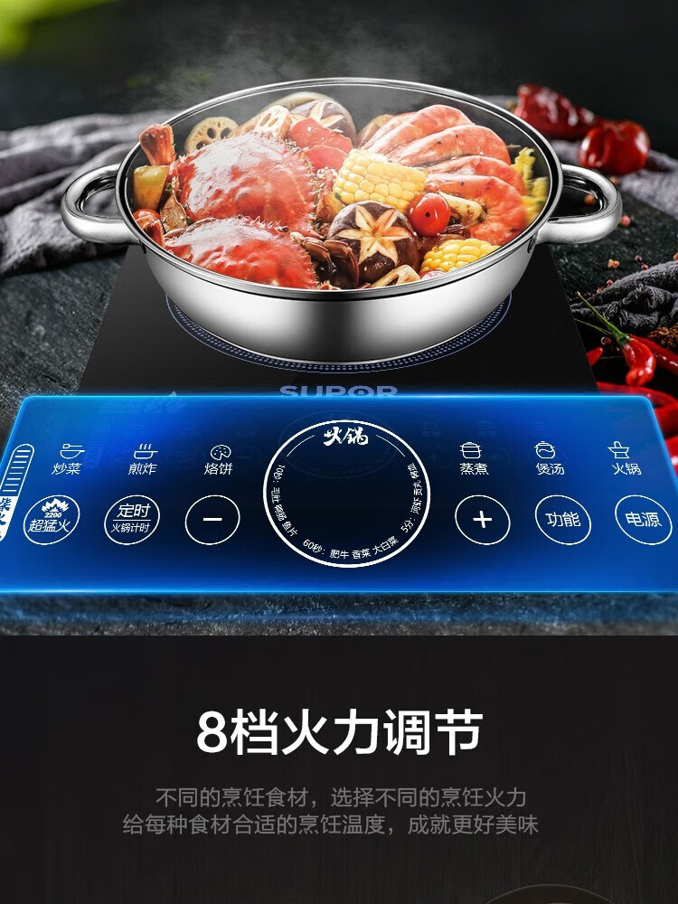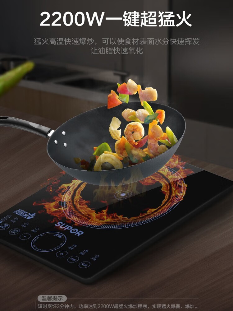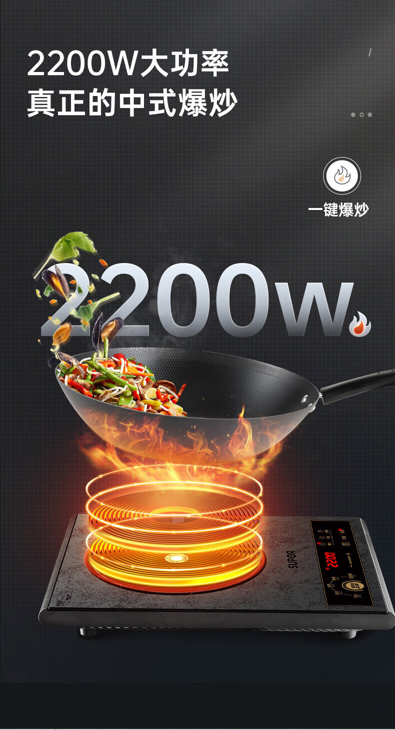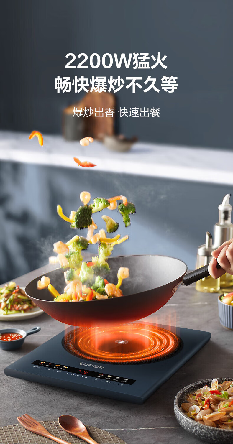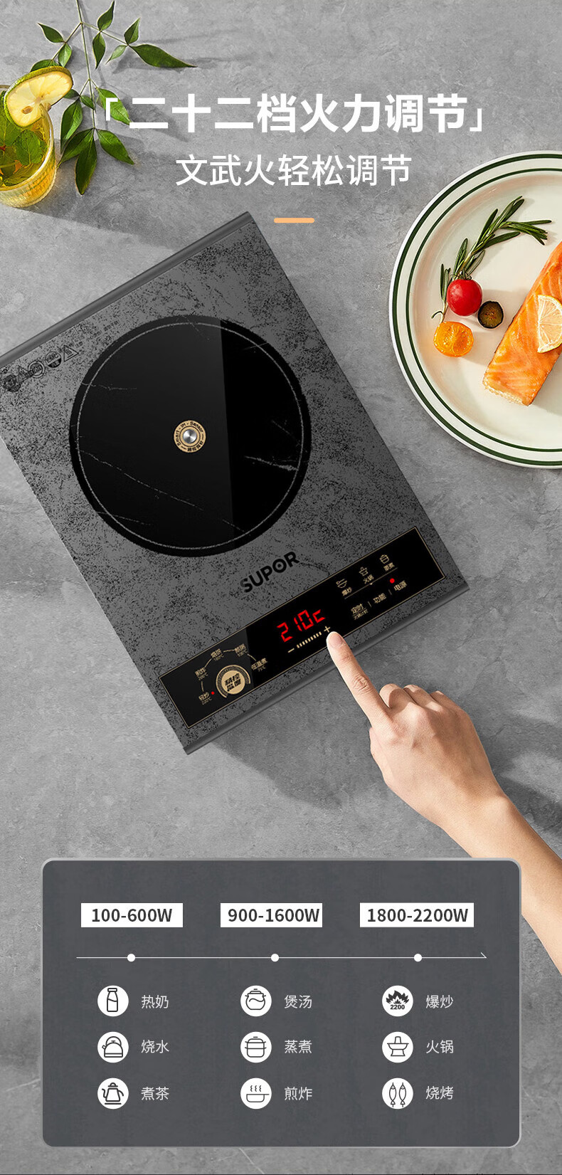 苏泊尔电磁炉家用猛火滑控调节火锅炉微晶面板大功率灶一键爆炒智能定时 C22-IA08【配汤锅】2200W