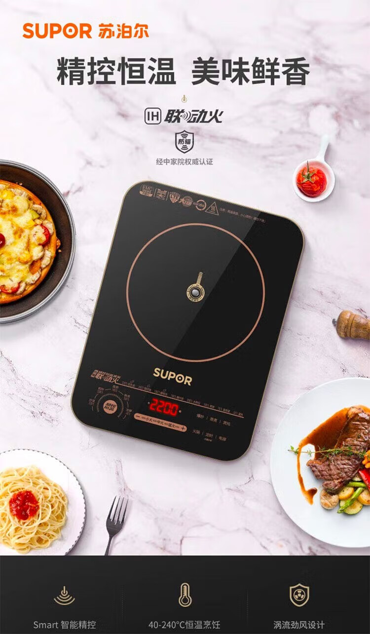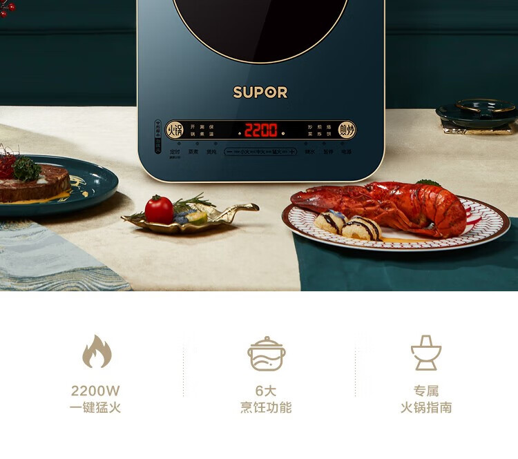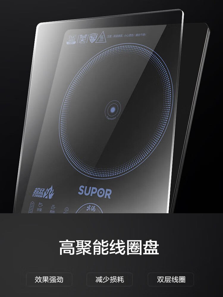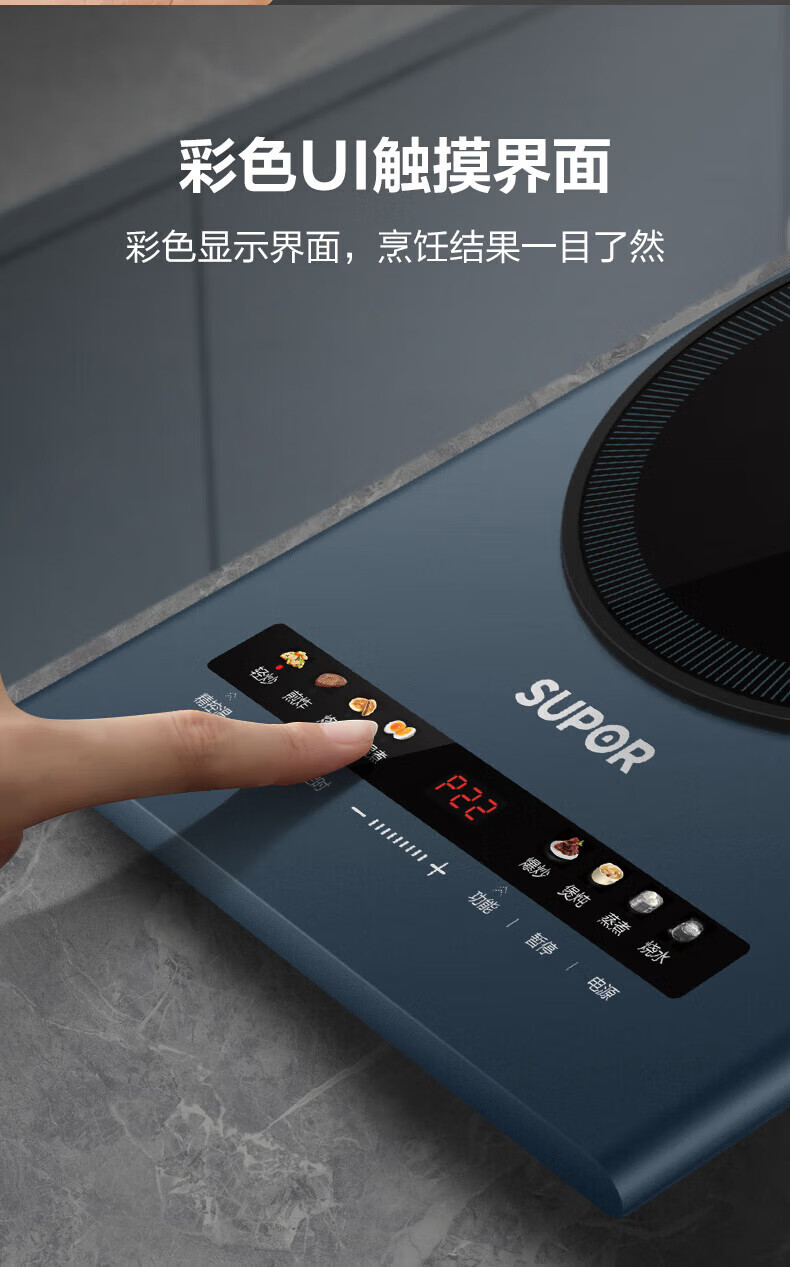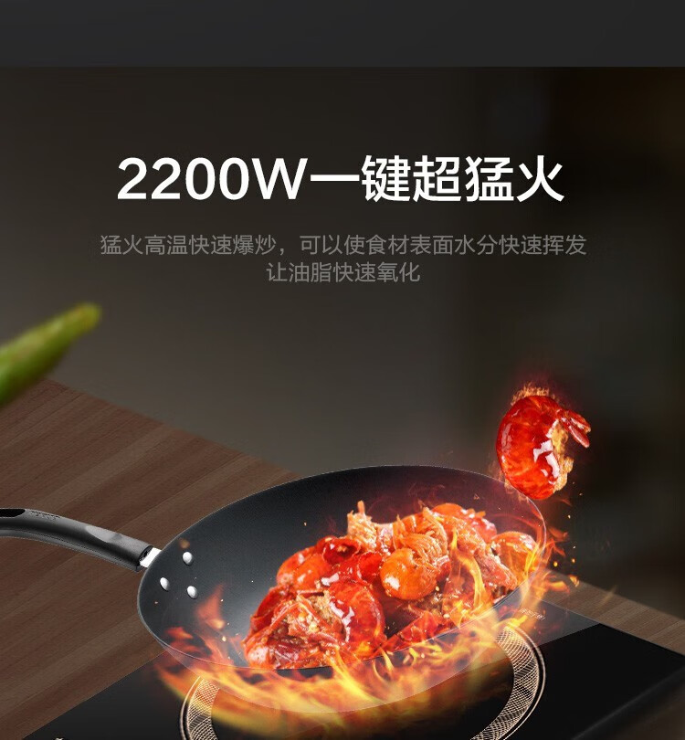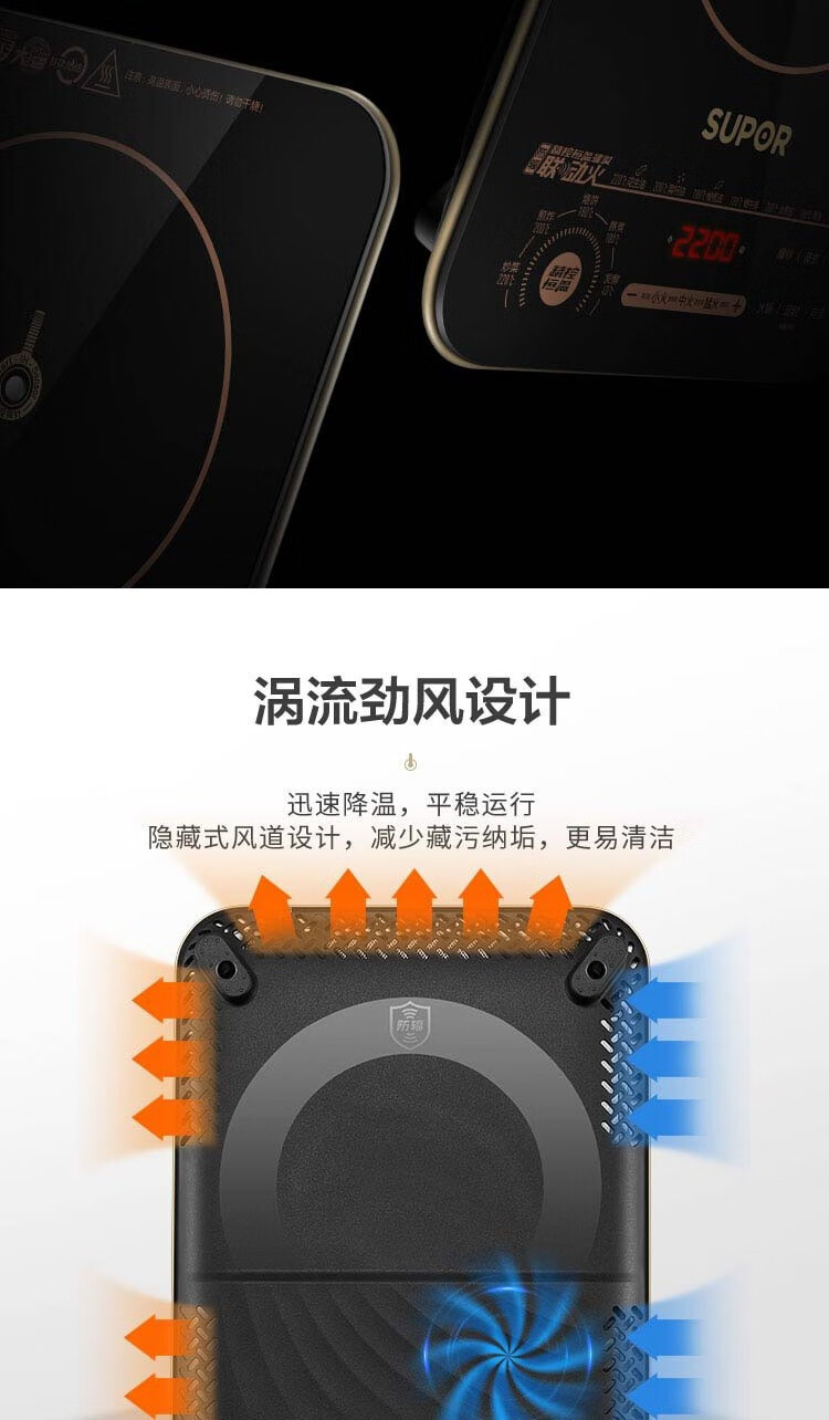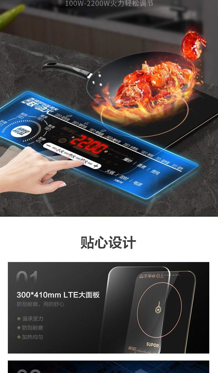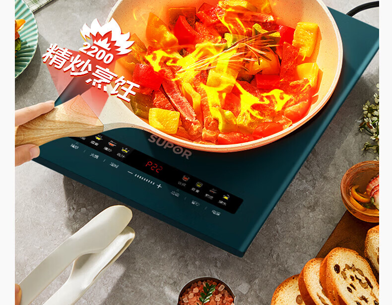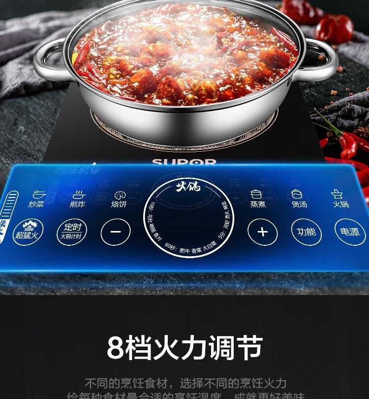苏泊尔电磁炉家用猛火滑控调节火锅炉微晶面板大功率灶一键爆炒智能定时 C22-IA08【配汤锅】2200W