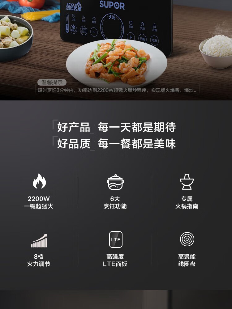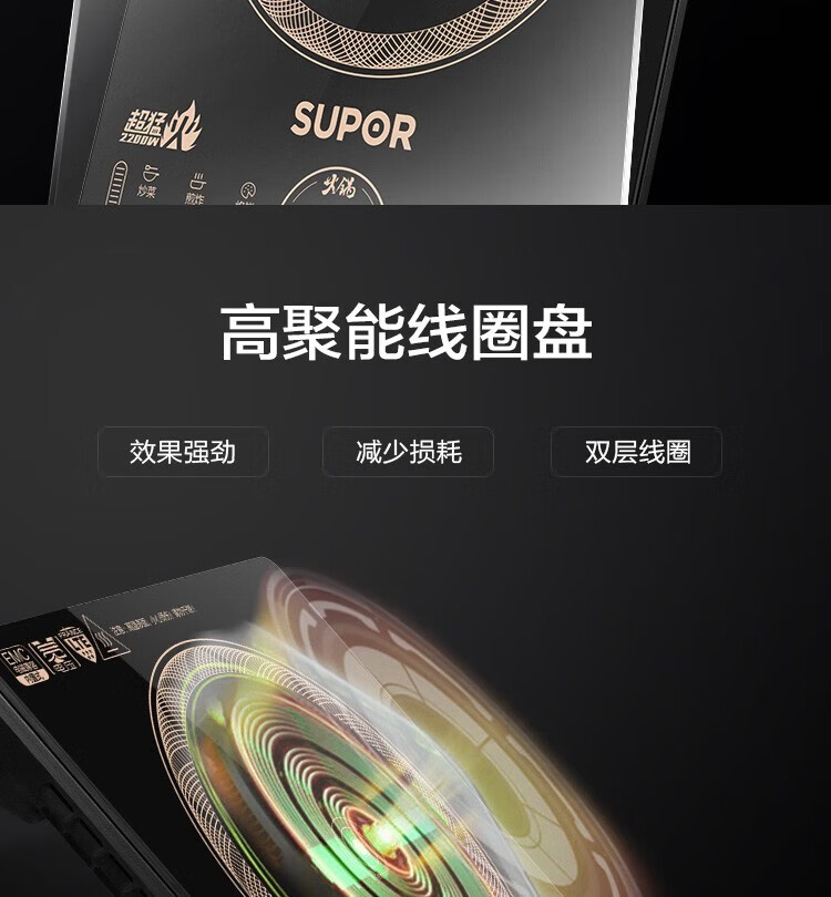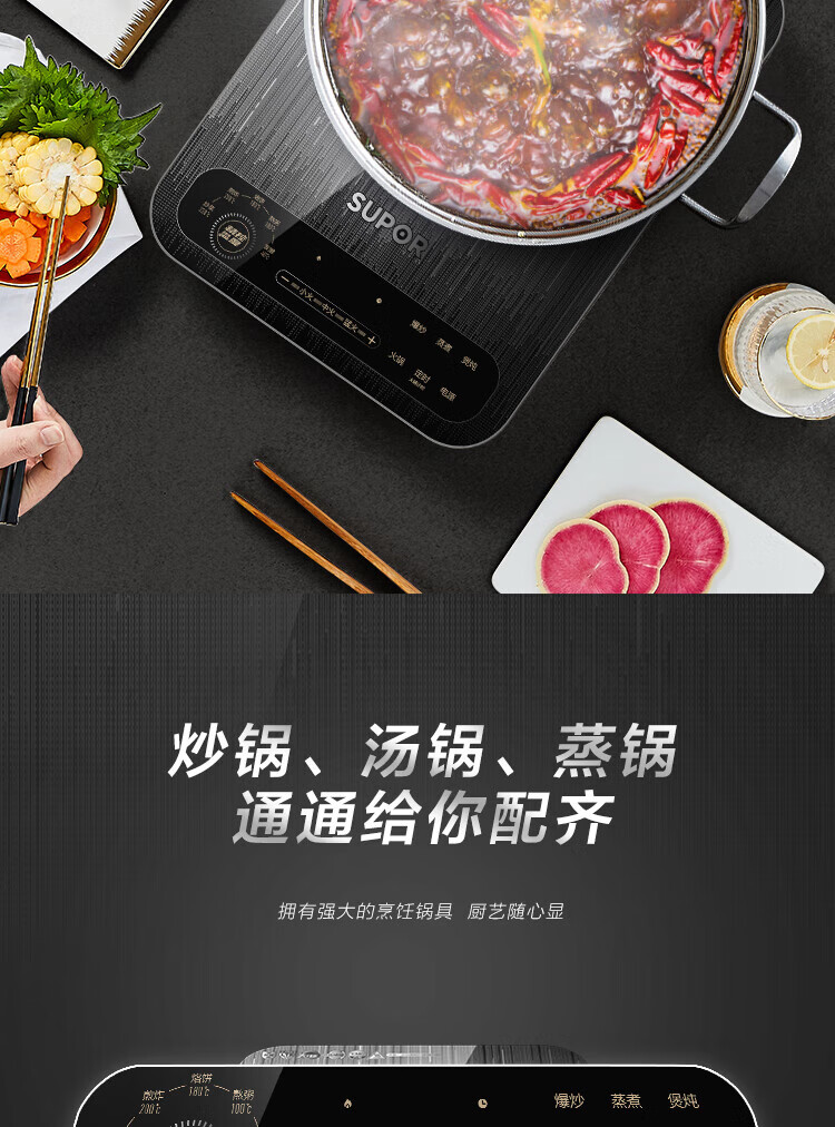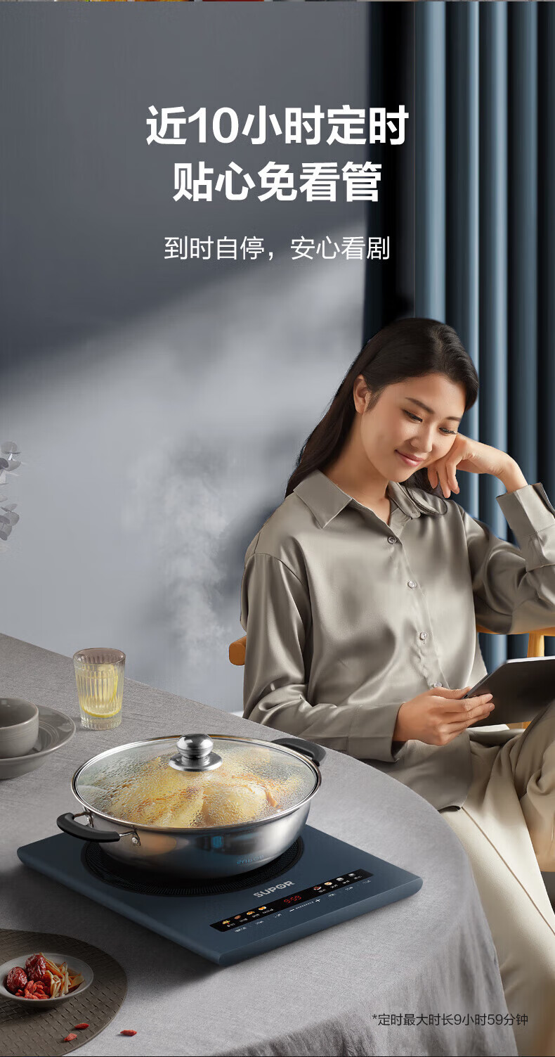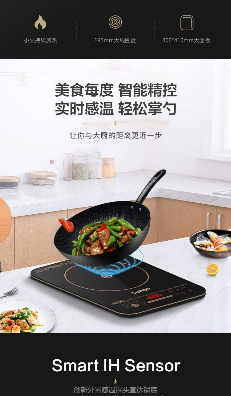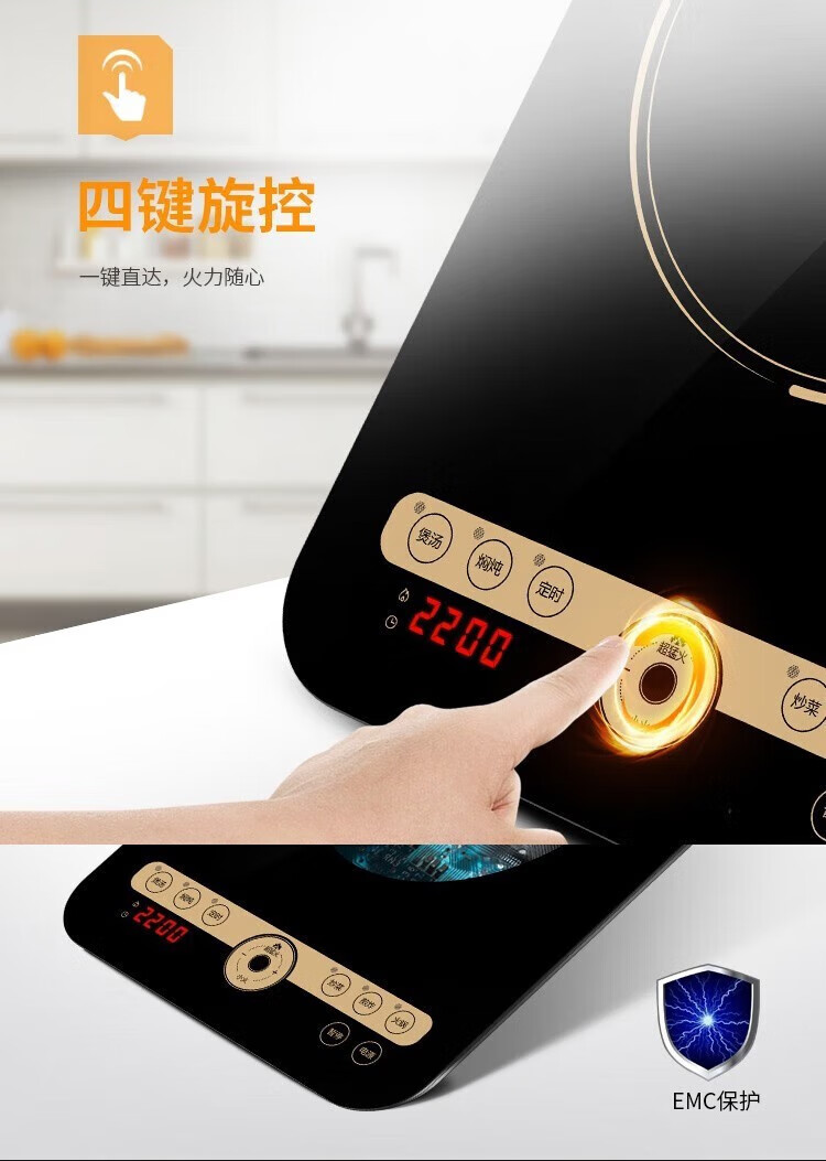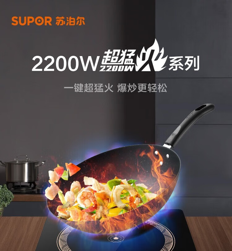 苏泊尔电磁炉家用猛火滑控调节火锅炉微晶面板大功率灶一键爆炒智能定时 C22-IA08【配汤锅】2200W
