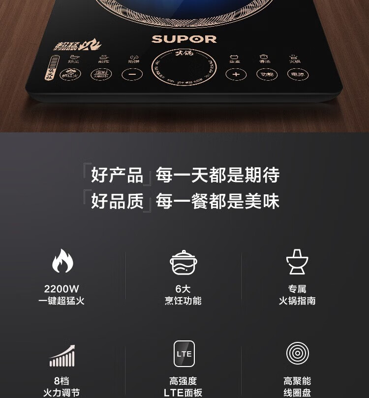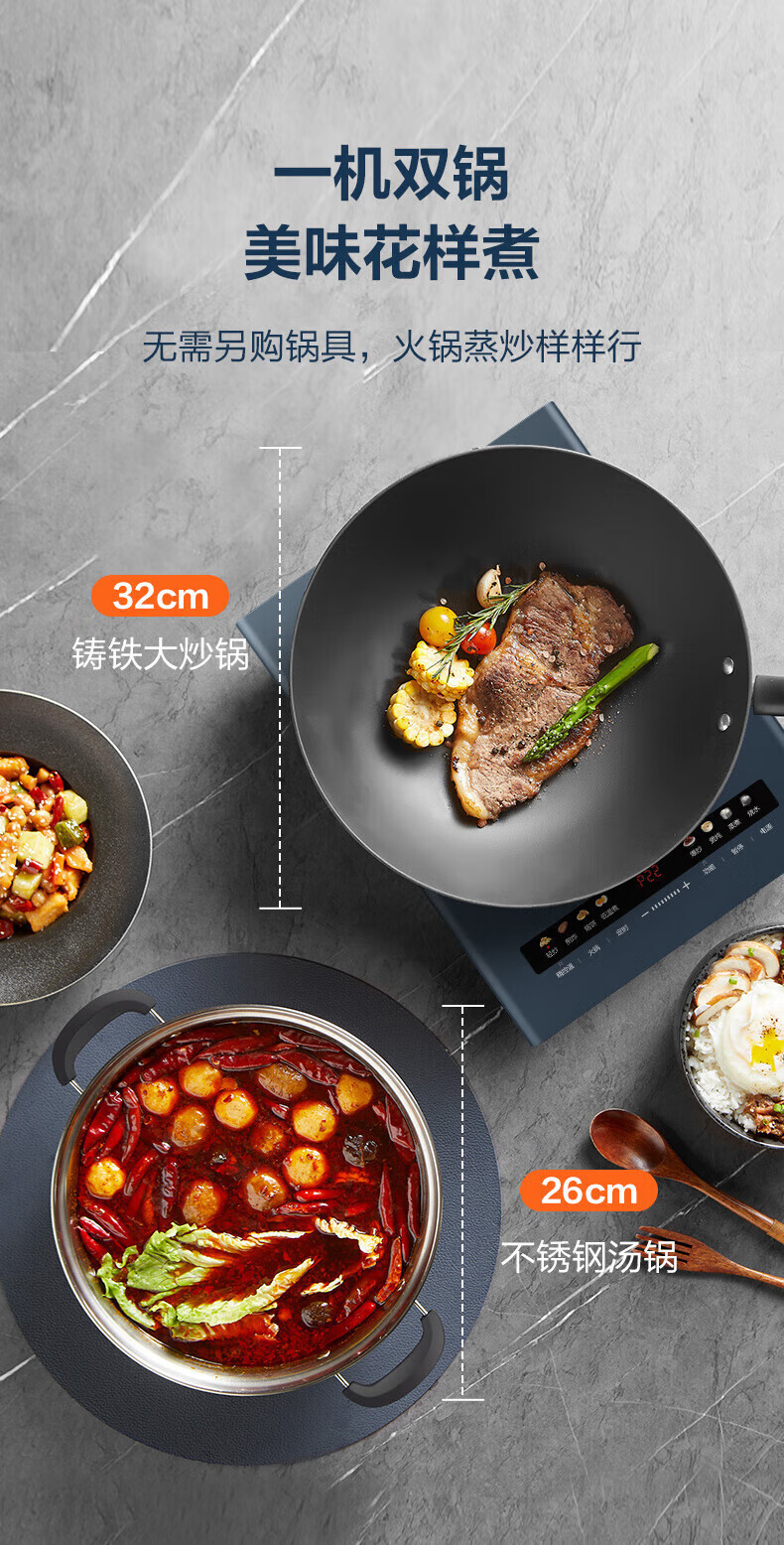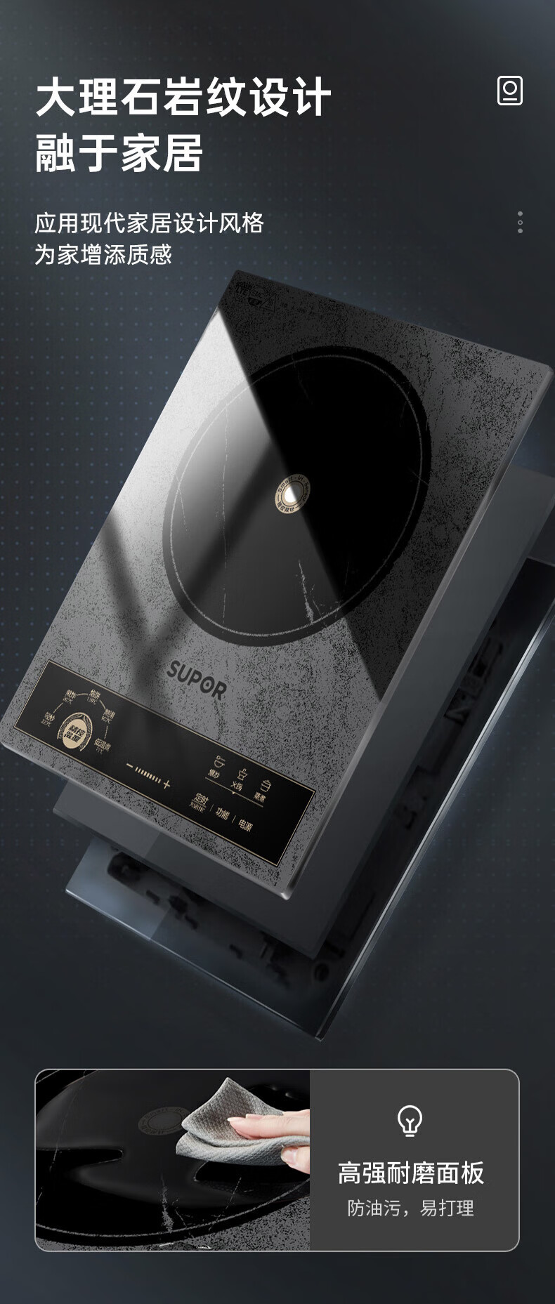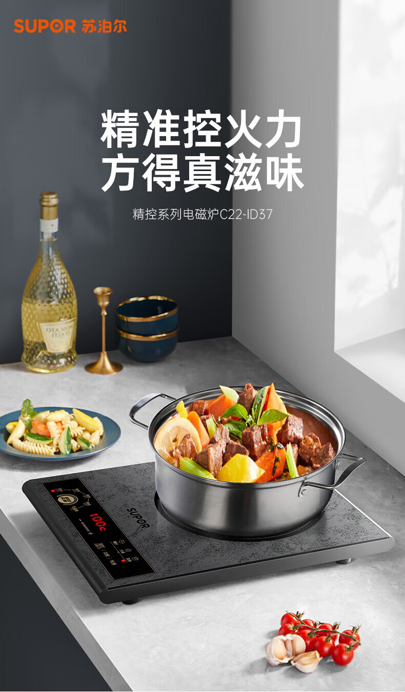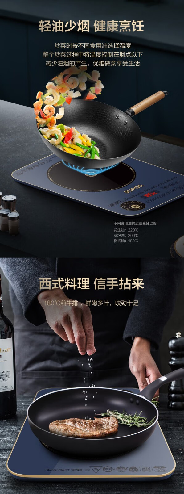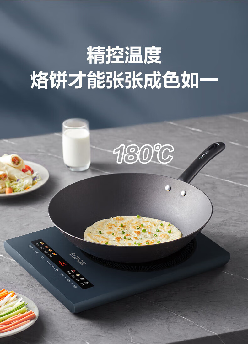 苏泊尔电磁炉家用猛火滑控调节火锅炉微晶面板大功率灶一键爆炒智能定时 C22-IA08【配汤锅】2200W
