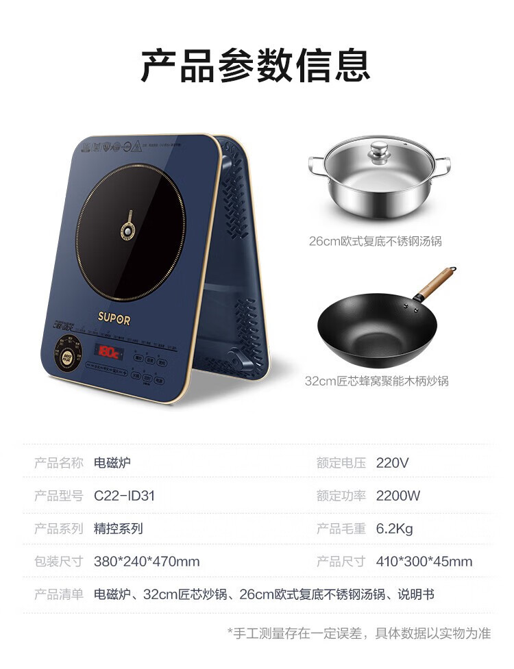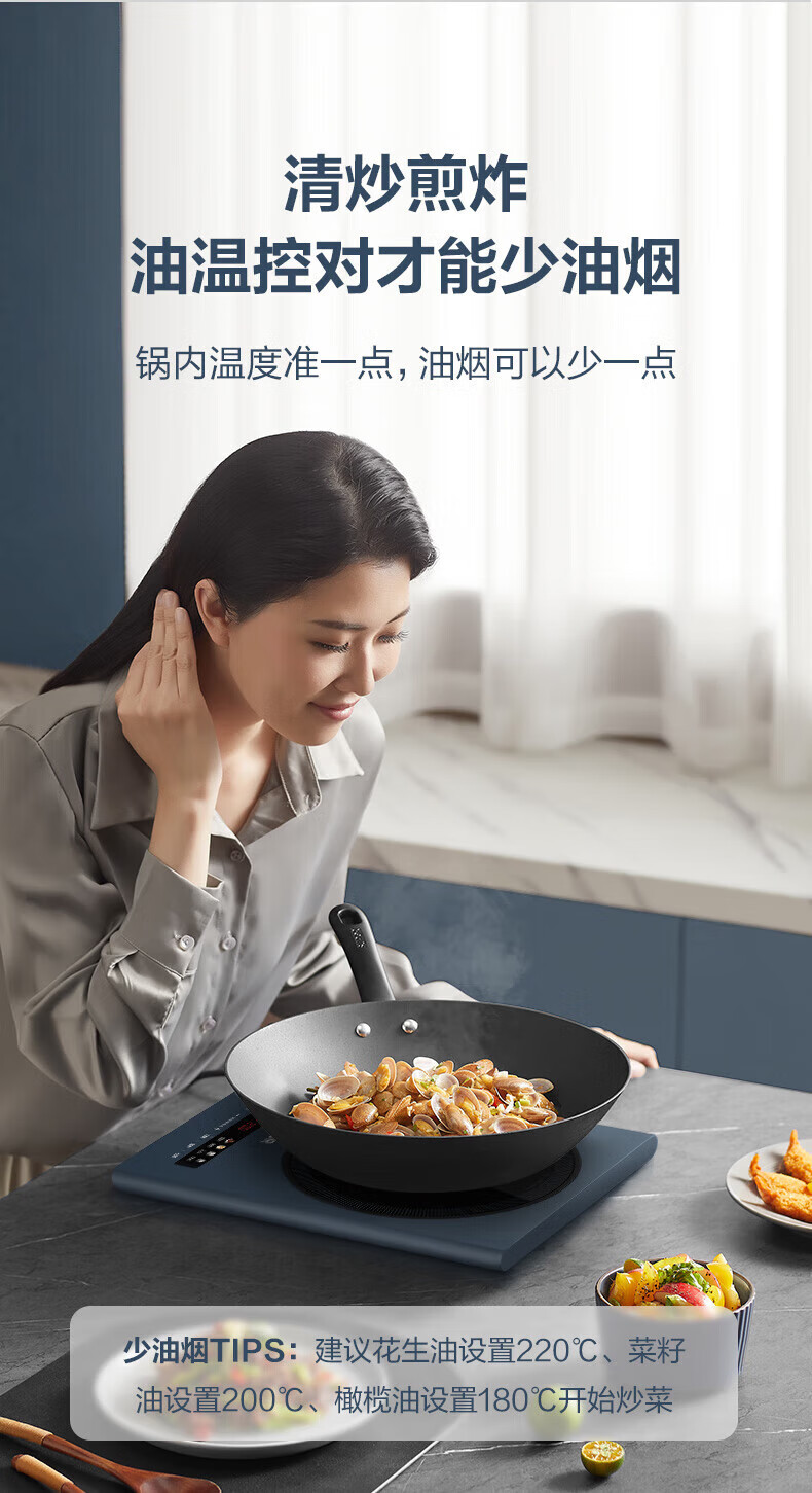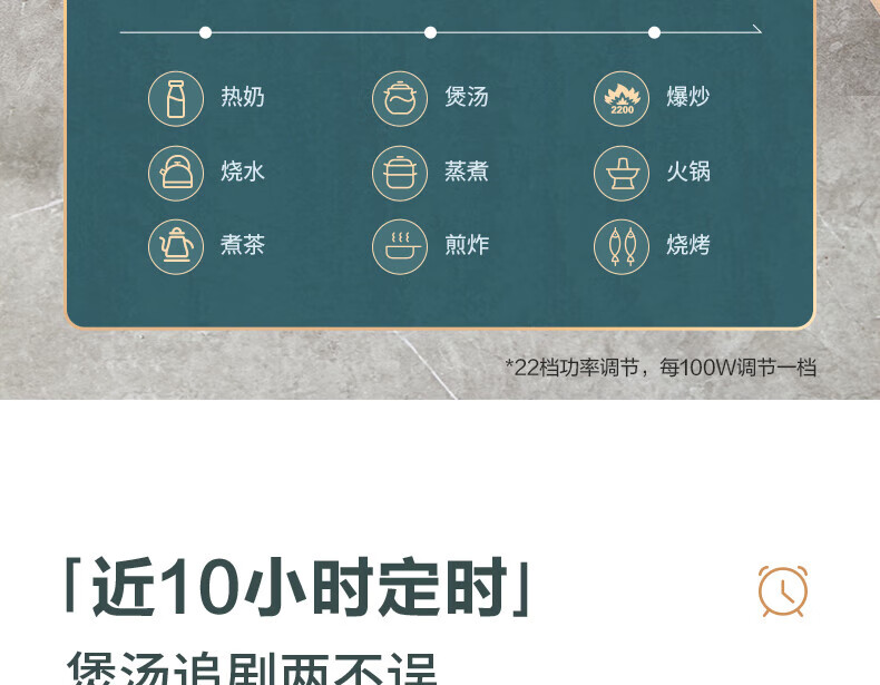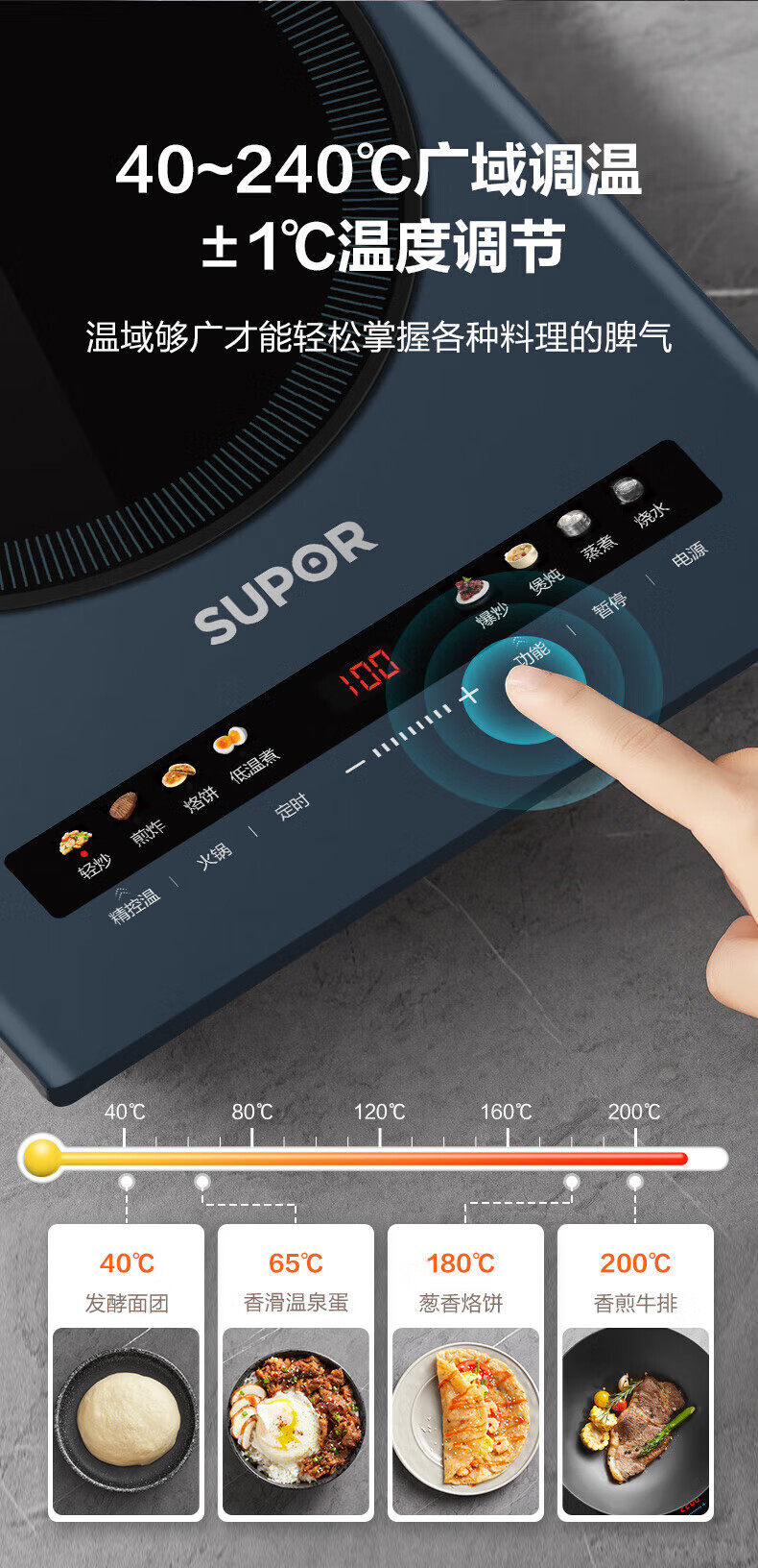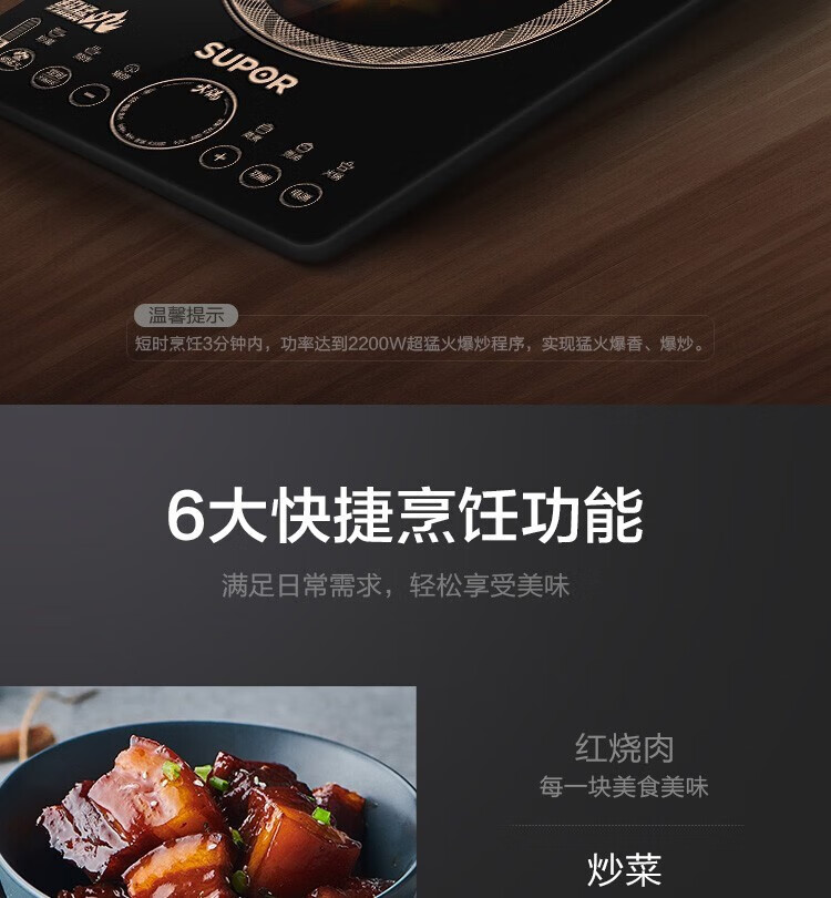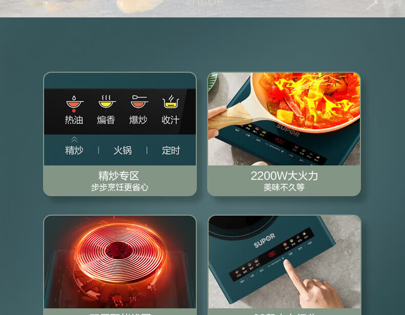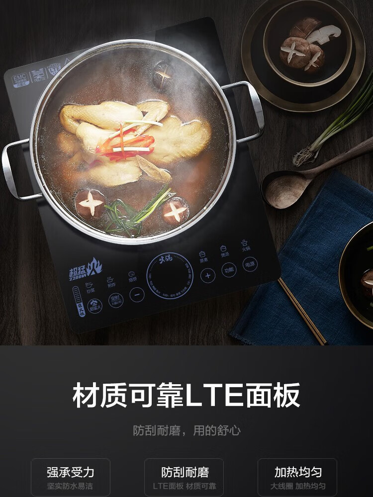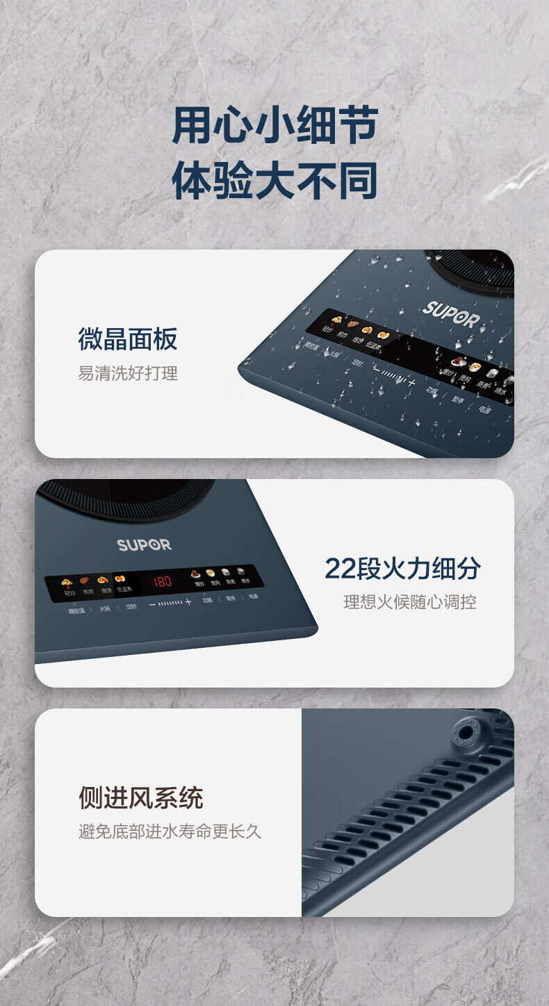 苏泊尔电磁炉家用猛火滑控调节火锅炉微晶面板大功率灶一键爆炒智能定时 C22-IA08【配汤锅】2200W
