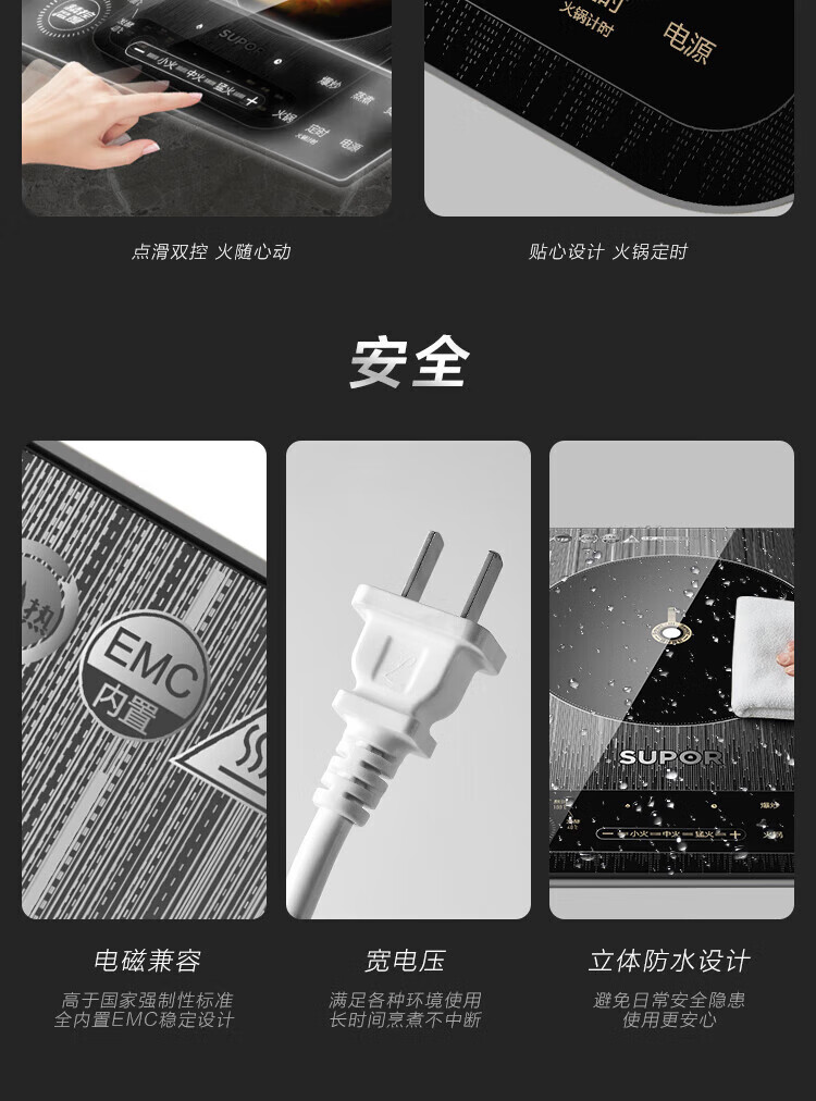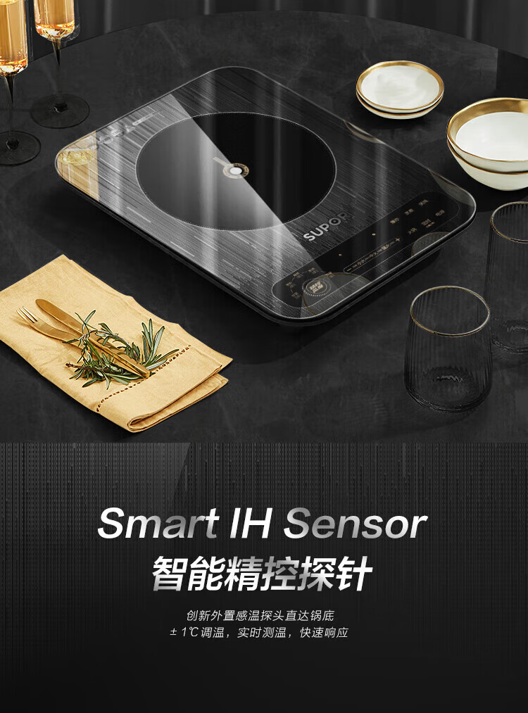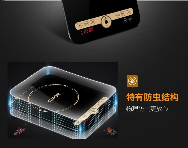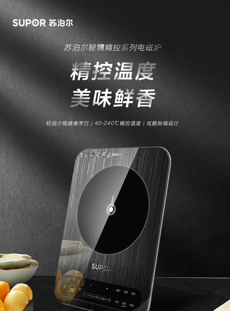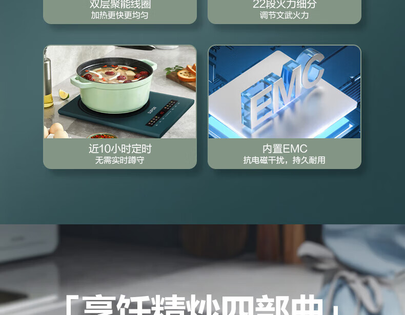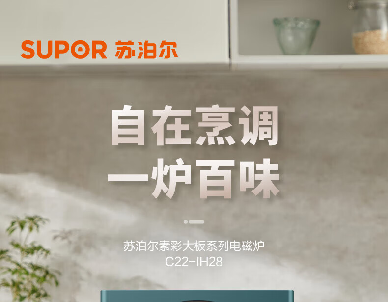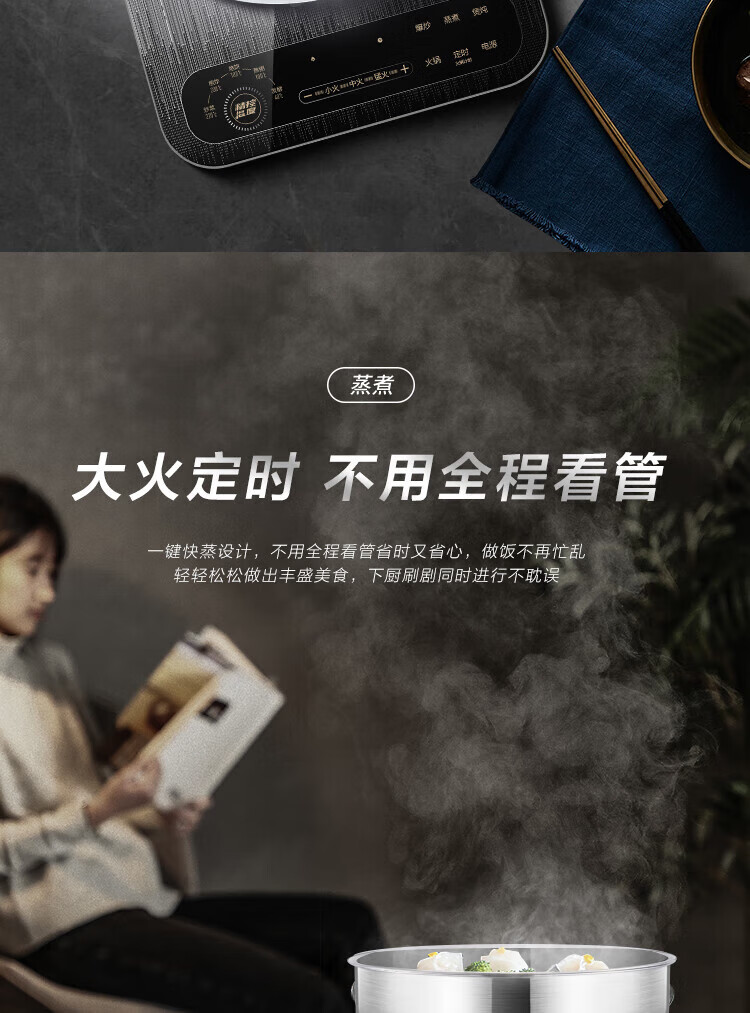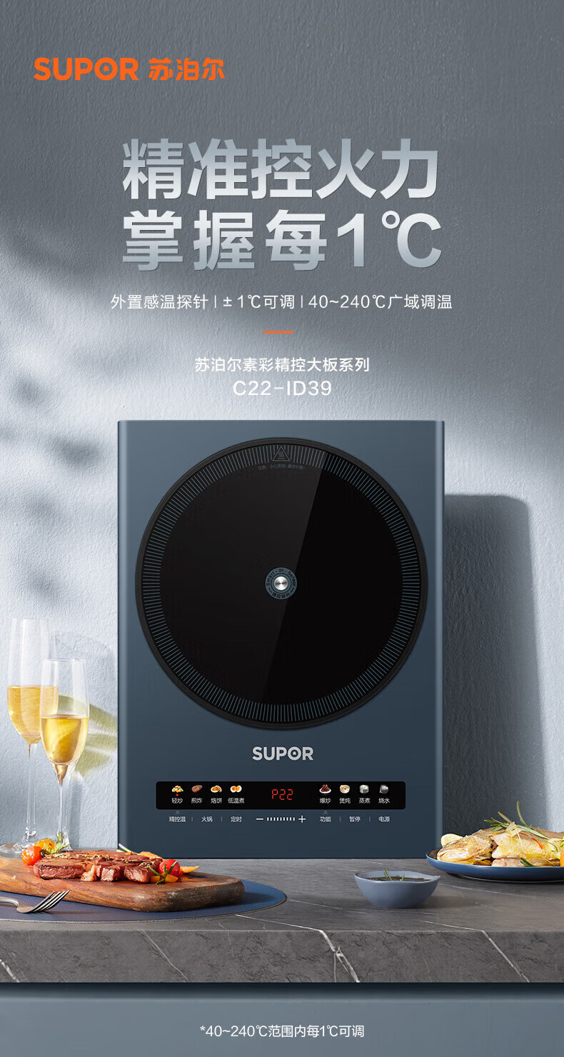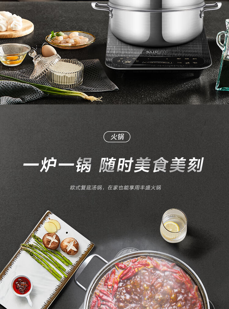 苏泊尔电磁炉家用猛火滑控调节火锅炉微晶面板大功率灶一键爆炒智能定时 C22-IA08【配汤锅】2200W