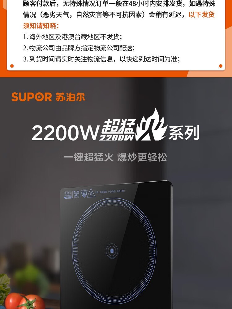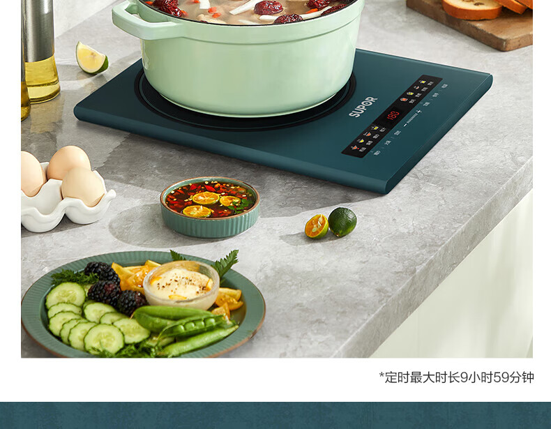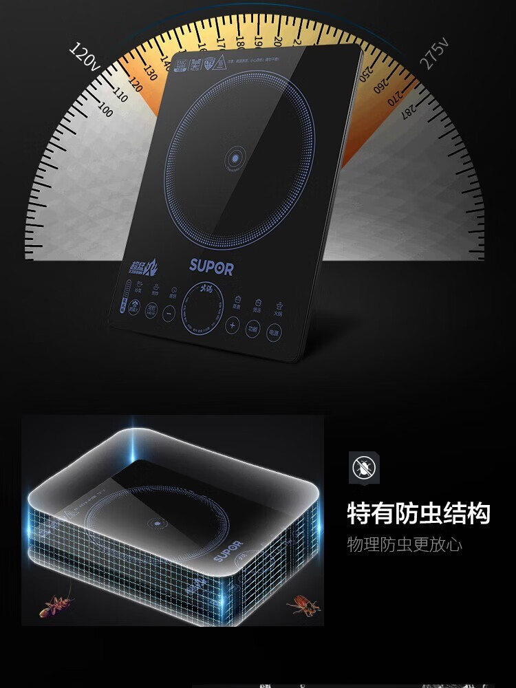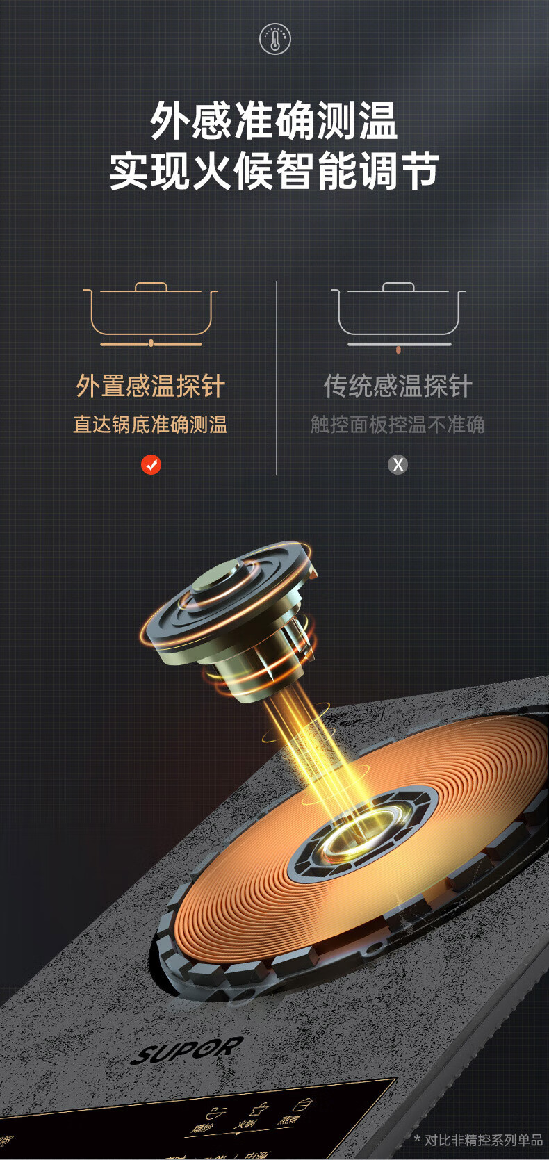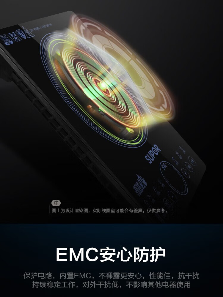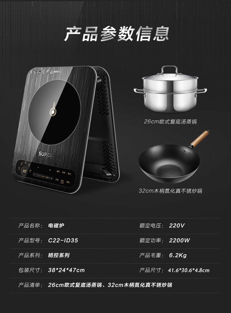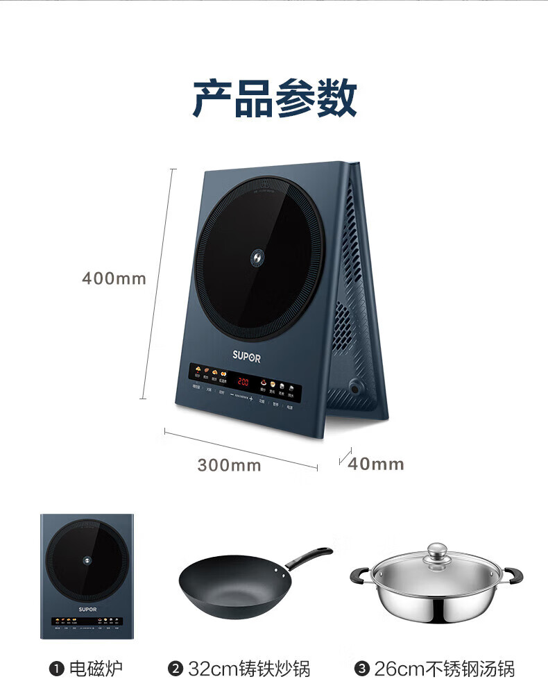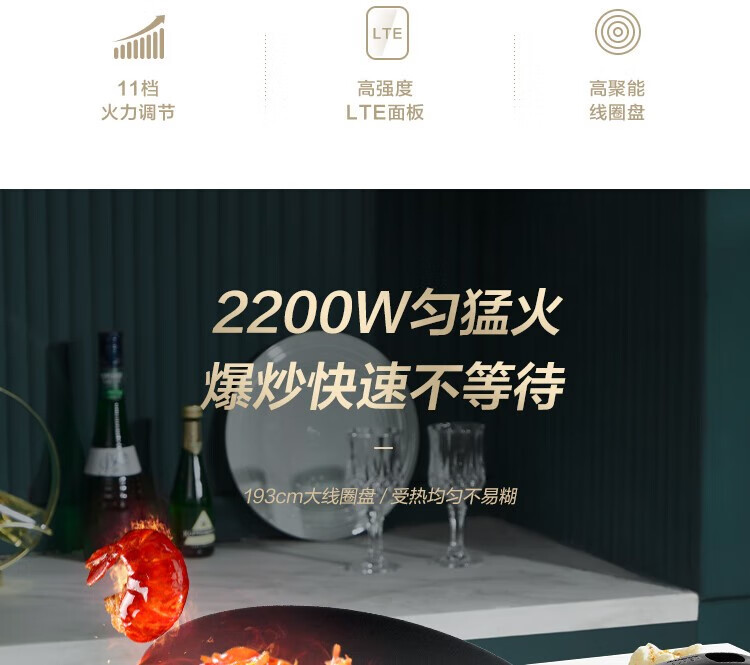 苏泊尔电磁炉家用猛火滑控调节火锅炉微晶面板大功率灶一键爆炒智能定时 C22-IA08【配汤锅】2200W