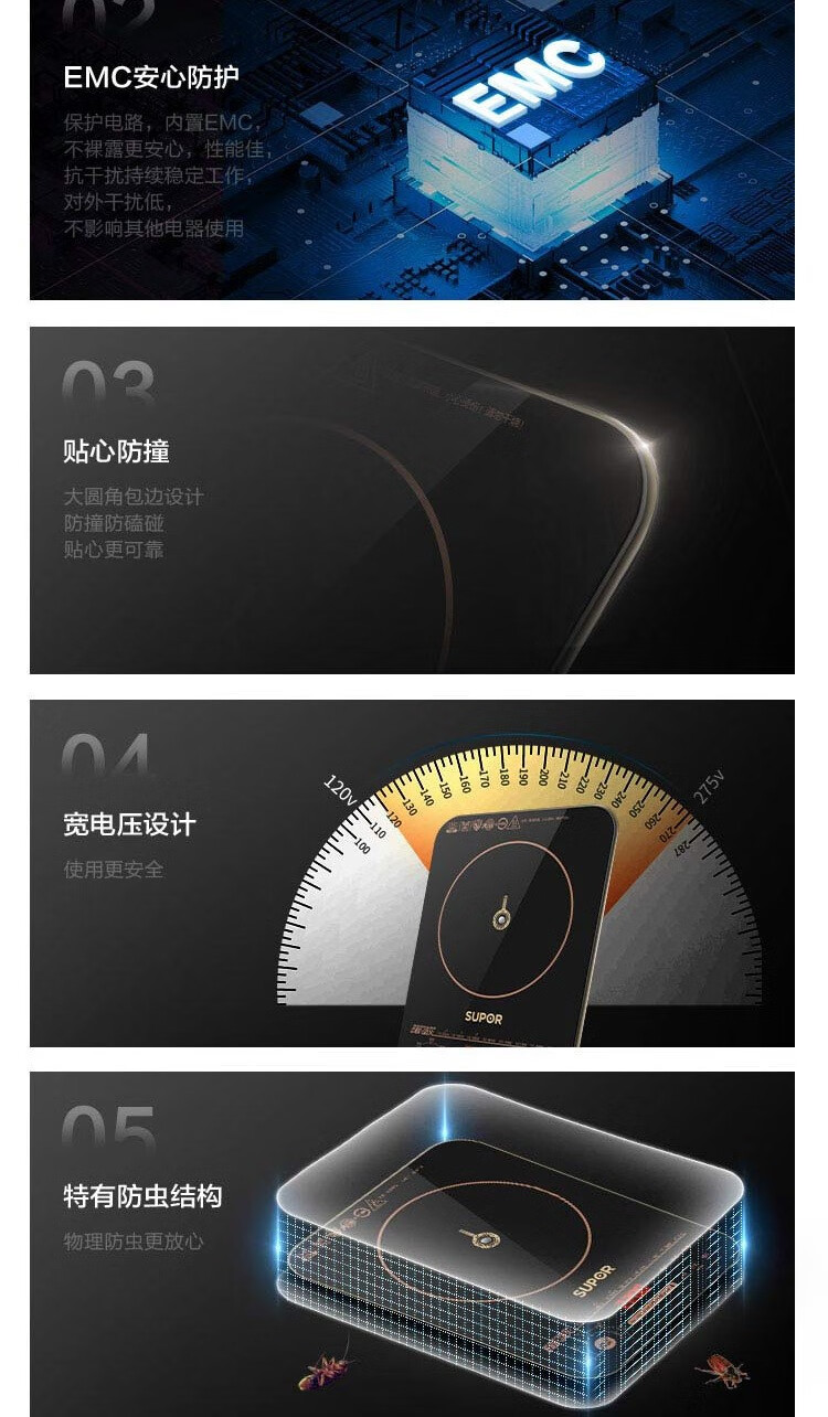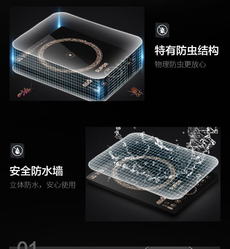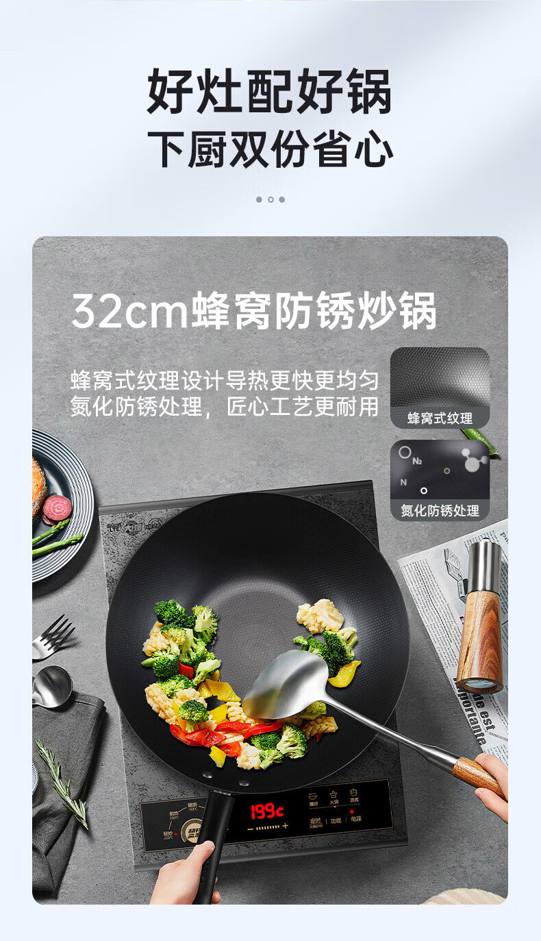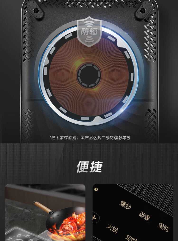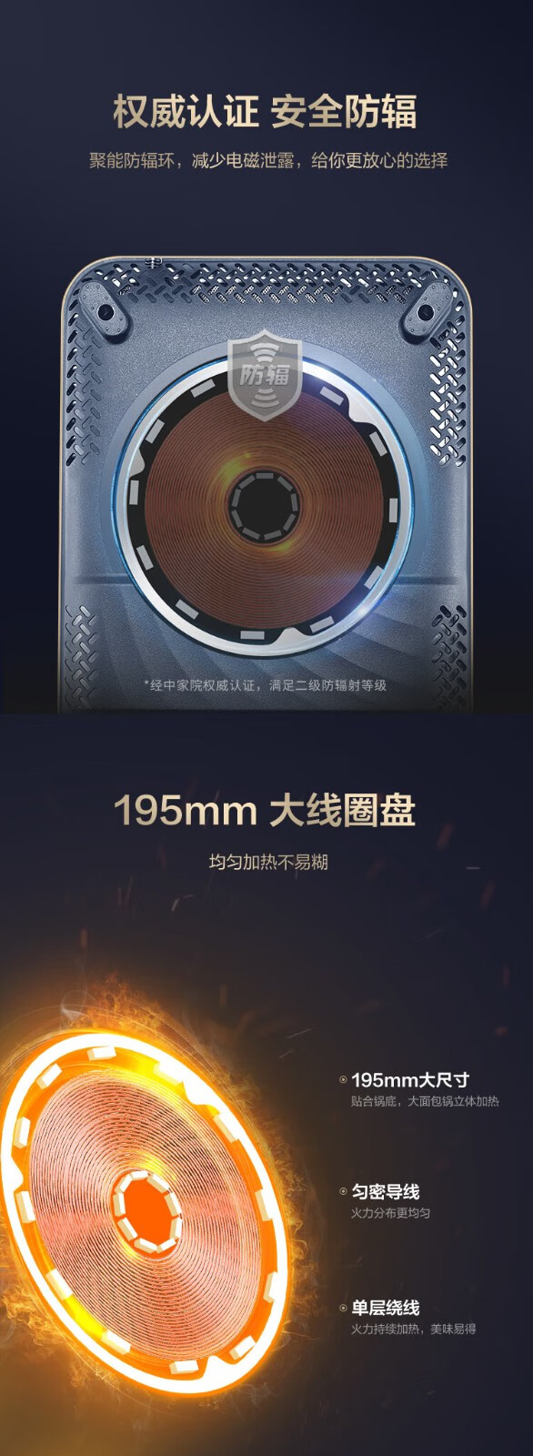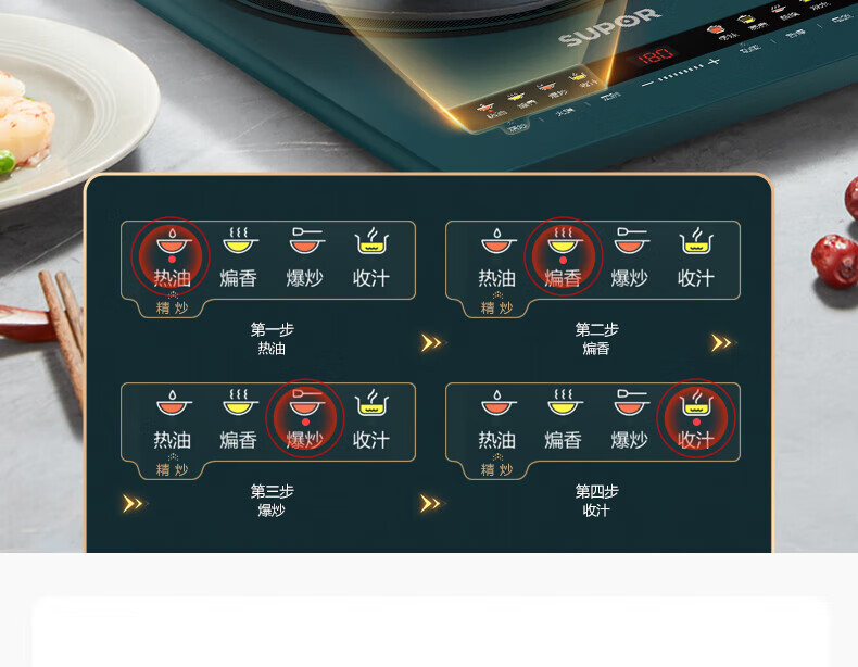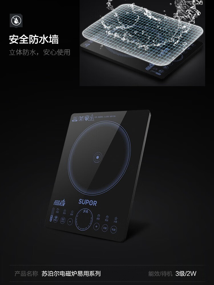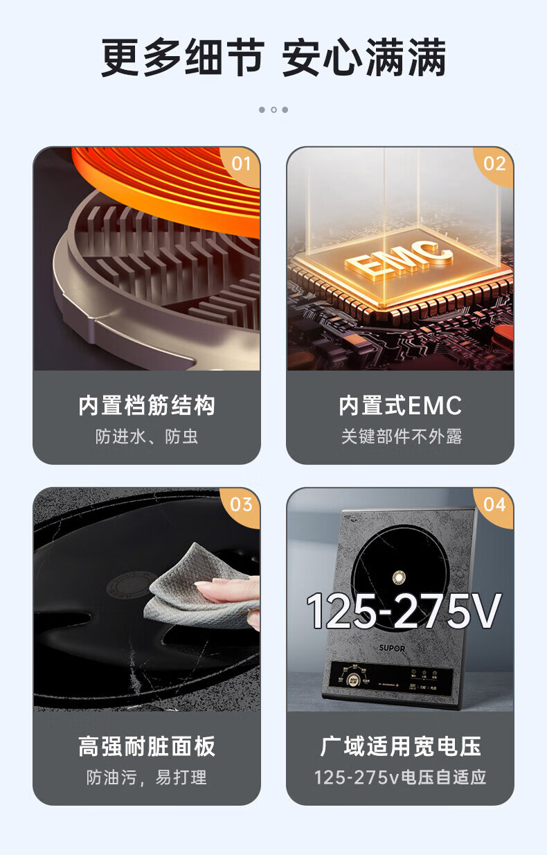 苏泊尔电磁炉家用猛火滑控调节火锅炉微晶面板大功率灶一键爆炒智能定时 C22-IA08【配汤锅】2200W