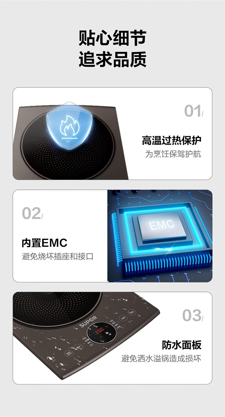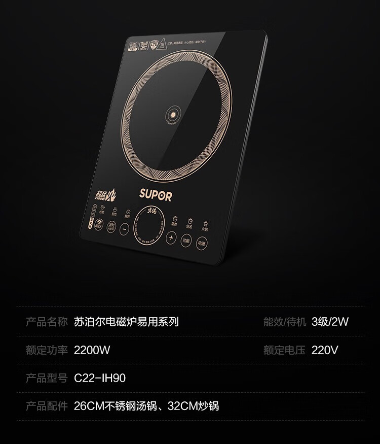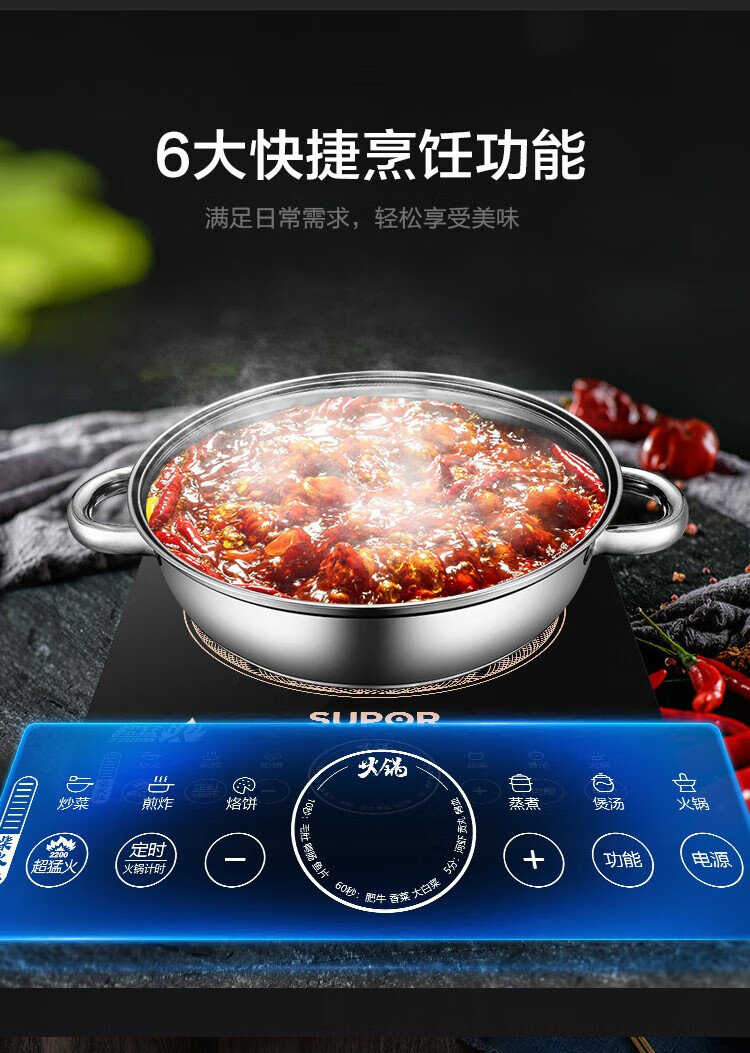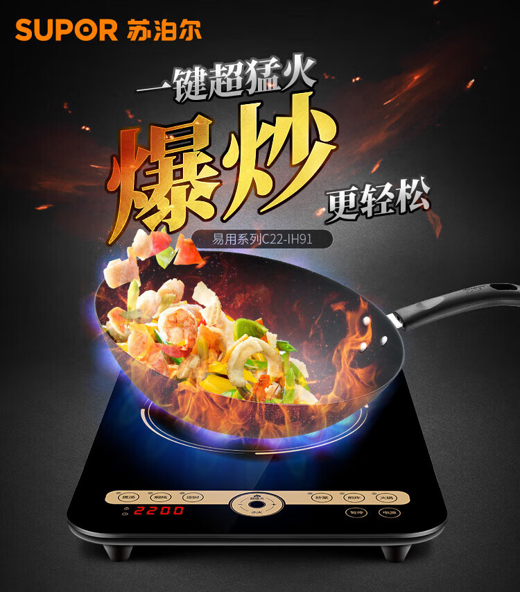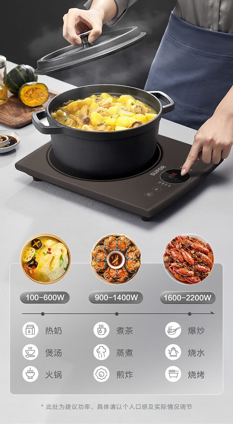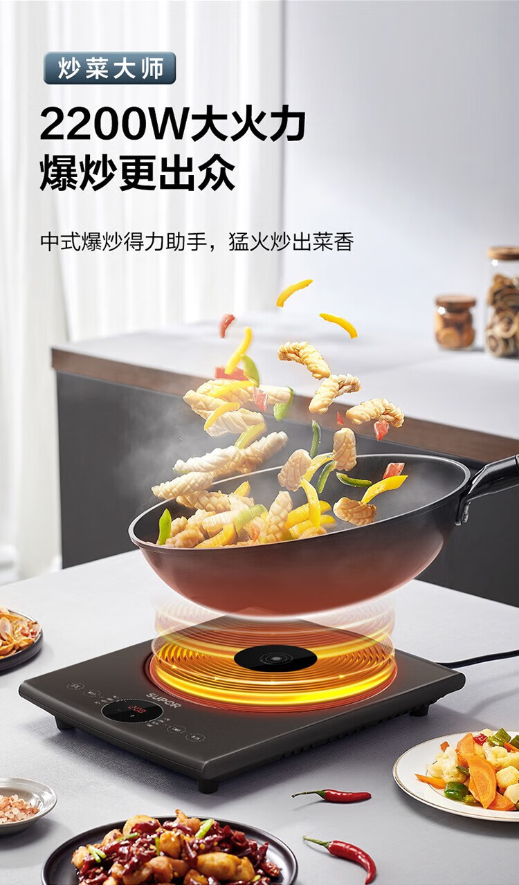 苏泊尔电磁炉智能调节大功率家用猛火多功能节能炒菜锅一体锅商用电磁炉 C22-IA95D