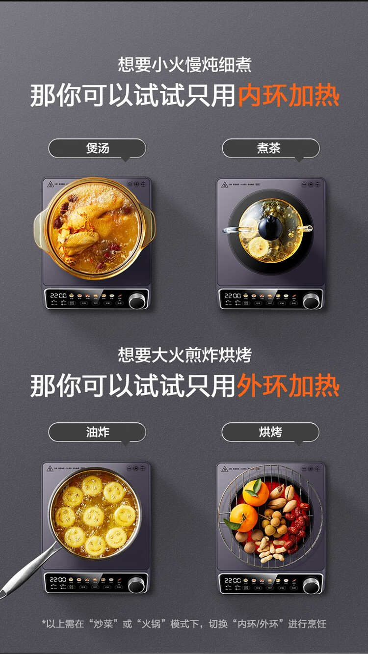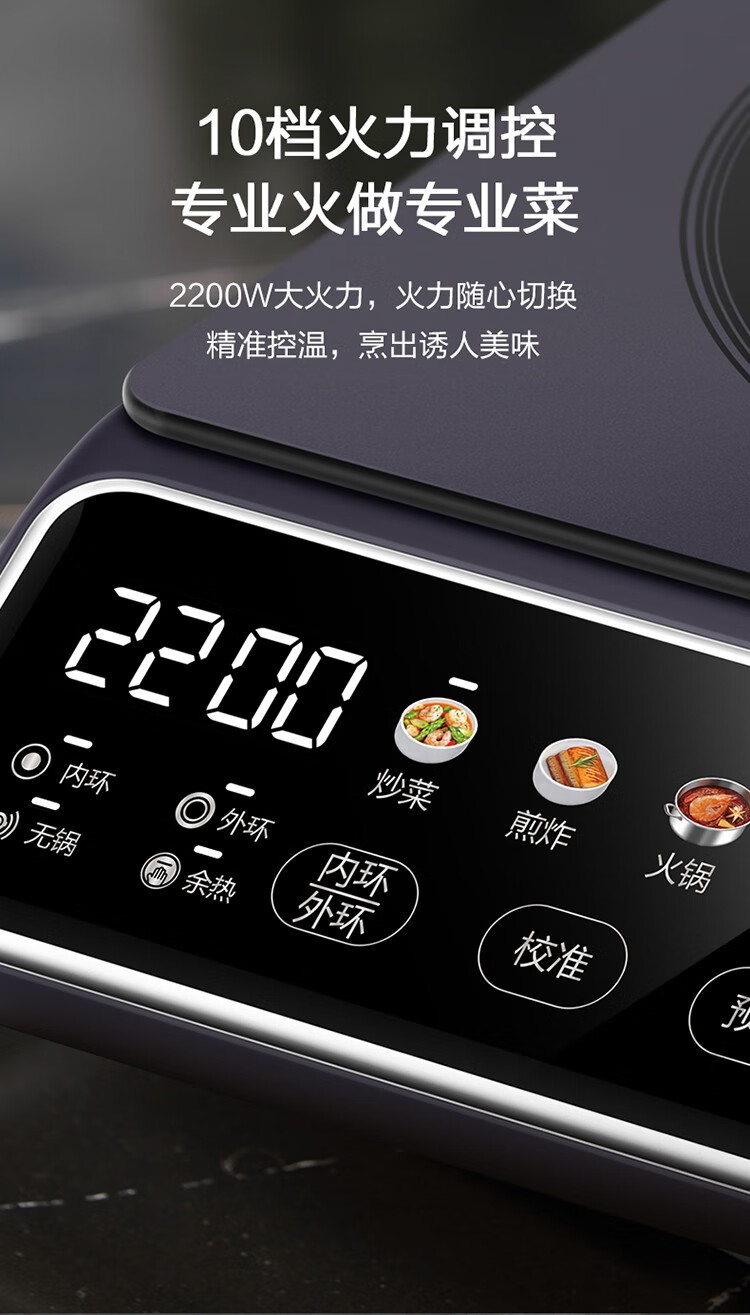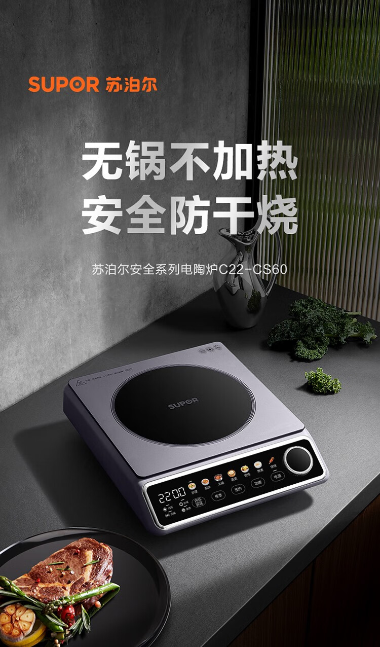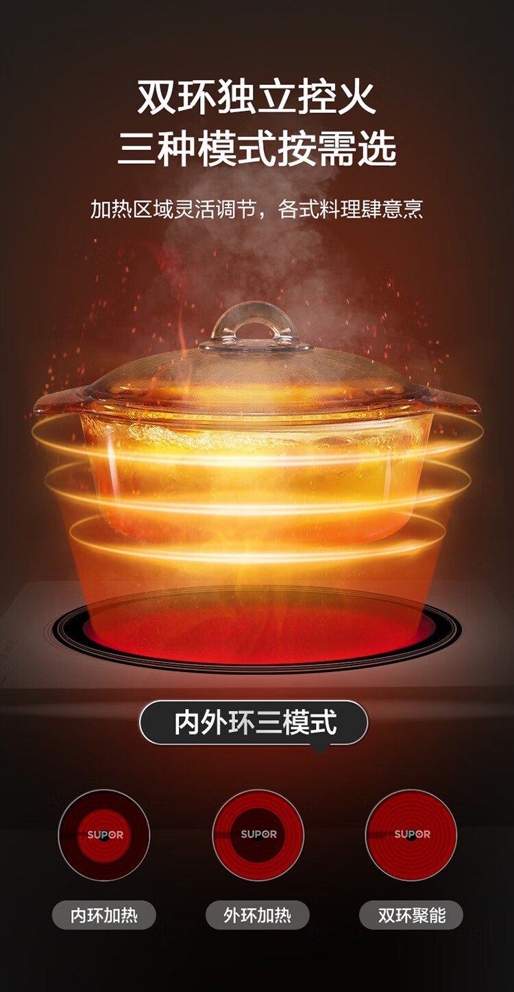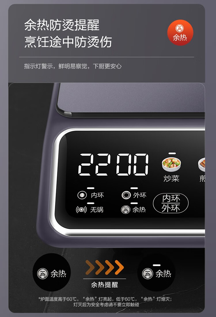 苏泊尔(SUPOR)电陶炉家用电磁炉低音低辐射双环独立控温2200W大功率防干烧显影大彩屏不挑锅具火锅炉C22-CS60 暮云紫