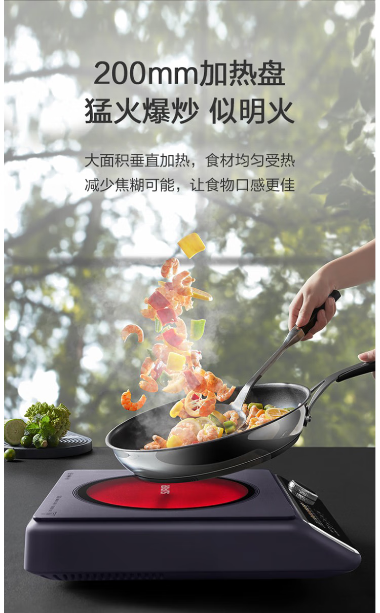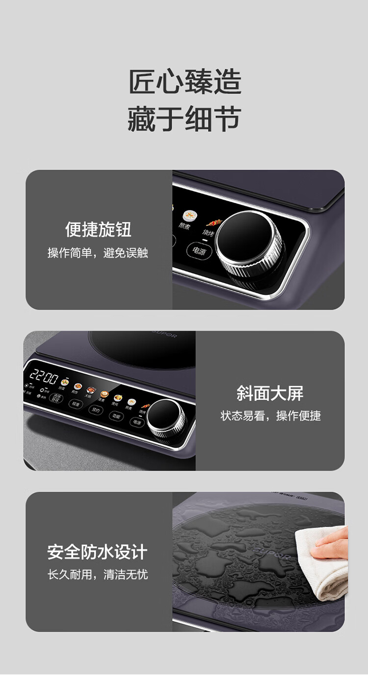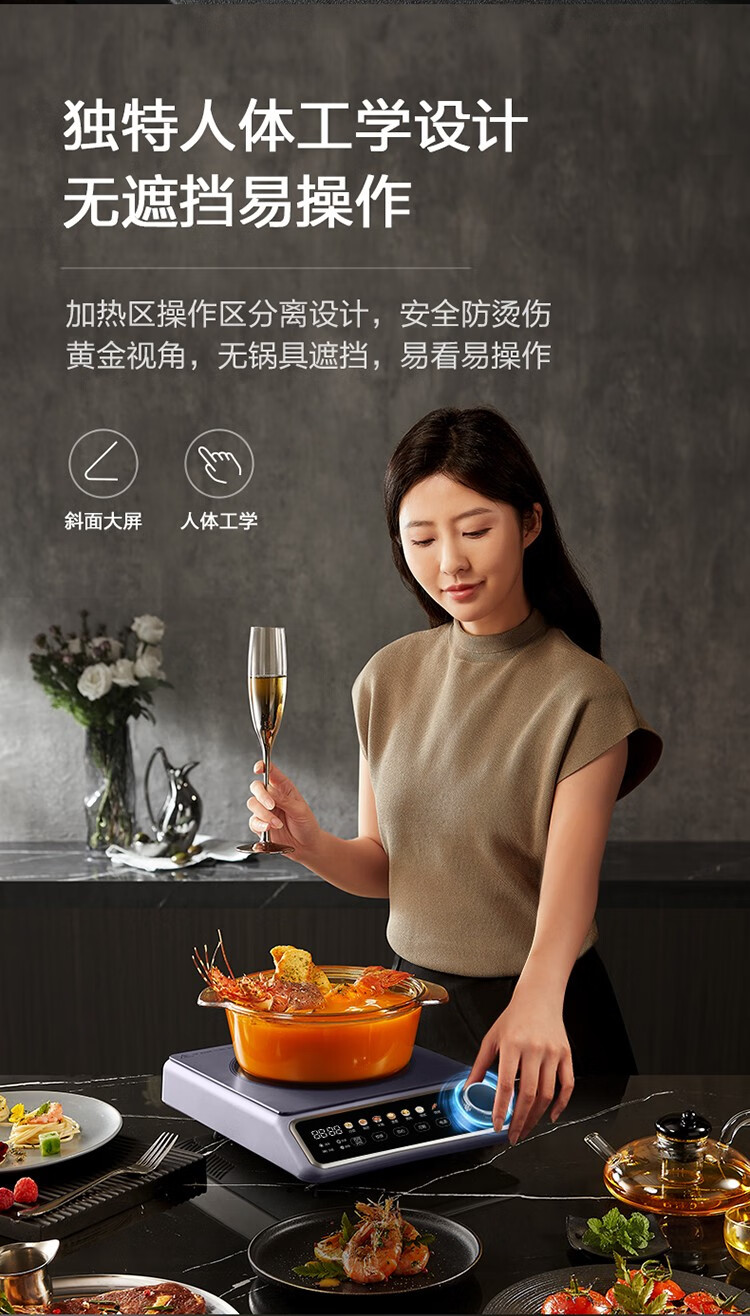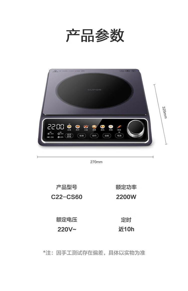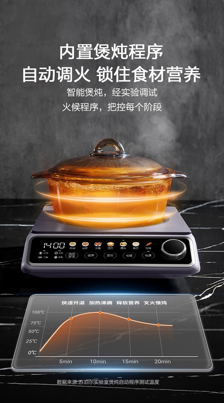 苏泊尔(SUPOR)电陶炉家用电磁炉低音低辐射双环独立控温2200W大功率防干烧显影大彩屏不挑锅具火锅炉C22-CS60 暮云紫