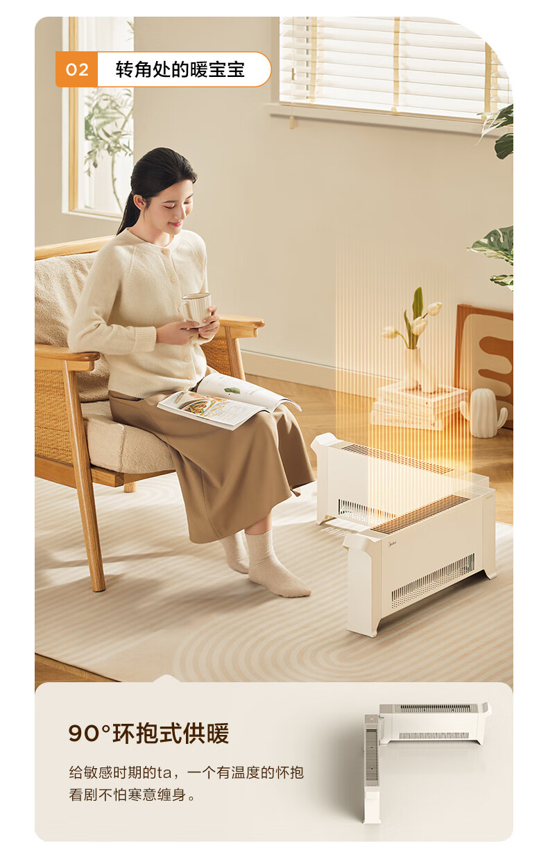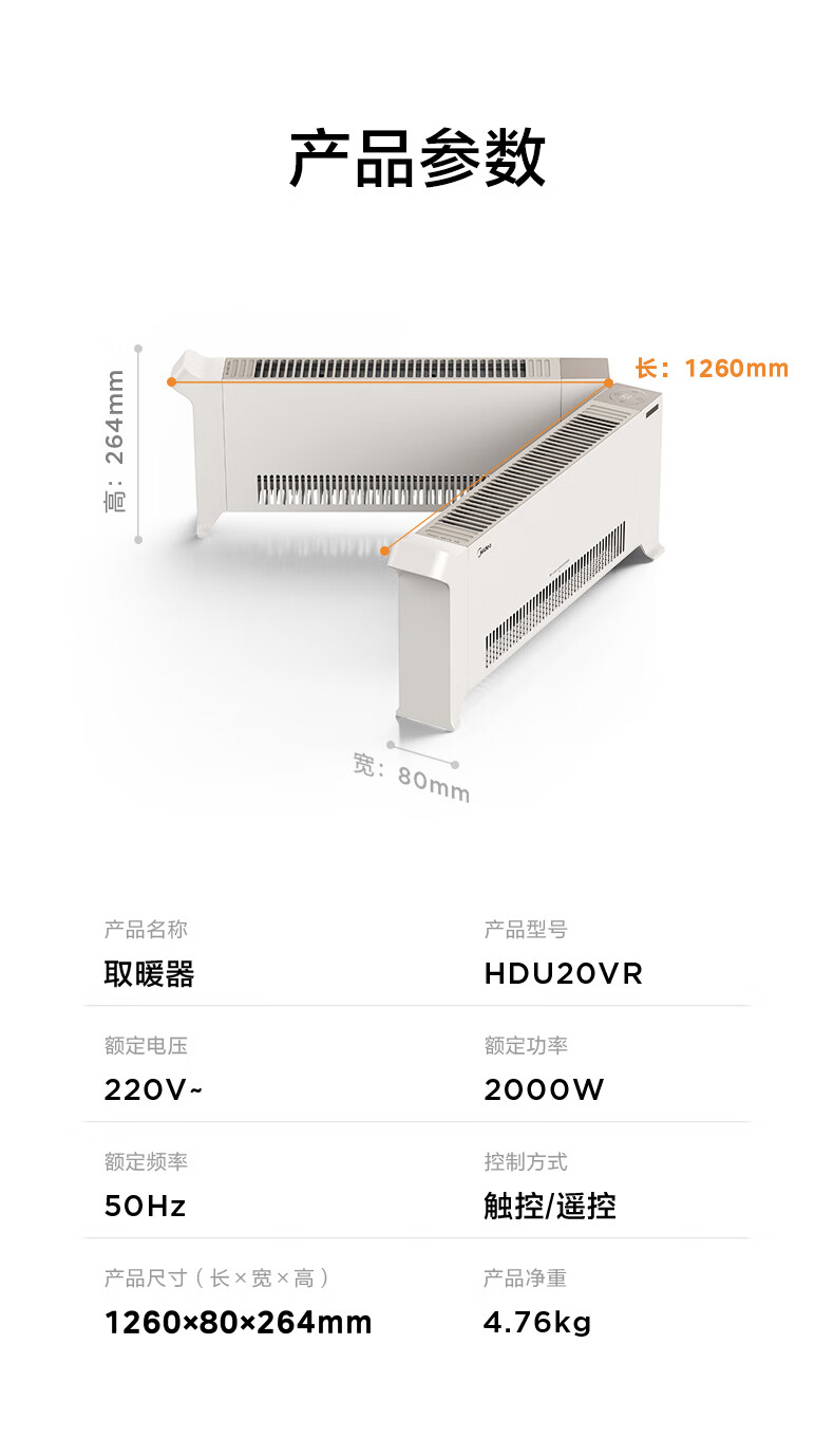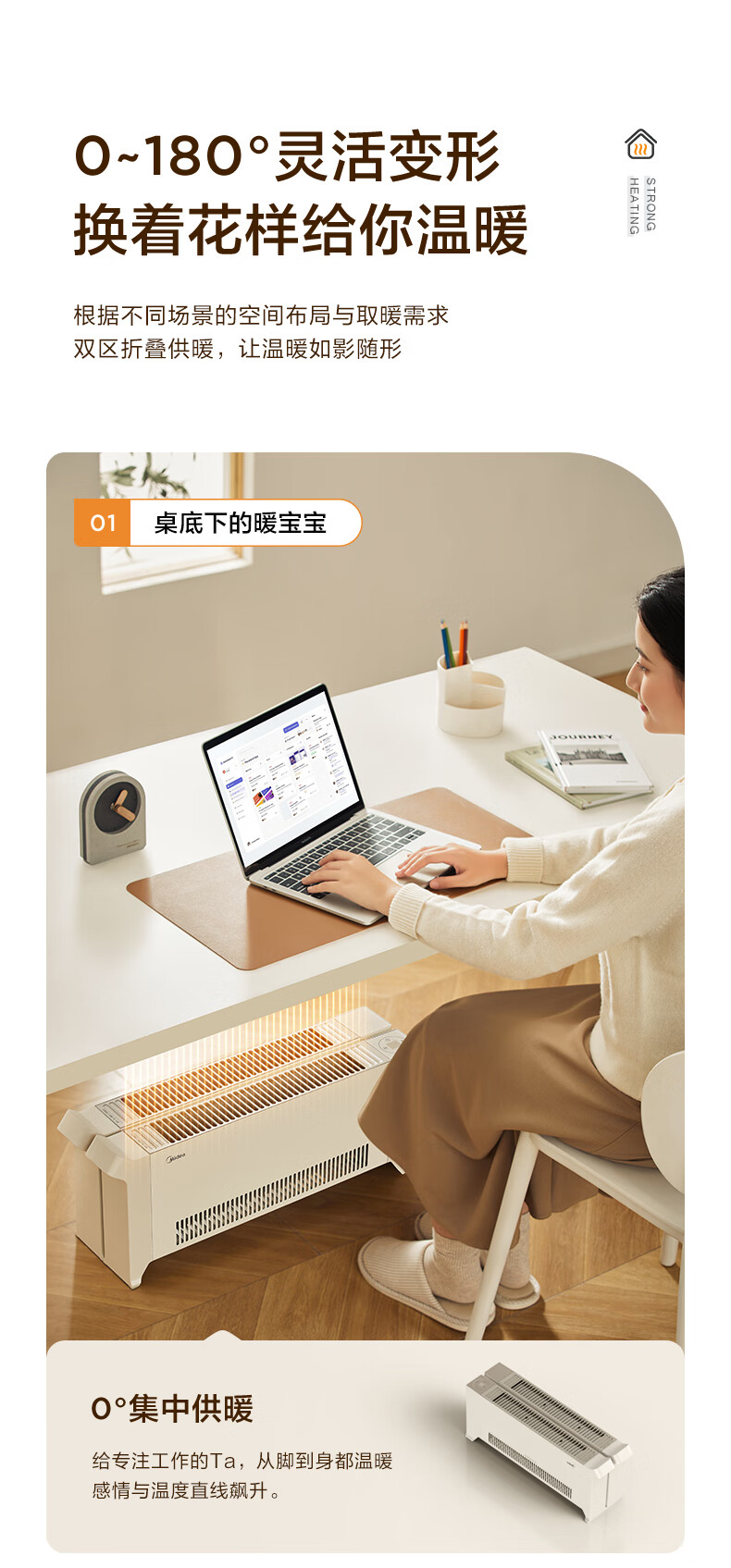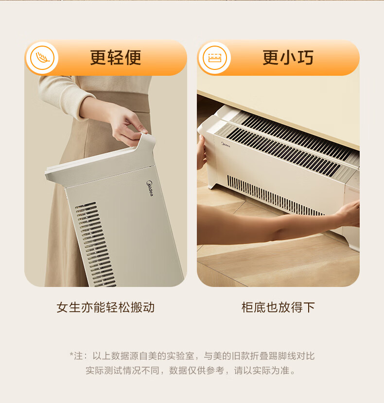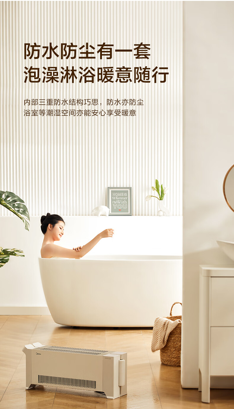 美的(Midea)折叠踢脚线取暖器遥控家用大面积IP24防尘防水电暖器卧室客厅移动地暖浴室暖风机 HDU20VR