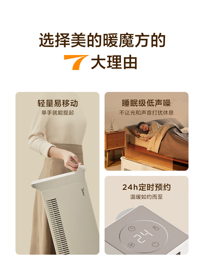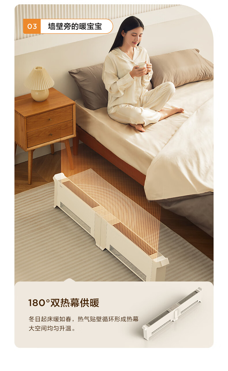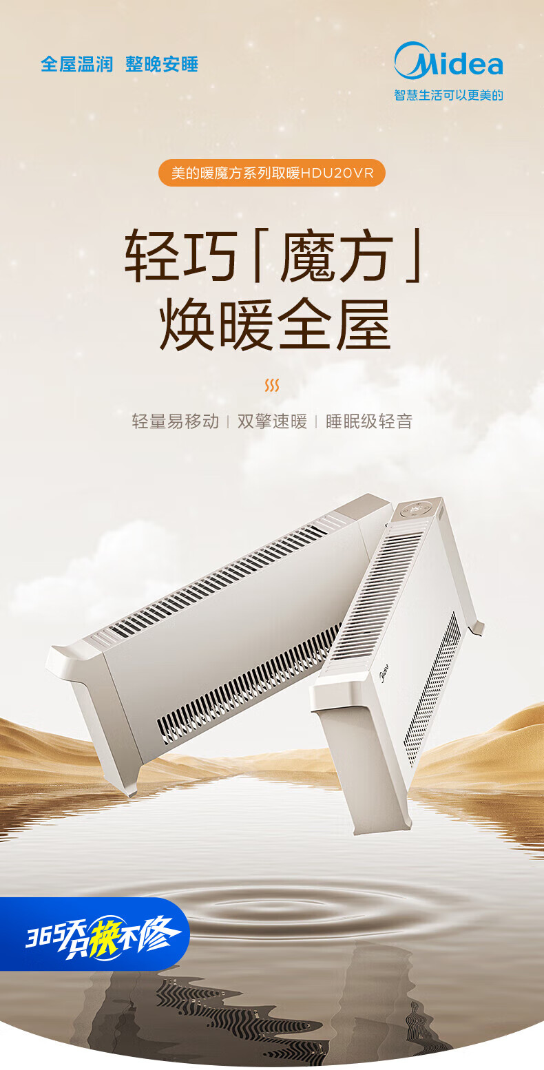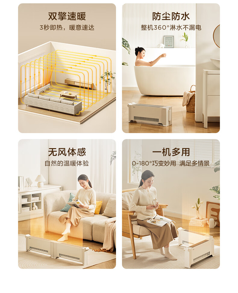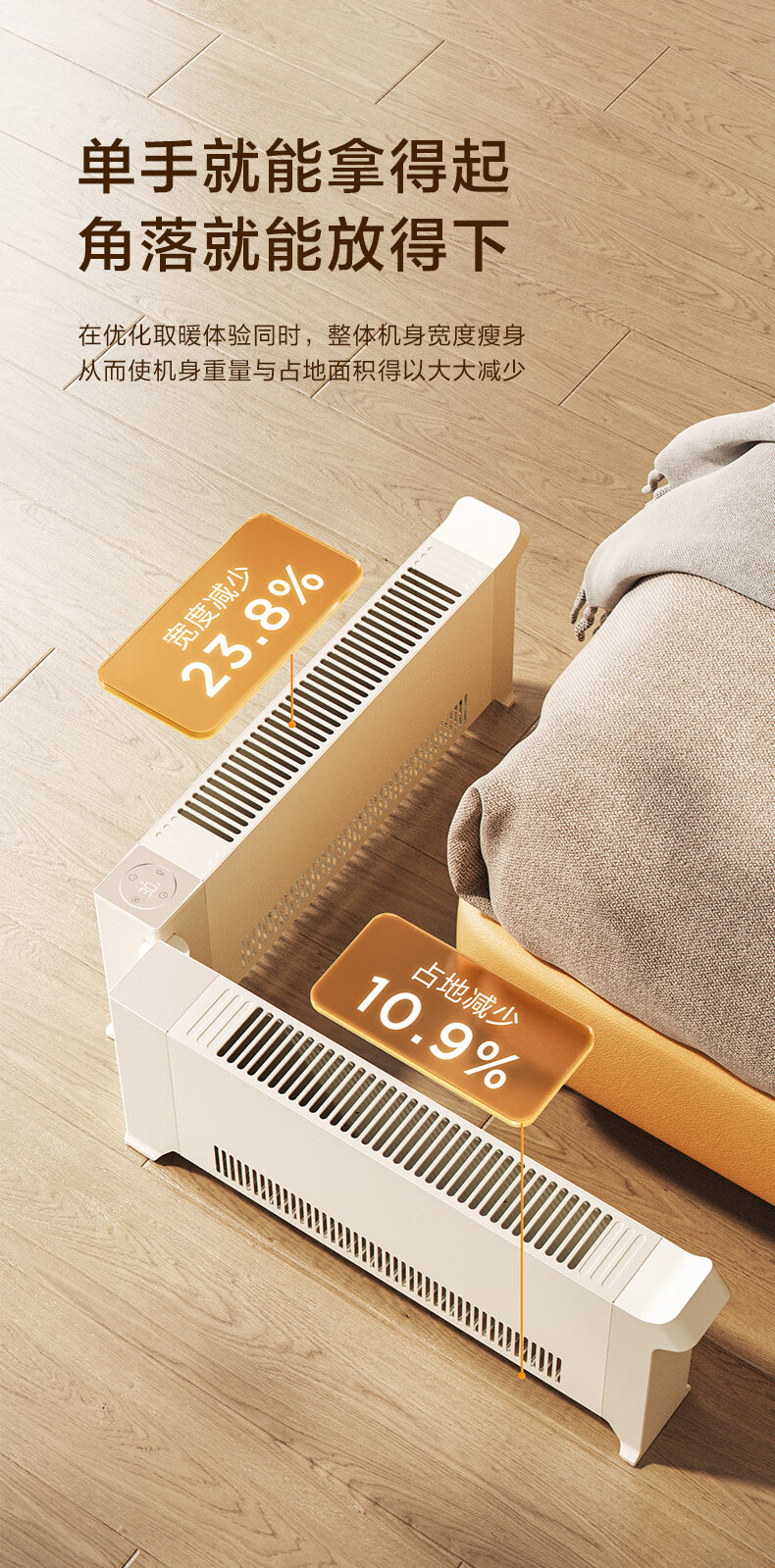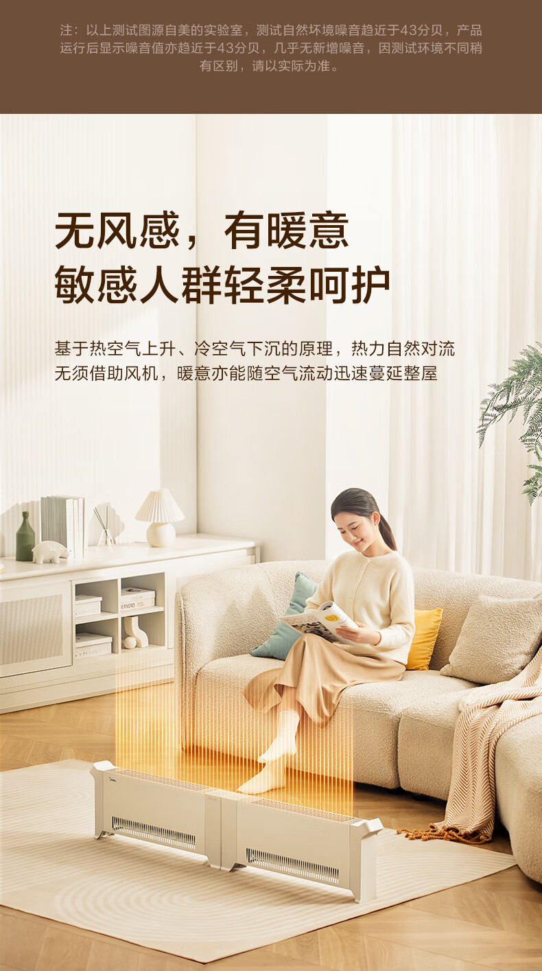 美的(Midea)折叠踢脚线取暖器遥控家用大面积IP24防尘防水电暖器卧室客厅移动地暖浴室暖风机 HDU20VR