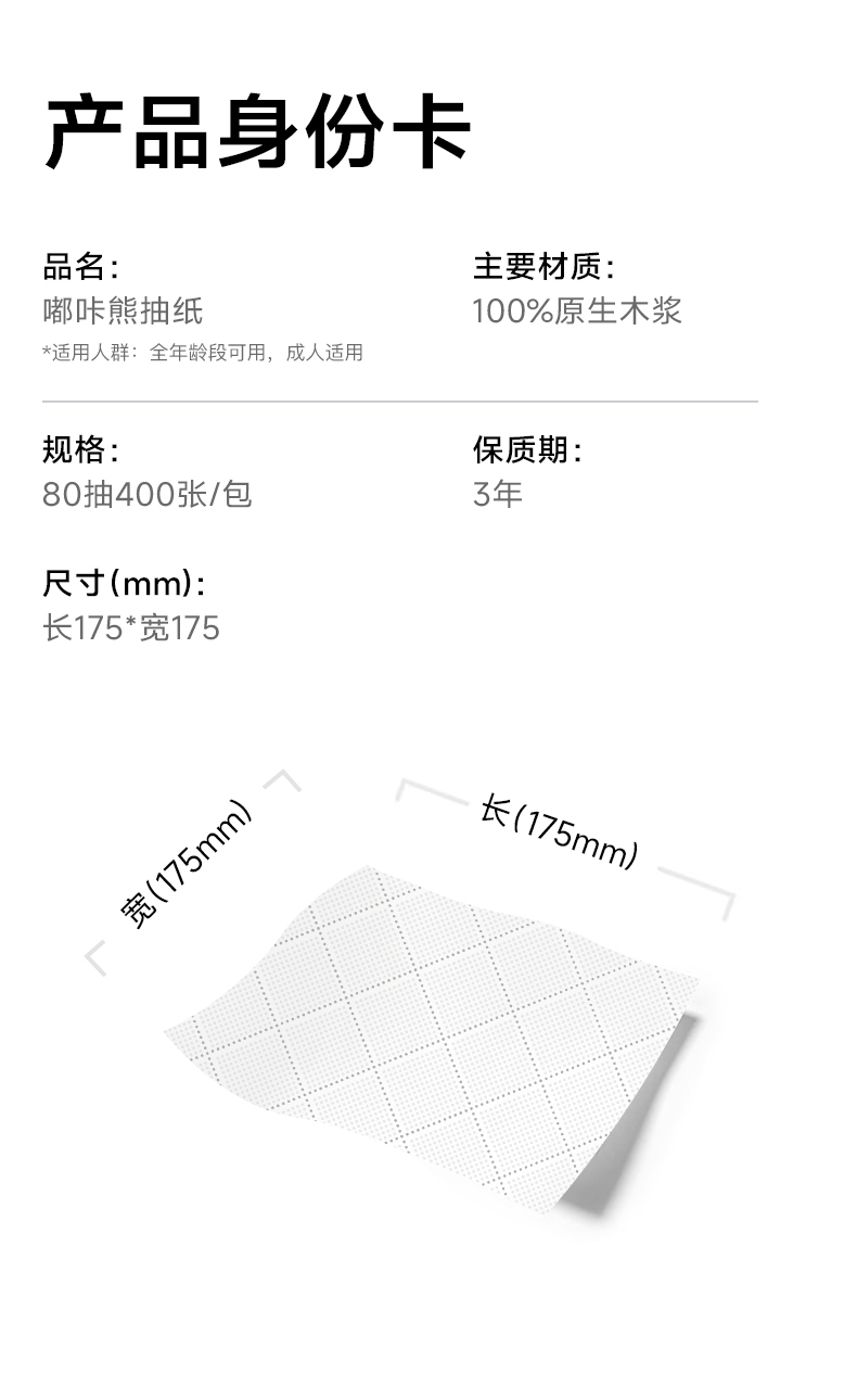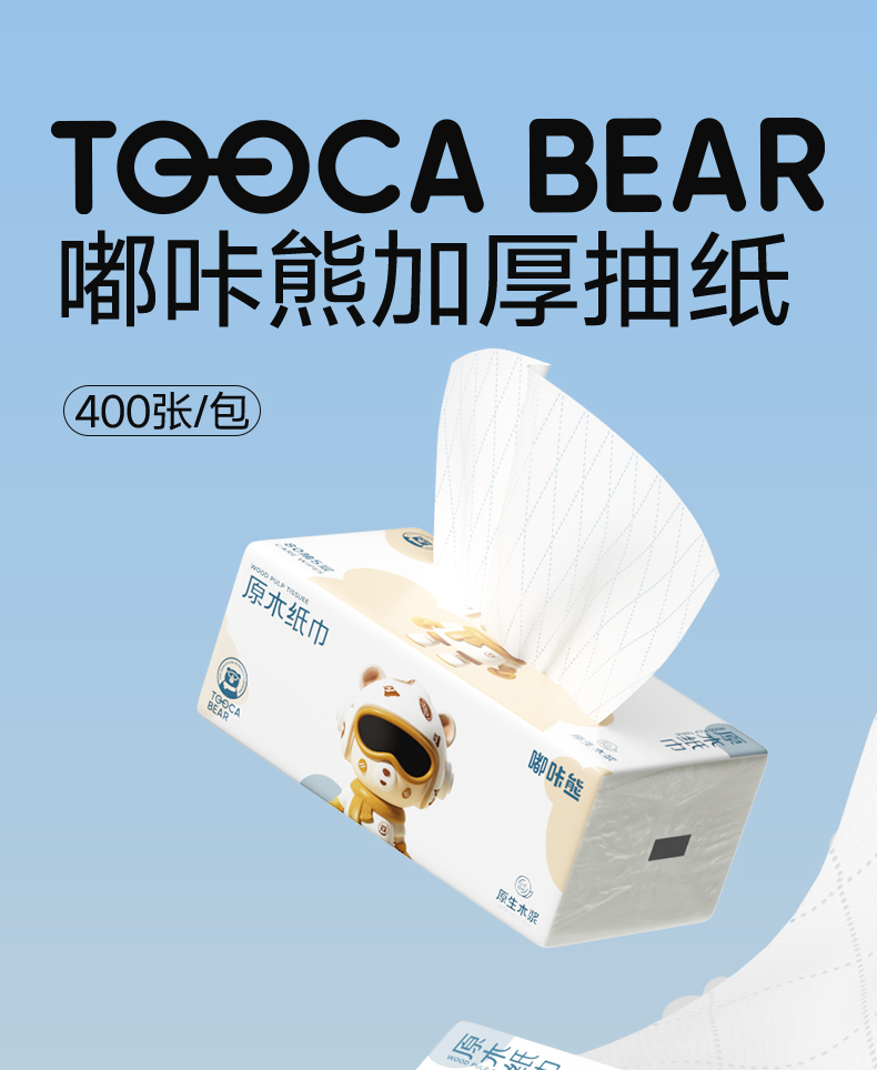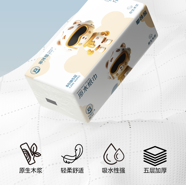 嘟咔熊 加大加厚款 居家抽纸 纸抽 80抽 5层压花