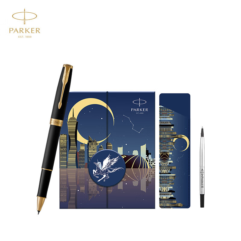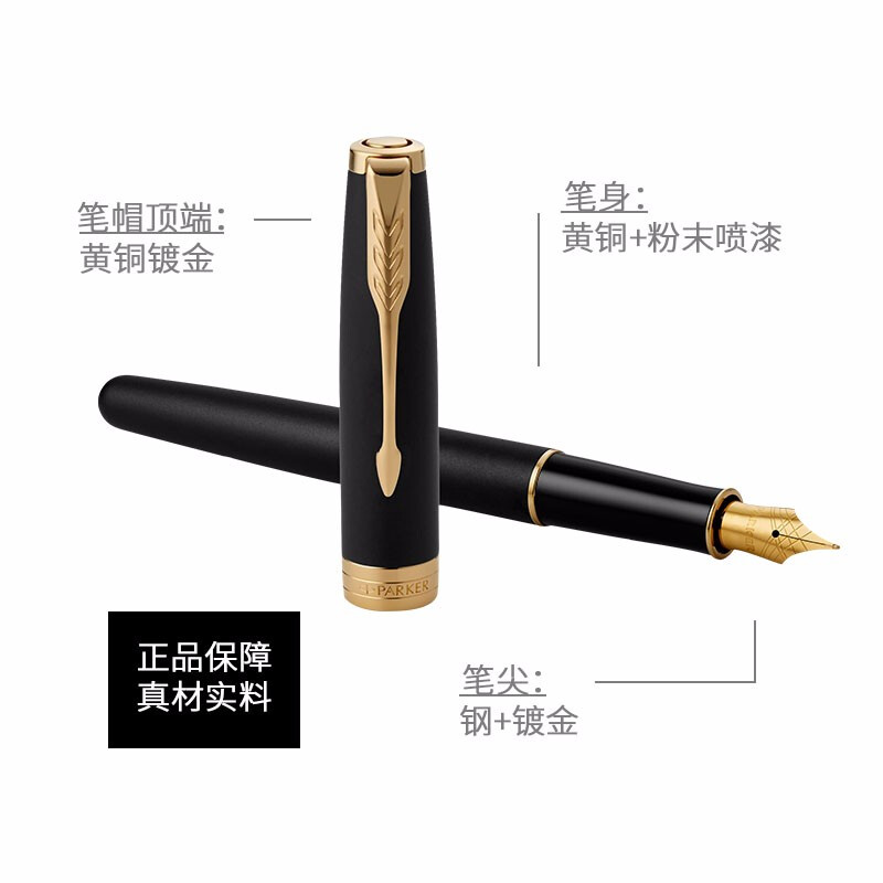 【派克15款卓尔 纯黑丽雅金夹钢笔 墨水笔】派克(PARKER)高端钢笔礼盒签字笔 商务办公男女生日练字书法文具礼物 卓尔磨砂黑金夹墨水笔_以梦