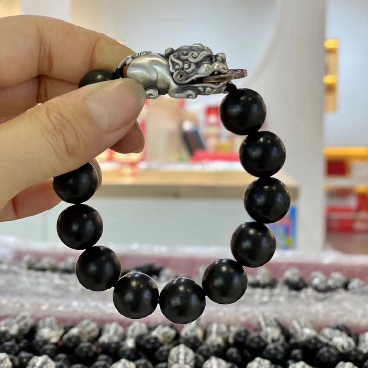 足银貔貅黑檀木手串会吸钱吞金瑞兽饰品手把件 银行保险活动伴手礼品