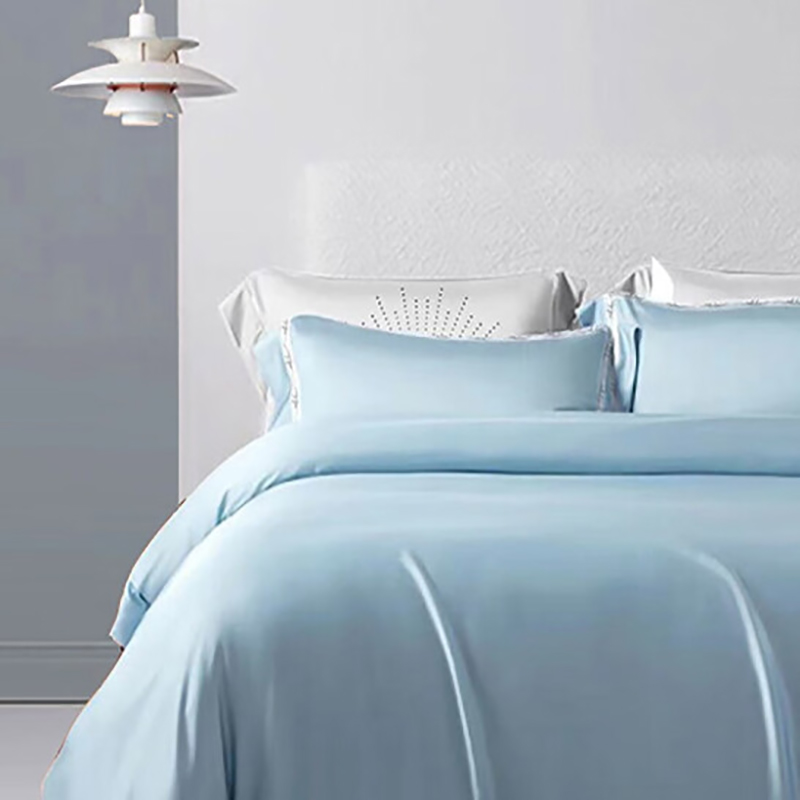 60s素色长绒棉抗菌绣花四件套:梦之境•山河(天空蓝)