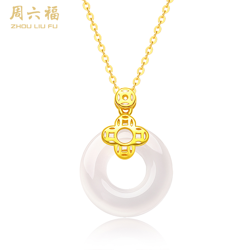 周六福S925银平安扣玉髓链坠