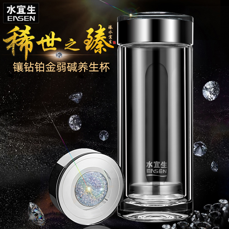 水宜生 杯盖黑金刚水晶玻璃杯G802