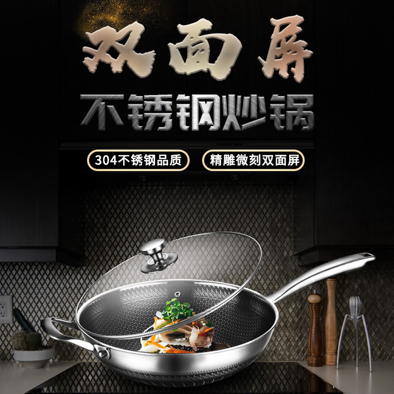 翰乐 不锈钢蜂窝不粘锅双面屏 双面蜂窝浪花 HL-C15 32cm