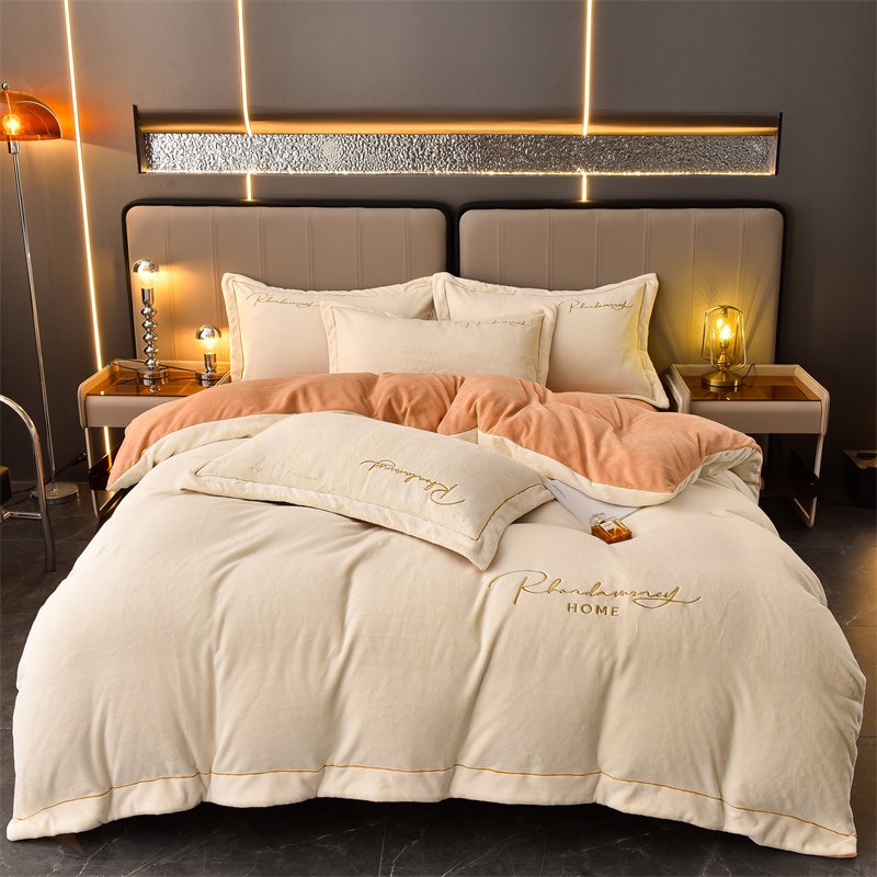 A类法式轻奢宽边雕花加厚牛奶绒四件套
