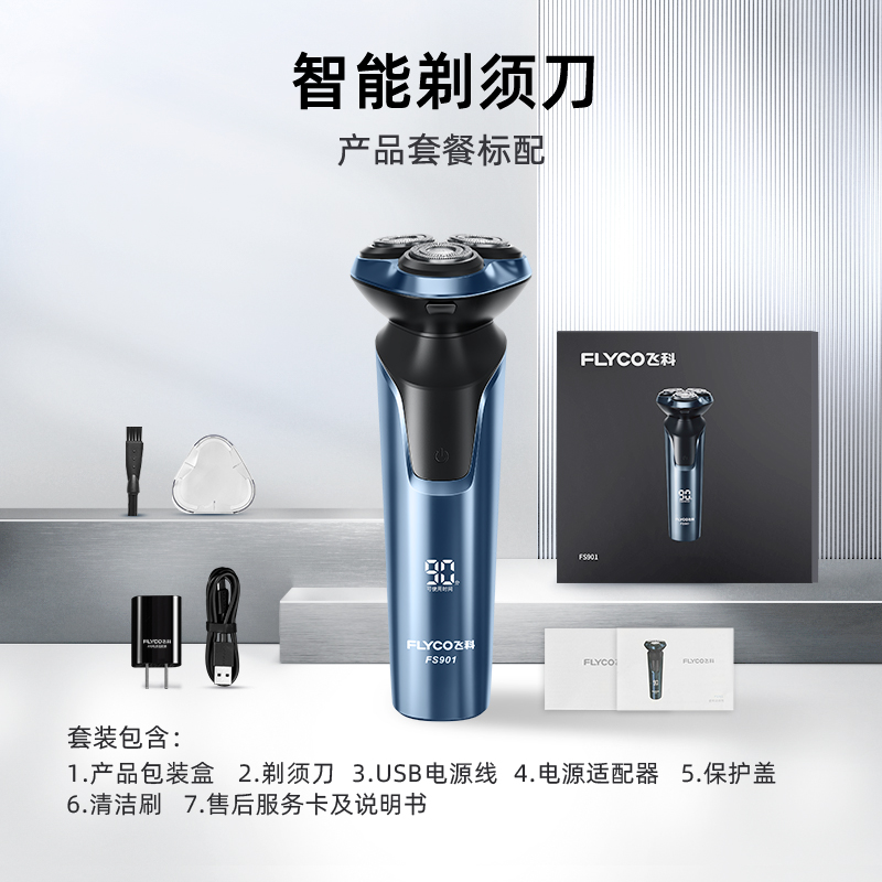 飞科(FLYCO)剃须刀电动刮胡刀全身水洗智能充电式胡须刀新年礼物送男友礼品FS901 【带旅行盒】