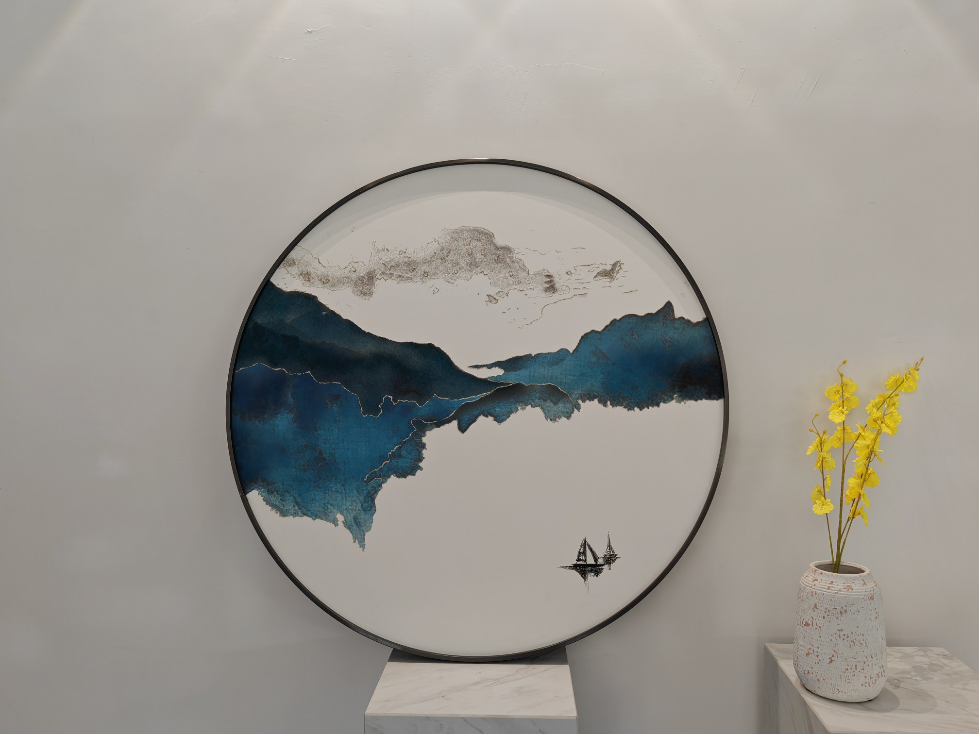 金葵SUNFLOWER-专注高端装饰挂画 致力于实现将艺术普及到现代人的点滴生活之中,诠释对生活美学的理解。 高端定制手工描金新中式山水圆形挂画