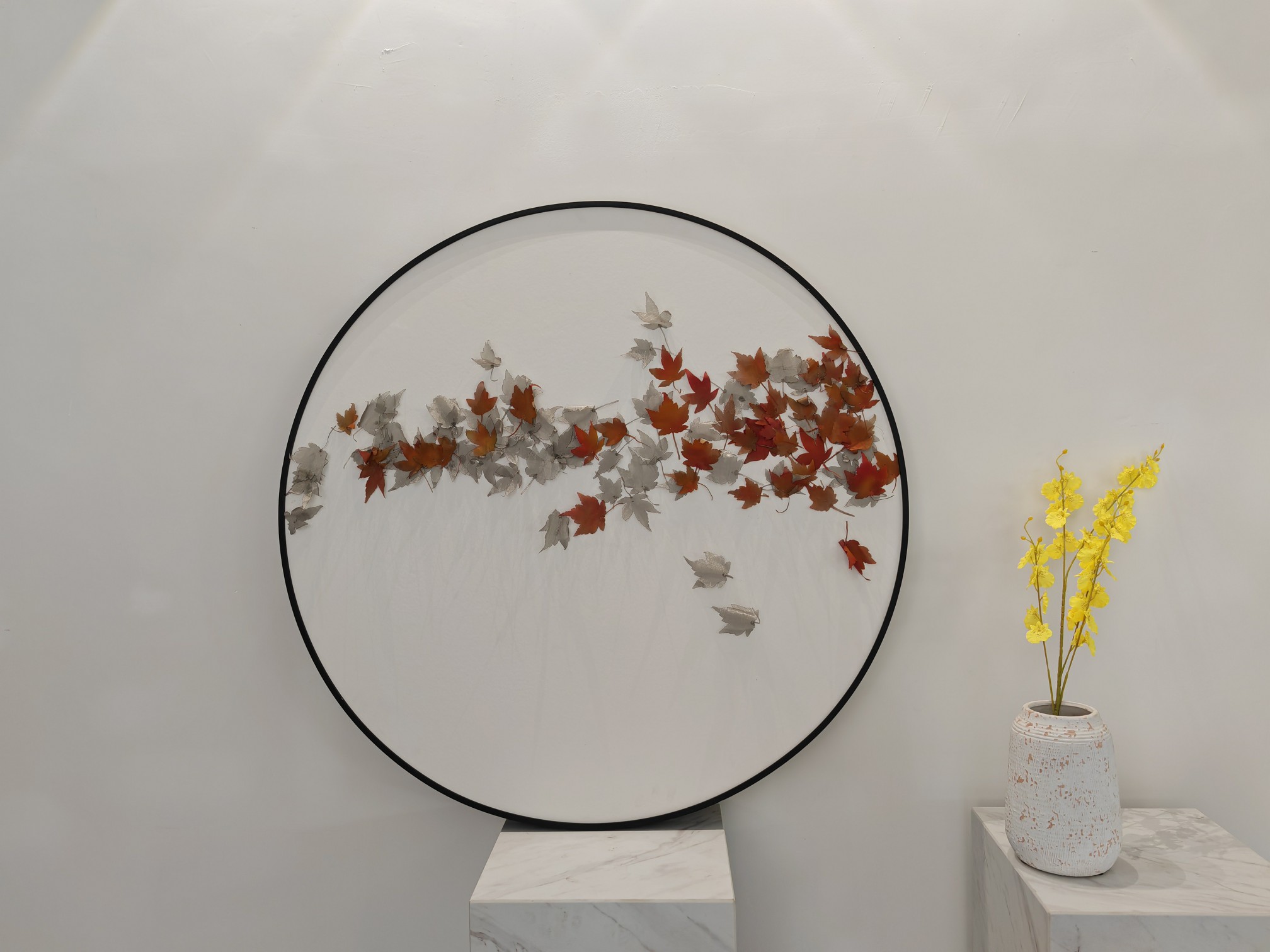 金葵SUNFLOWER-专注高端装饰挂画 致力于实现将艺术普及到现代人的点滴生活之中,诠释对生活美学的理解。 高端定制皮质立体枫叶镶嵌实物圆形挂画