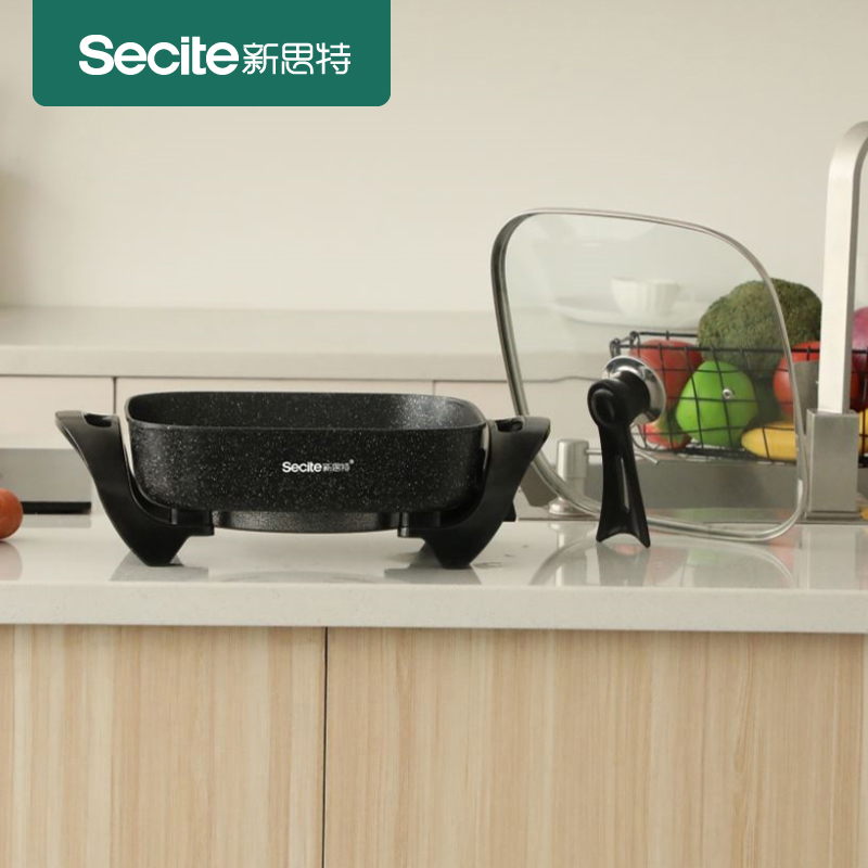 新思特多功能电火锅32F煎炸焖煮炖炒多功能电锅炒菜火锅煎炸家用小电器不粘易清洁全身可水洗加热速度快