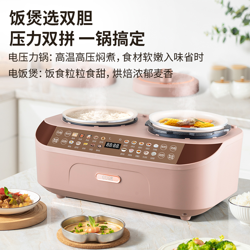 谷格(GUGE)双胆低糖电饭煲电压力锅二合一煮饭煲汤家用多功能双锅一体高压锅 GB91(电饭煲 电压力锅)