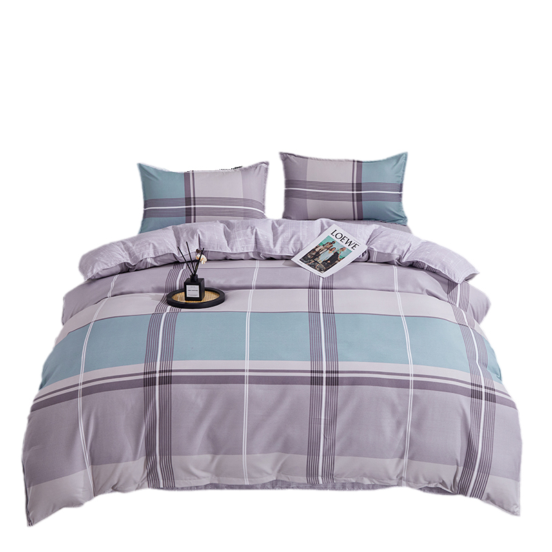 啄木鸟(PLOVER)卡肤棉四件套-浅蓝小格ZMN-KFM006(适合1.8M/1.5M床)