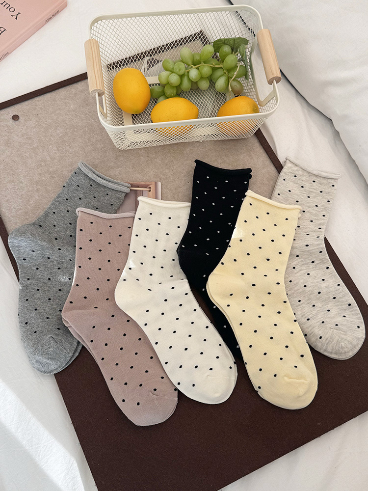 花辞日记 复古波点中筒袜女袜均码固定6支装