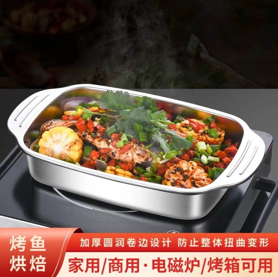 304不锈钢保鲜盒带盖方盘冰箱收纳盒烧烤盘子野餐果盘饺子方盘