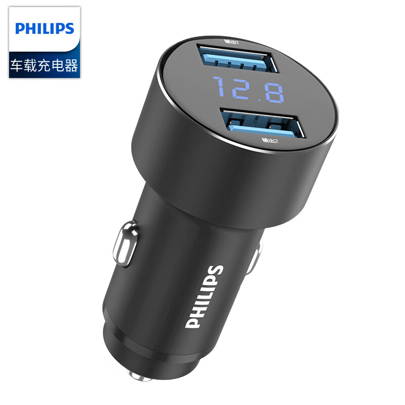 飞利浦DLP4003B/93 车载充电器一拖二通用苹果华为手机平板转接插头25W