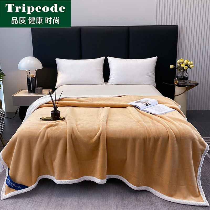 Tripcode加厚牛奶绒羊羔绒双层复合毯100*130cm【黄色】TC00055