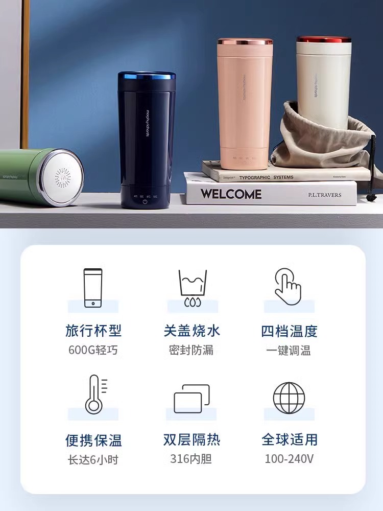 摩飞烧水壶开水壶电热水杯MR6090大英联名不锈钢便携家用旅行宿舍