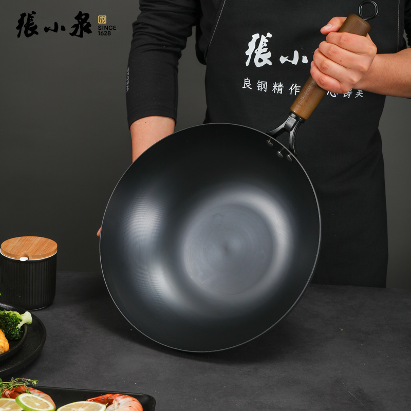 张小泉炒锅锅具无涂层锅具真不锈精铁炒锅燃气专用炒菜锅铁锅C30240100匠艺老铁锅32cm
