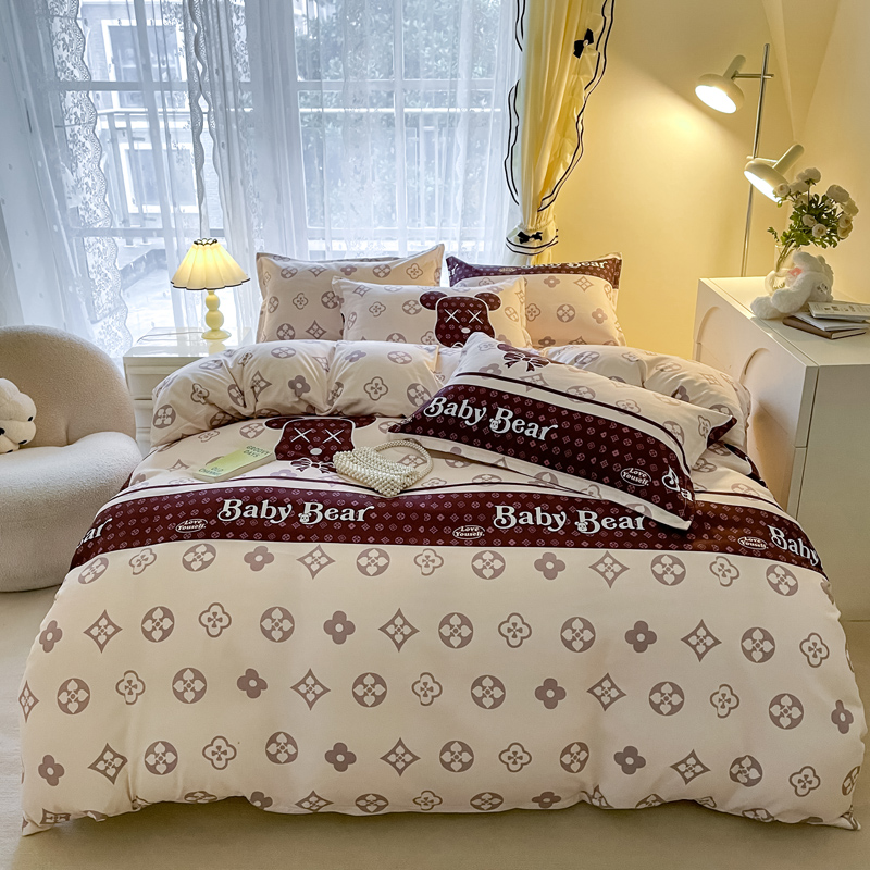 时尚熊、咖 生态棉磨毛四件套 活性印染